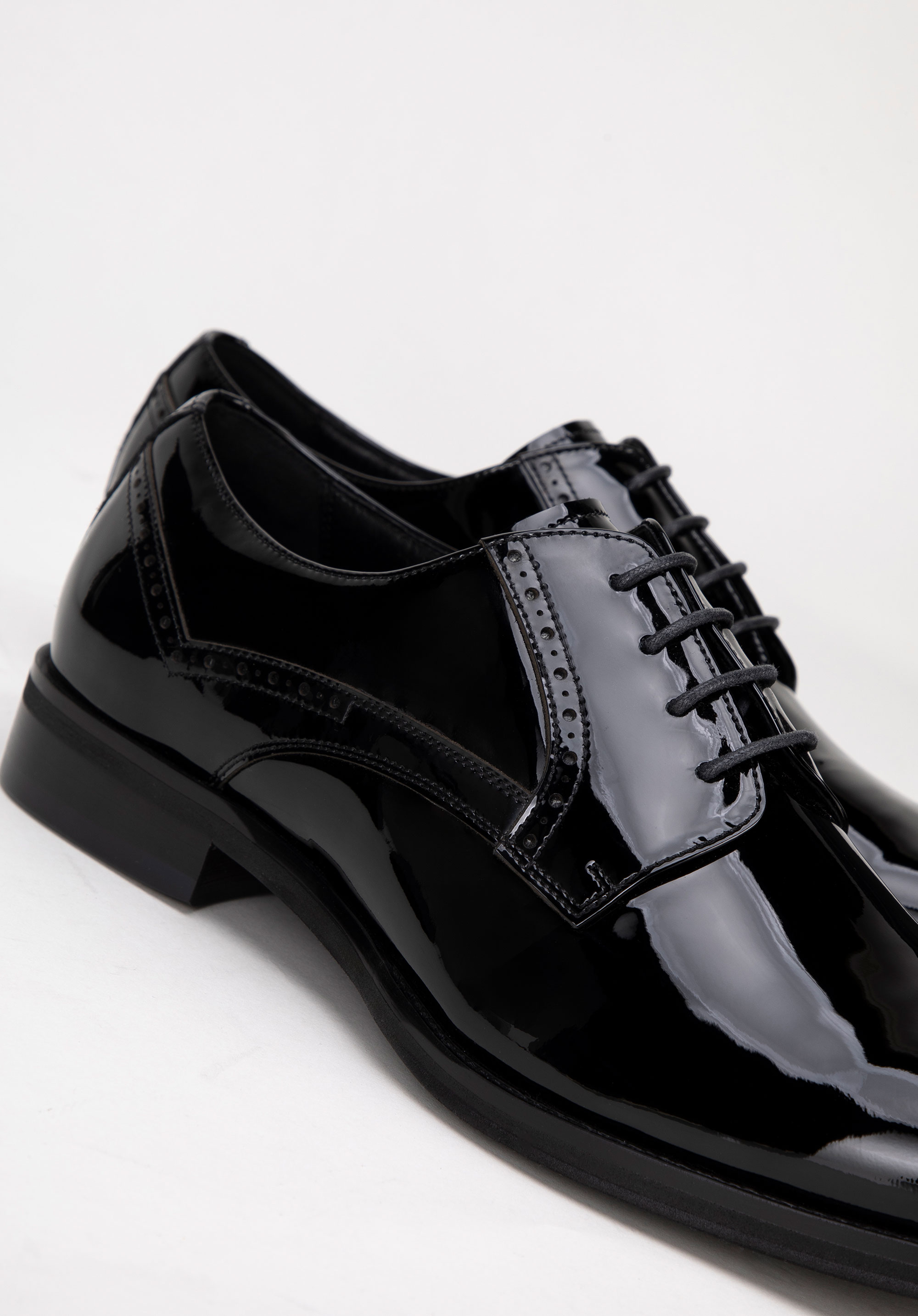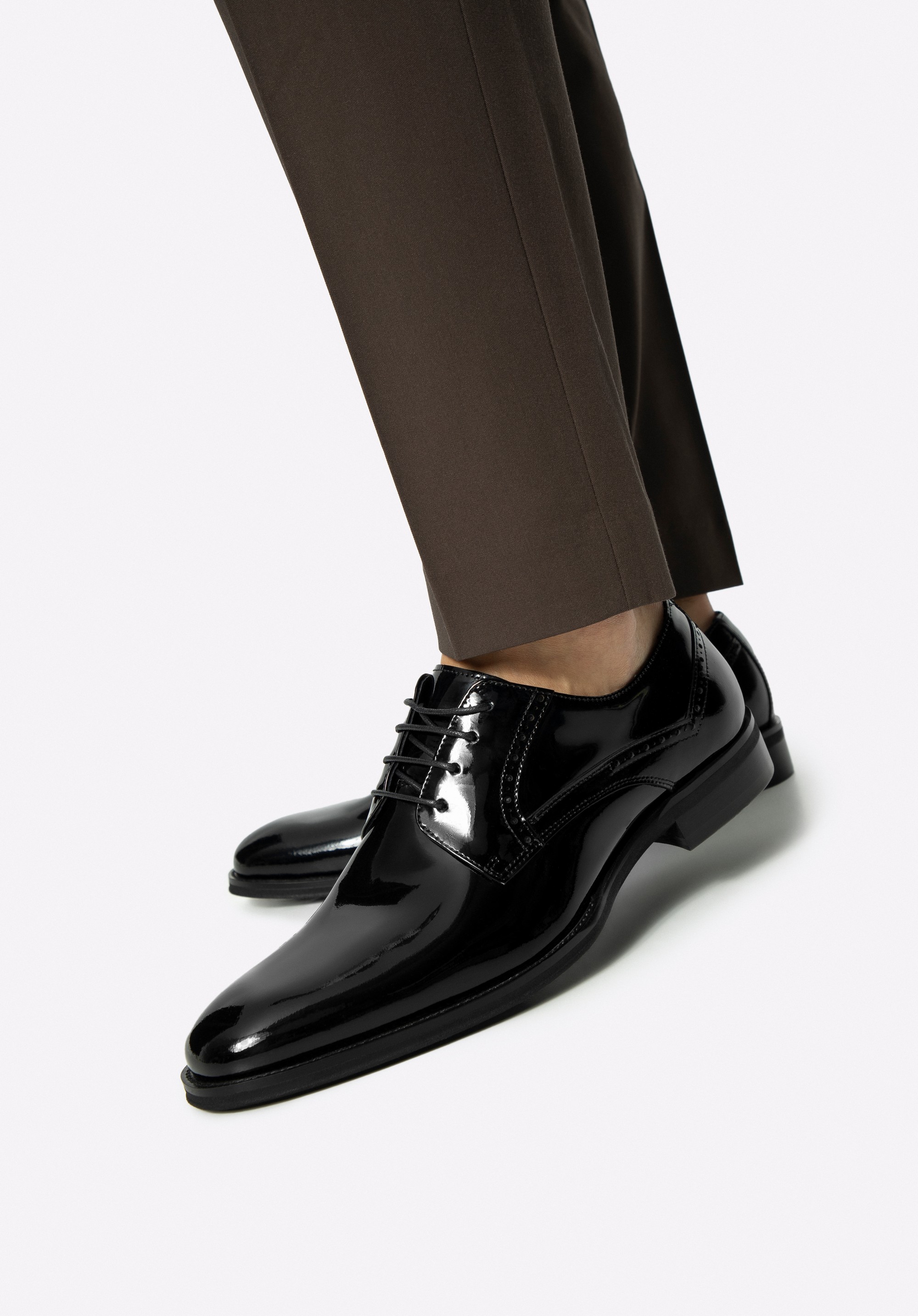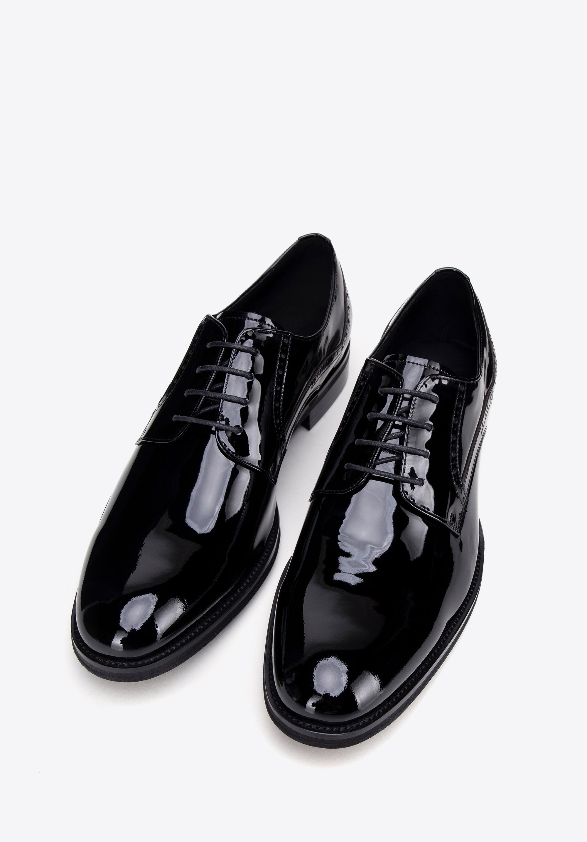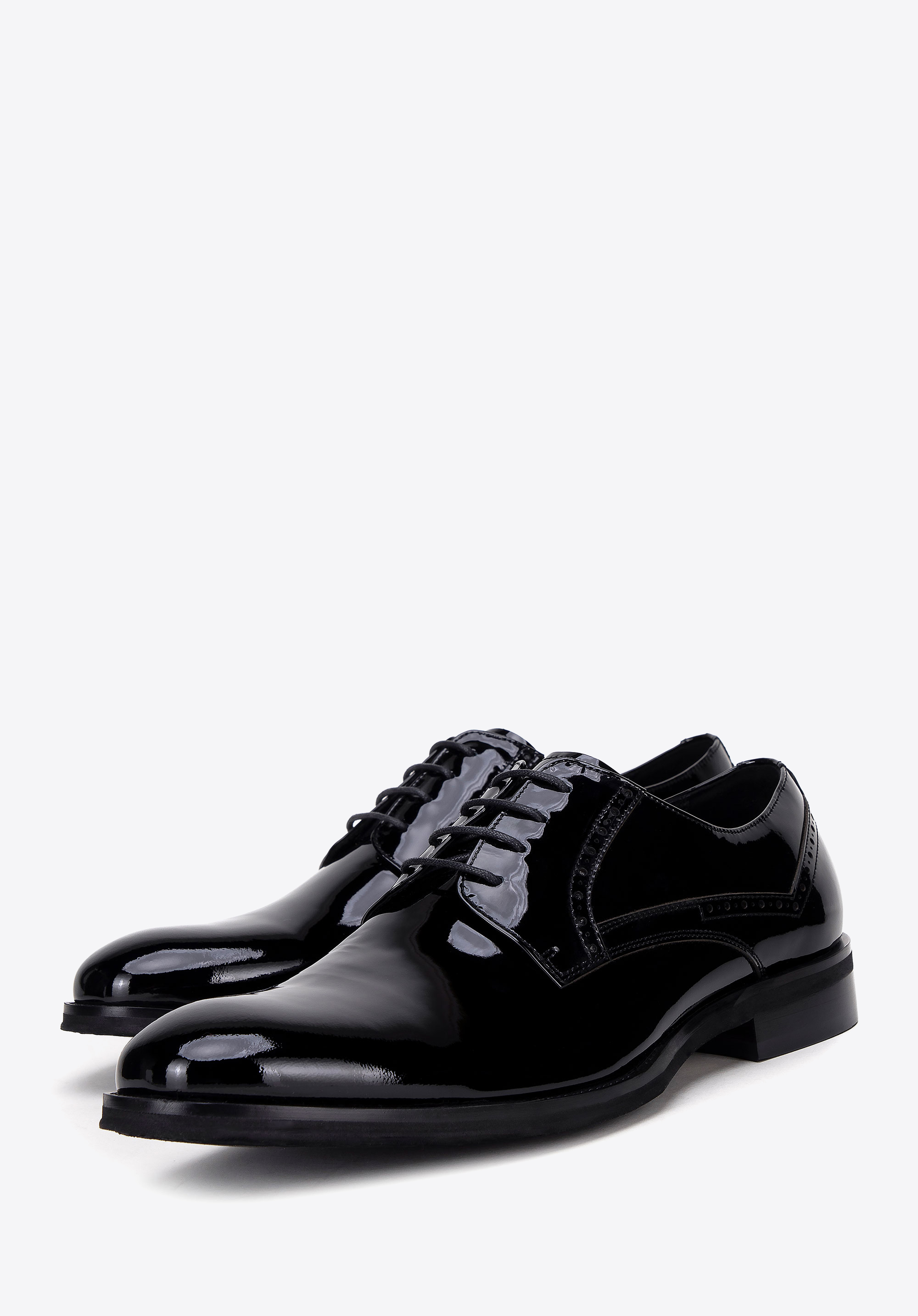 Tyto pánské boty jsou synonymem elegantního stylu a bezkonkurenční pohodlí. Každý pár je vyroben z vysoce kvalitní lakované kůže, která zajišťuje nejen odolnost, ale také jedinečný elegantní vzhled. Měkká kožená podšívka a mandlová špička zaručují celodenní pohodlí. Decentní perforace na tkaničkách dodávají botám jedinečný charakter a dodávají jim eleganci.