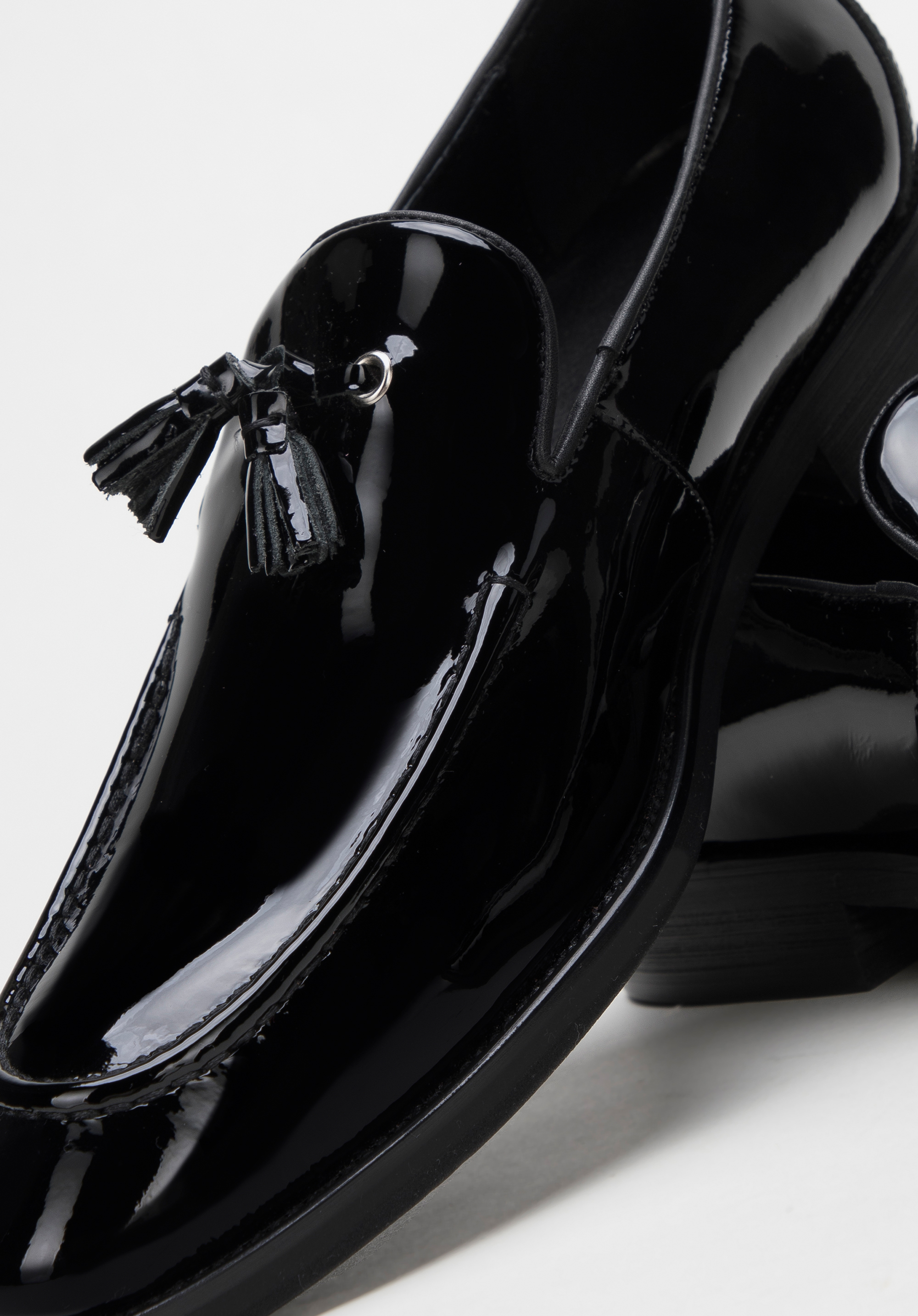 V těchto originálních botách budete každý den přitahovat pozornost. Nadčasový tvar se zastřiženou špičkou zdobí dva malé střapce. Jsou vyrobeny z kvalitní lakované kůže, takže jsou produktem na mnoho let. Díky měkké kožené vložce můžete je pohodlně nosit mnoho hodin. Mají lehkou podrážku na nízkém podpatku, která jemně zeštíhluje postavu. Pánské lakované mokasíny se střapcem jsou skvělou volbou pro každého muže, který si rád hraje s módou.