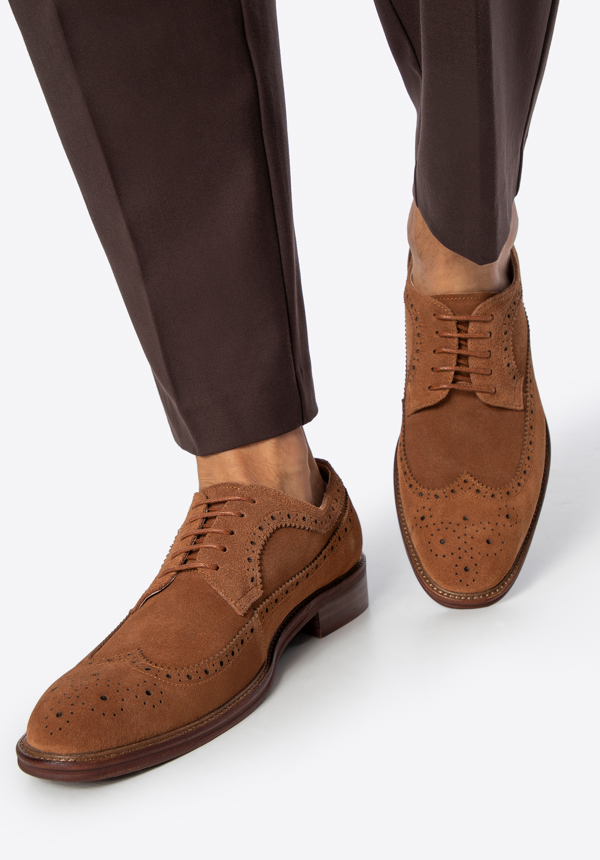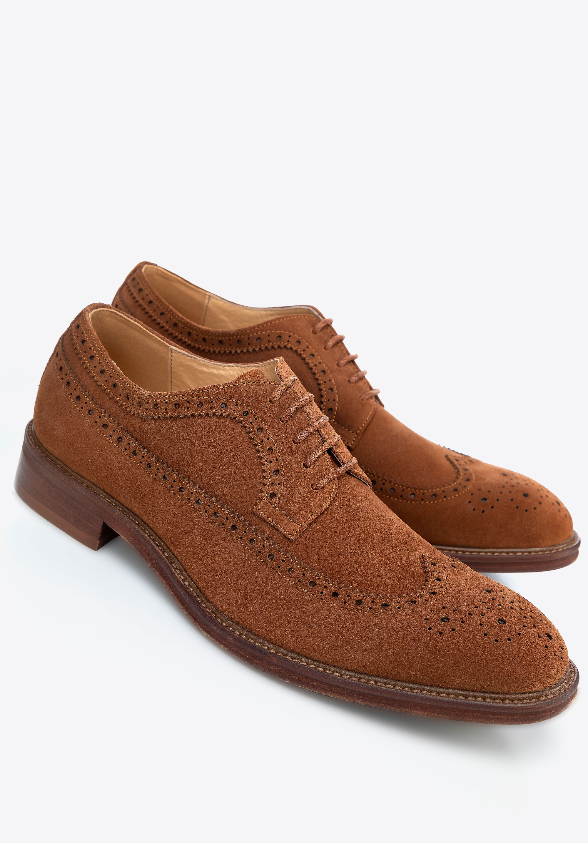 Tyto stylové derby boty jsou ztělesněním elegance a pohodlí. Jsou vyrobeny z prvotřídní semišové kůže a zaujmou svou měkkostí, odolností a perforací , která dodává jedinečný nádech. Klasická mandlová špička a rafinované detaily dělají z těchto bot nezbytnou součást šatníku pro muže, kteří ocení nadčasový styl.