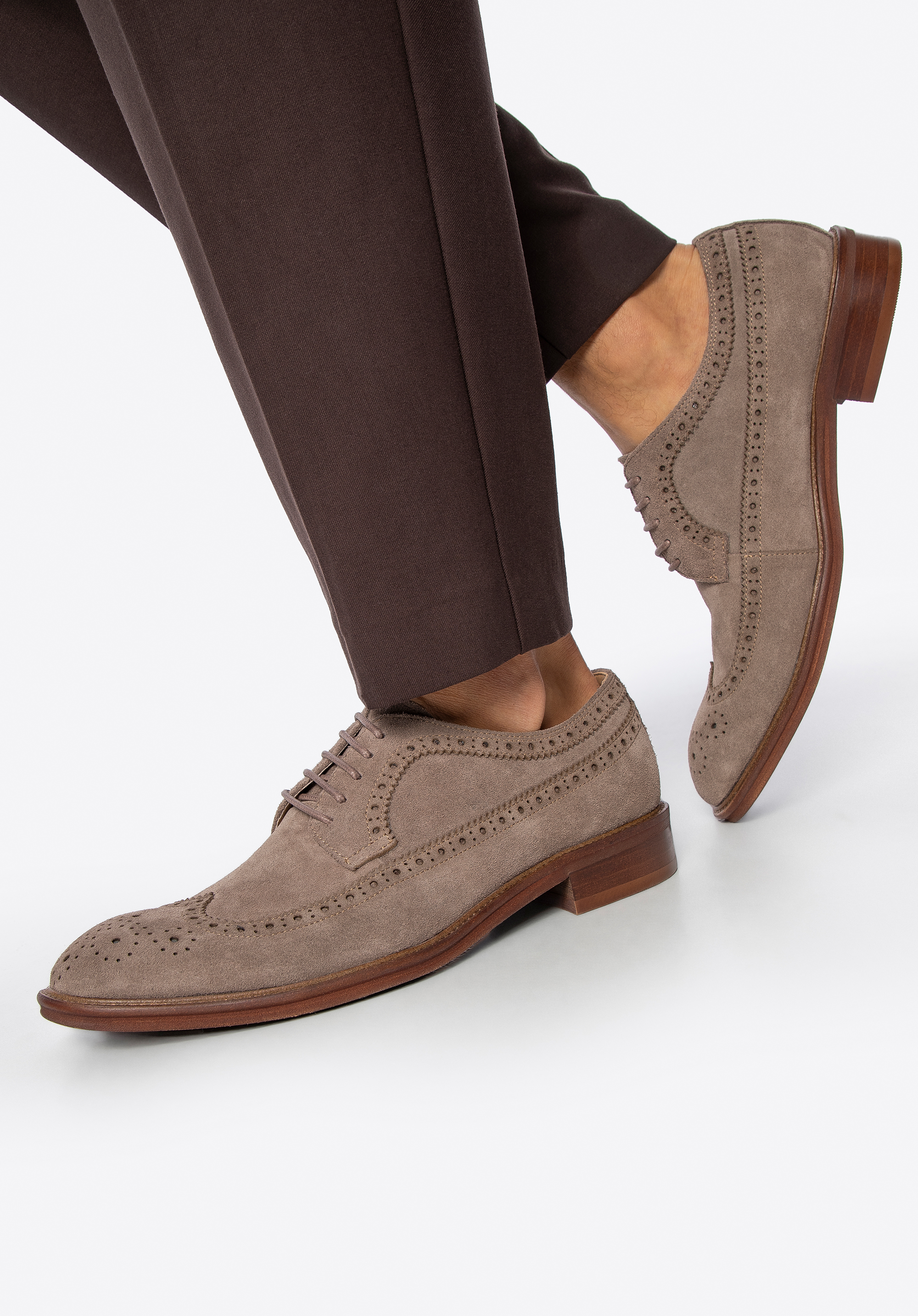 Tyto stylové derby boty jsou ztělesněním elegance a pohodlí. Jsou vyrobeny z prvotřídní semišové kůže a zaujmou svou měkkostí, odolností a perforací , která dodává jedinečný nádech. Klasická mandlová špička a rafinované detaily dělají z těchto bot nezbytnou součást šatníku pro muže, kteří ocení nadčasový styl.