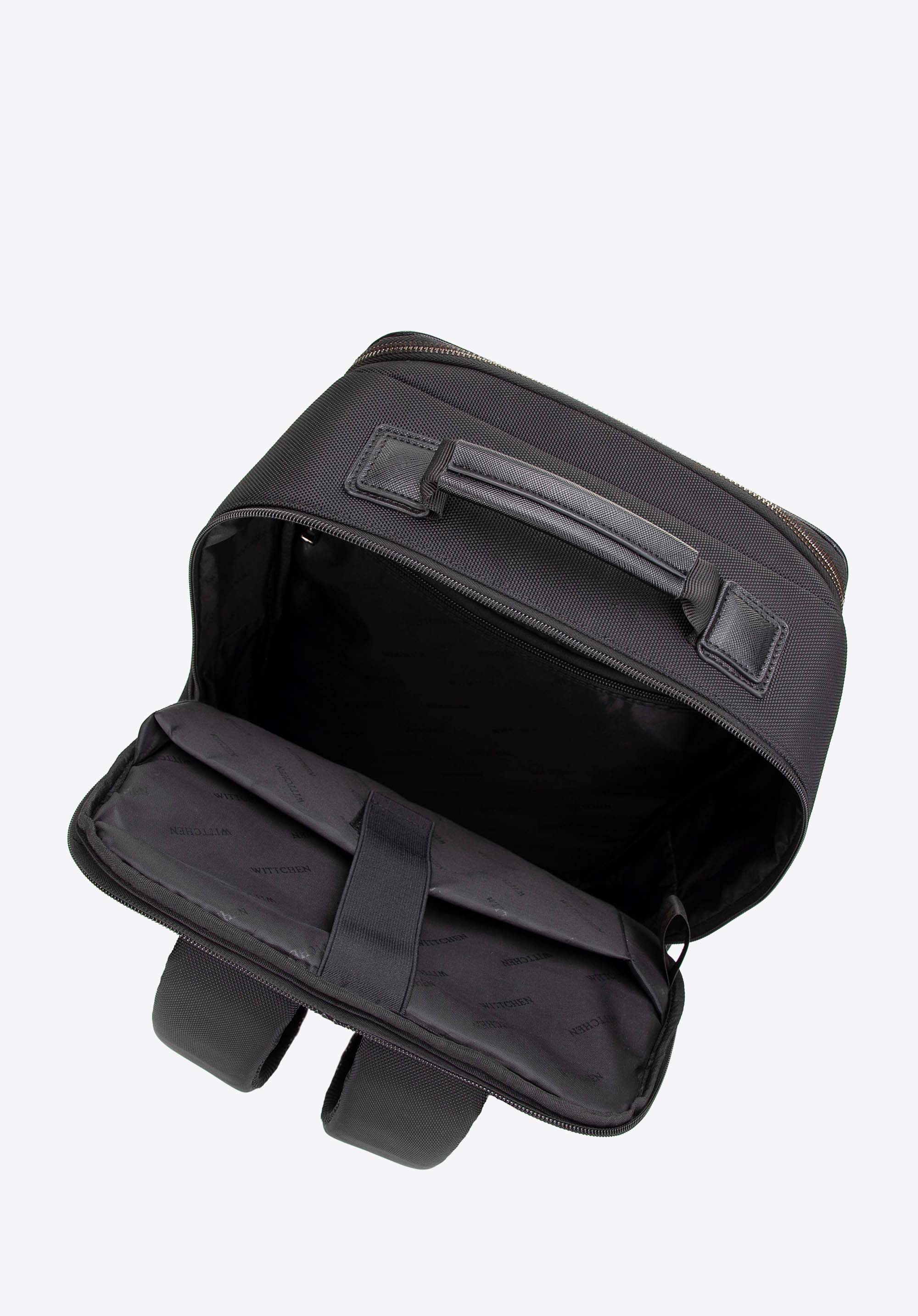 - Vnitřní prostor: Hlavní komora obsahuje kapsu na zip a vyhrazenou kapsu na notebook (29 × 26 cm) zajištěnou páskem na suchý zip.