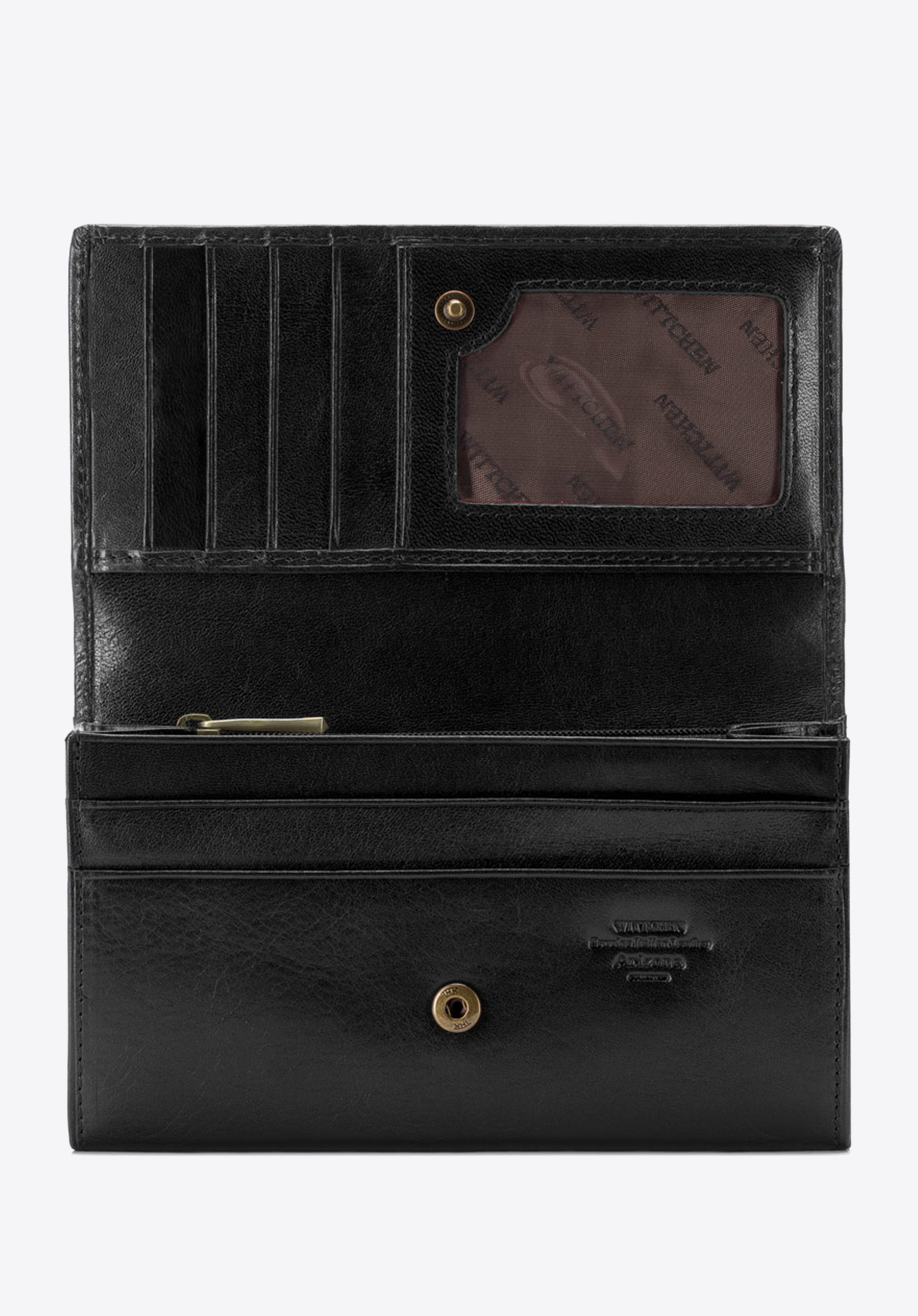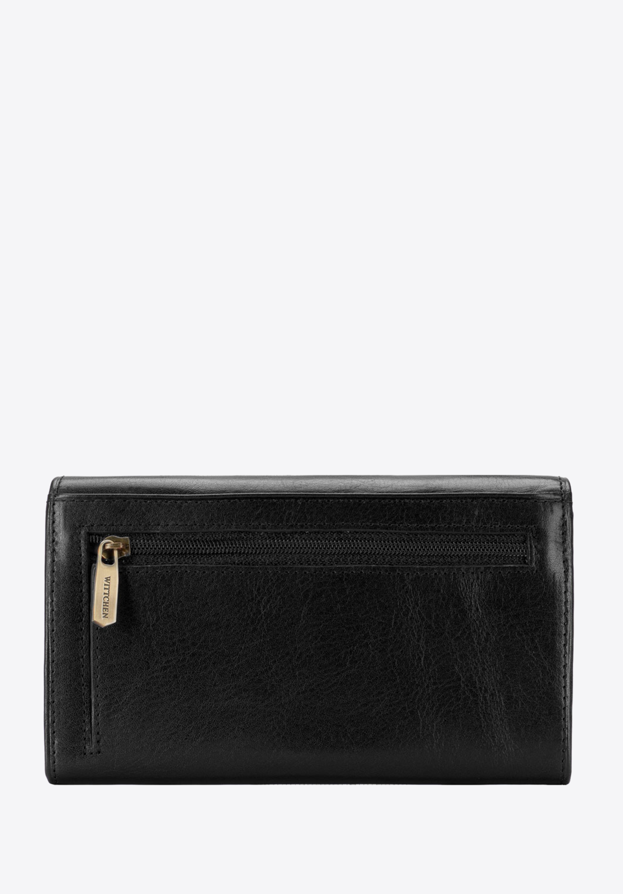 Kožená dámská peněženka s vodorovnou orientací má zapínaní na suchý zip. Je ručně vyrobená z přírodní kůže s přírodním leskem. Vnitřek peněženky je pokryt polyesterovou podšívkou s ochranou RFID. Staré zlaté kovové prvky zdůrazňují jedinečný charakter doplňku. Stylové příslušenství je dostupné v červené a černé barvě.