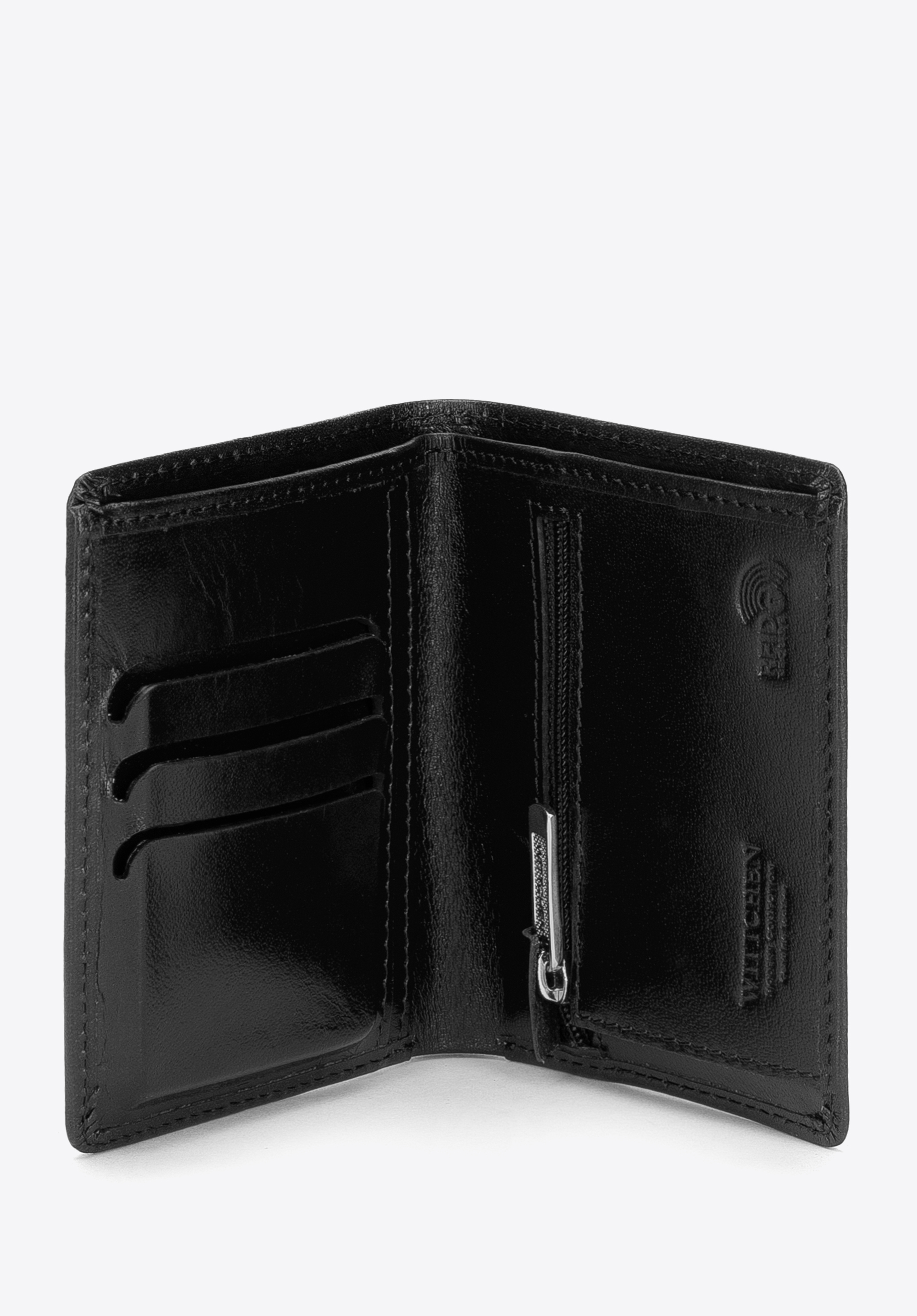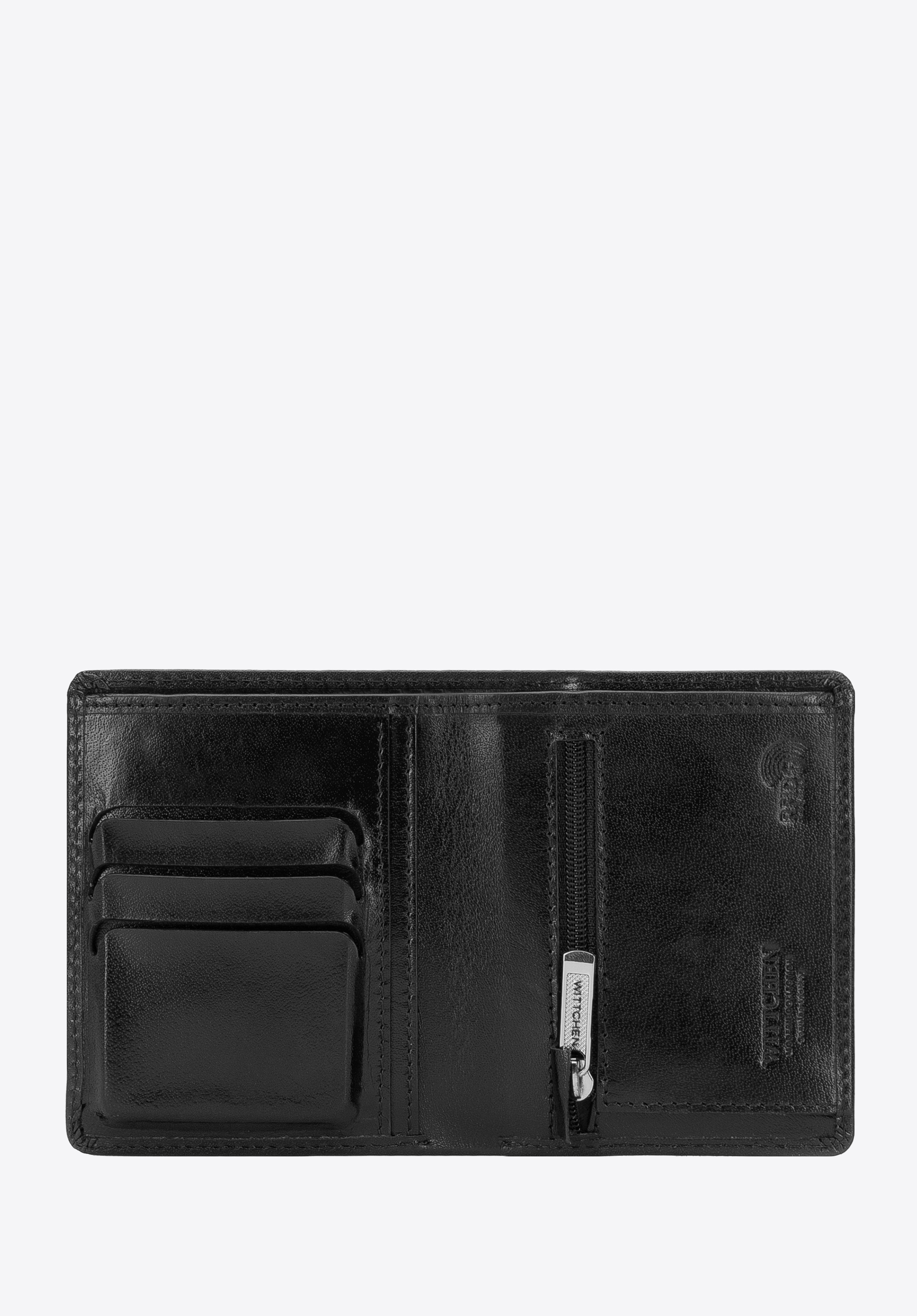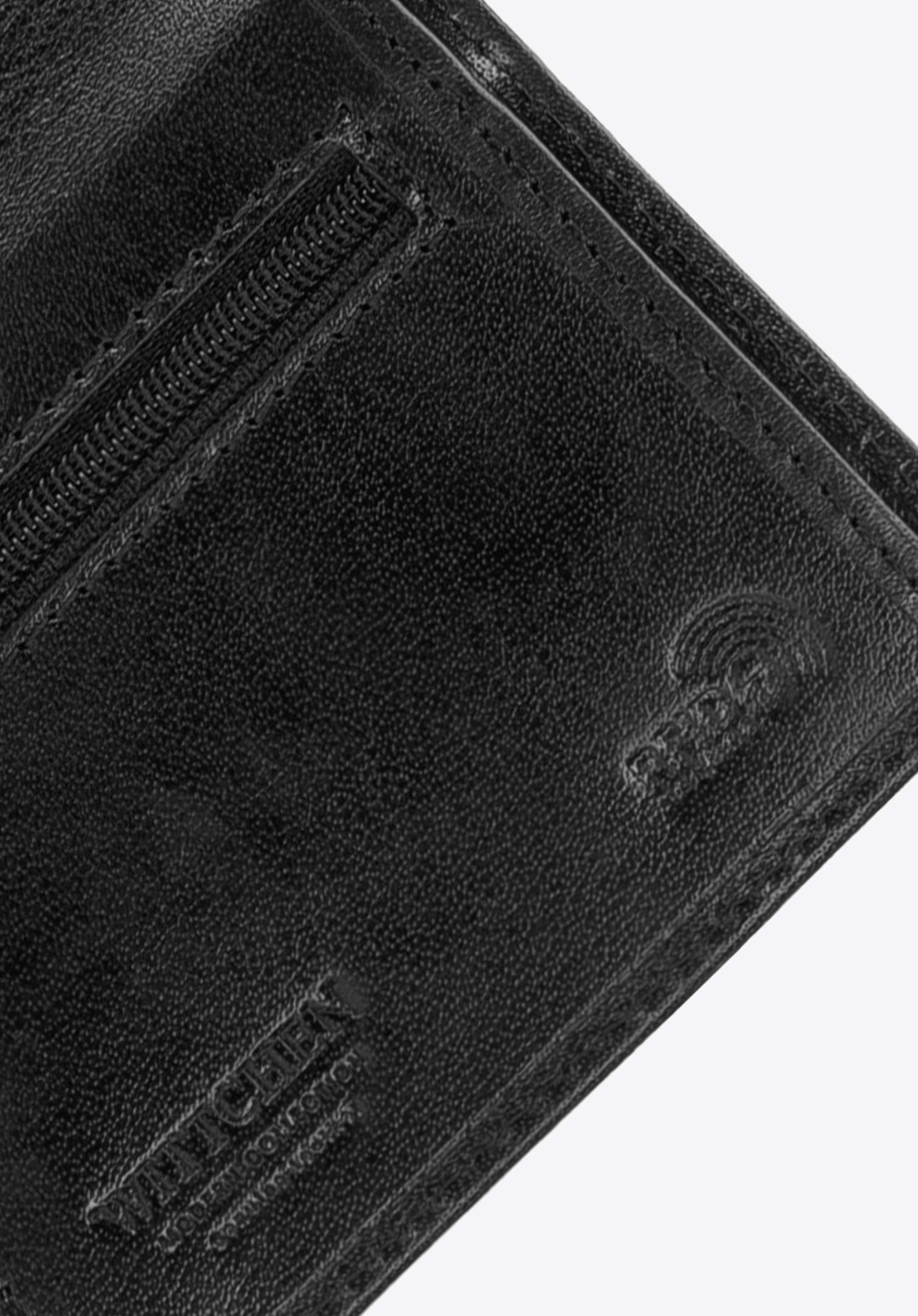 Tato kožená peněženka potěší každého uživatele. Hlavní přehrádka nemá žádné zapínání. Uvnitř peněženky je jedna velká kapsa na bankovky, čtyři přehrádky na dokumenty a další kapsa na zip, do které můžete schovat své mince. Je vyrobena z vysoce kvalitní přírodní kůže. Kovové prvky a logo mají stříbrnou barvu. Má podšívku s technologií RFID, díky ní vaše data jsou v bezpečí.
