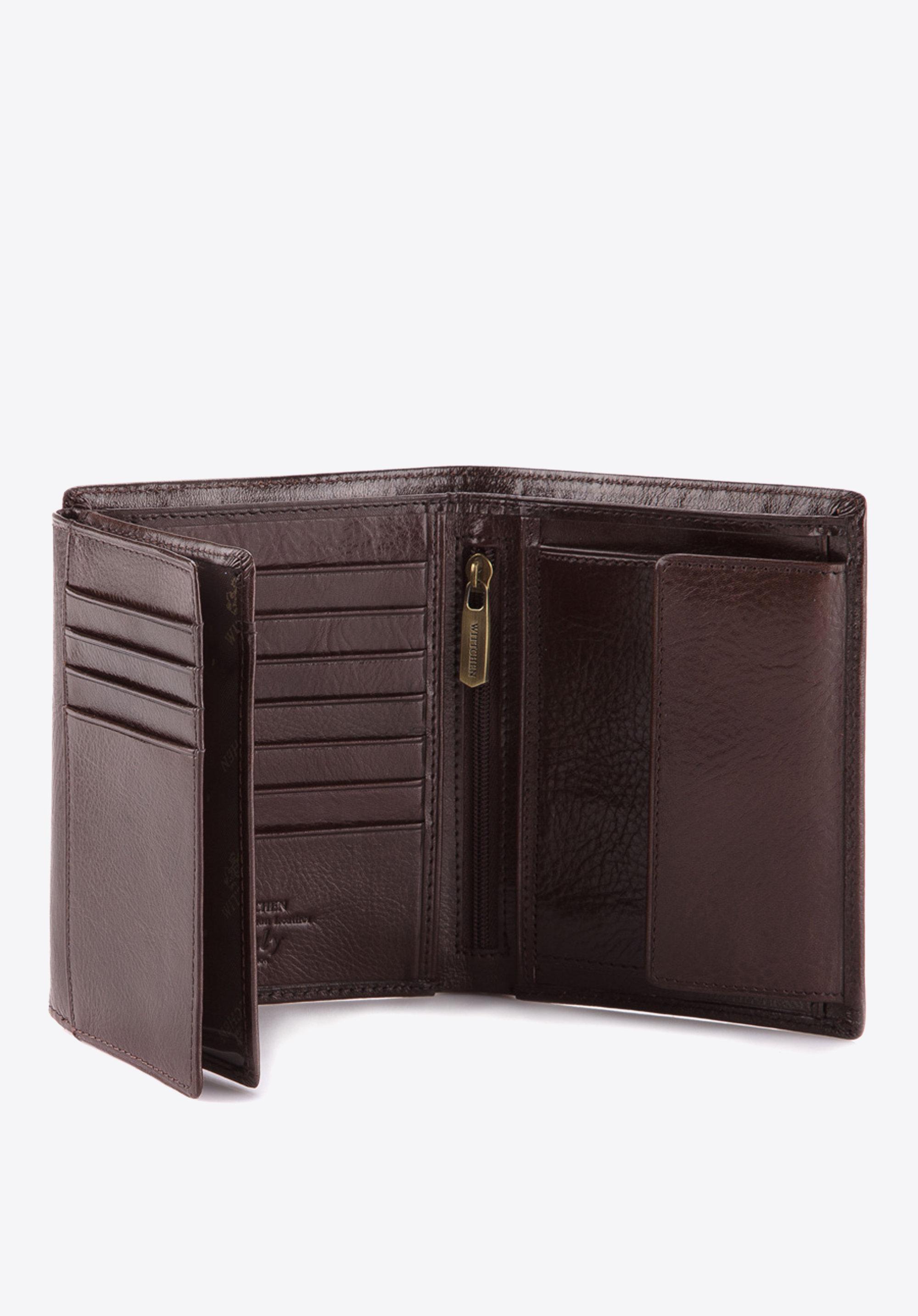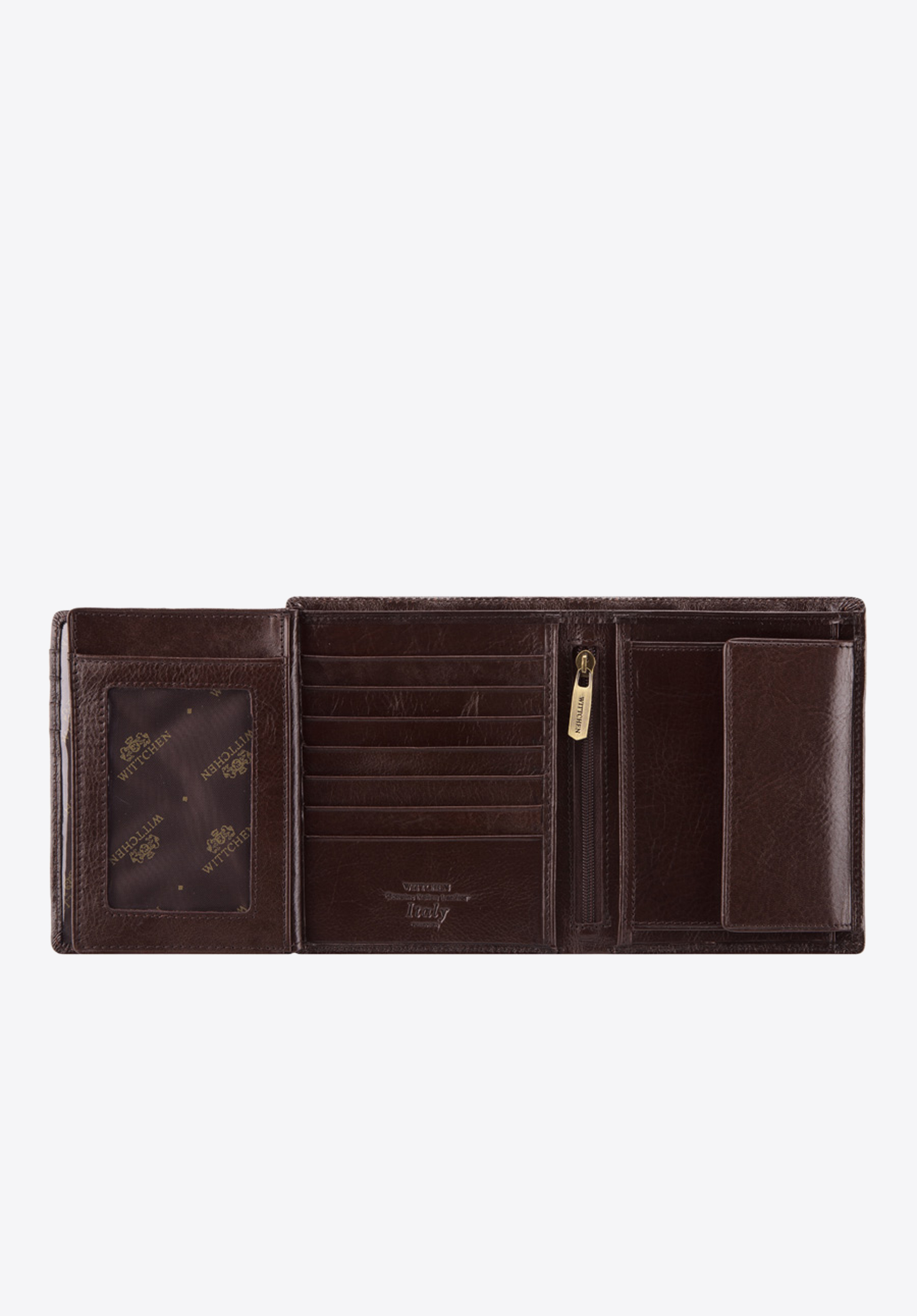 Pánská velká peněženka z kolekce Italy, ručně vyroběná z měkké telecí kůže, pečlivě zpracovaná a dokonale dokončena. Kůže vyražená logem WITTCHEN. Velké množství kapes činí tuto peněženku velmi prostornou a funkční. Pro ty, kteří ocení příslušenství v klasickém stylu, které také poskytují pohodlí při použití.