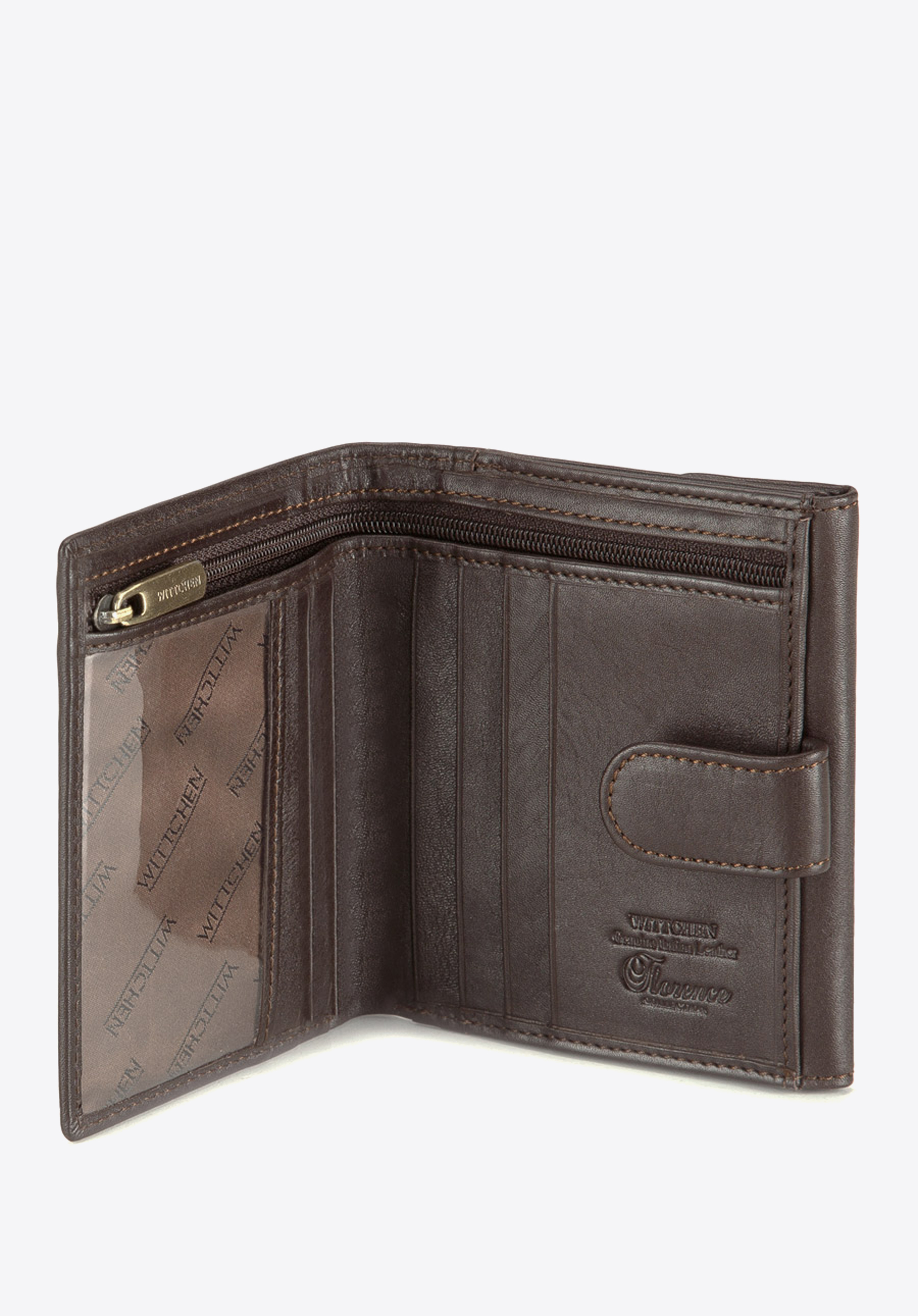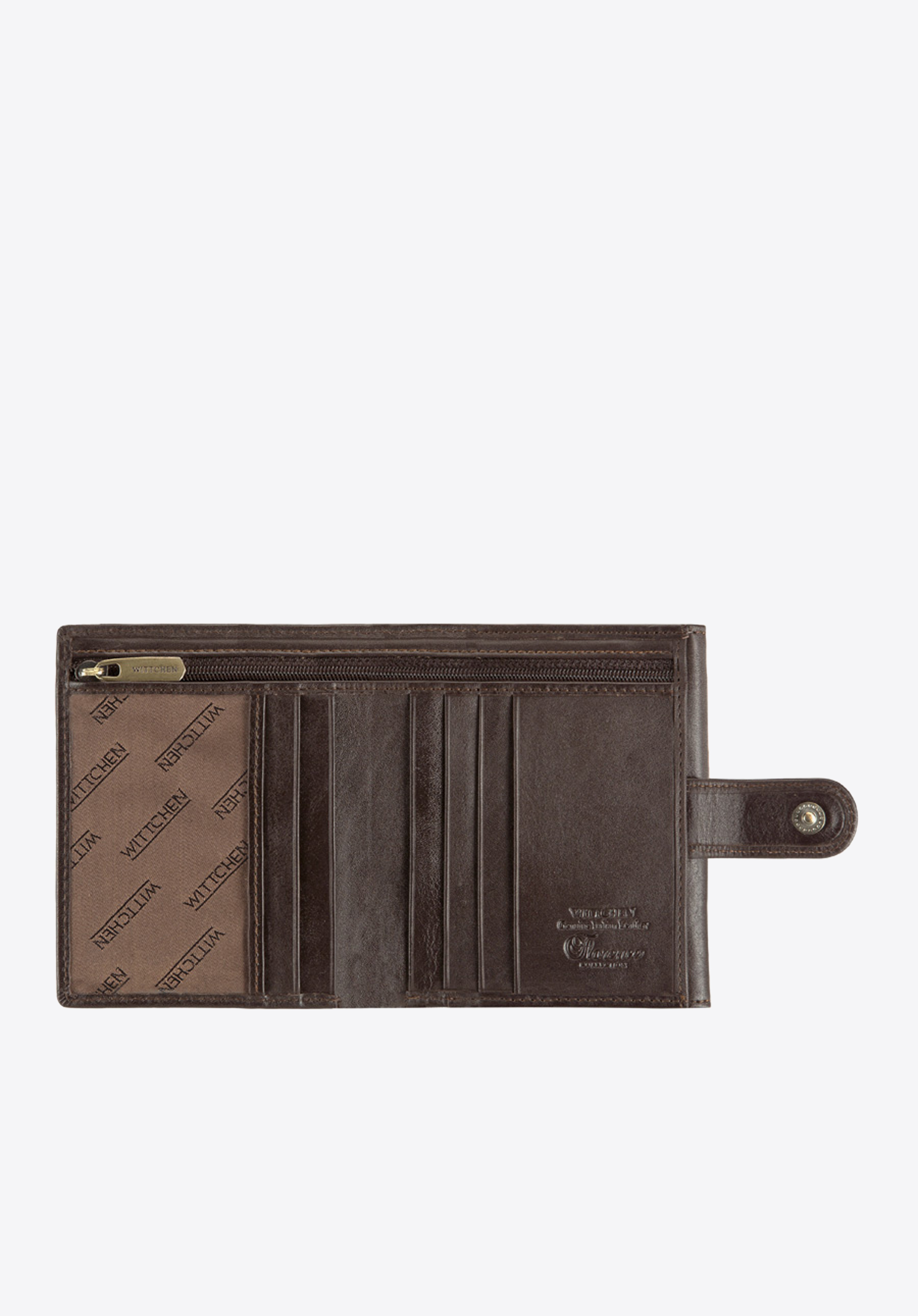 Velmi pečlivě, ručně vyrobená peněženka z měkké přírodní kůže. Má ozdobu ve tvaru erbu WITTCHEN vyraženou v kůži.