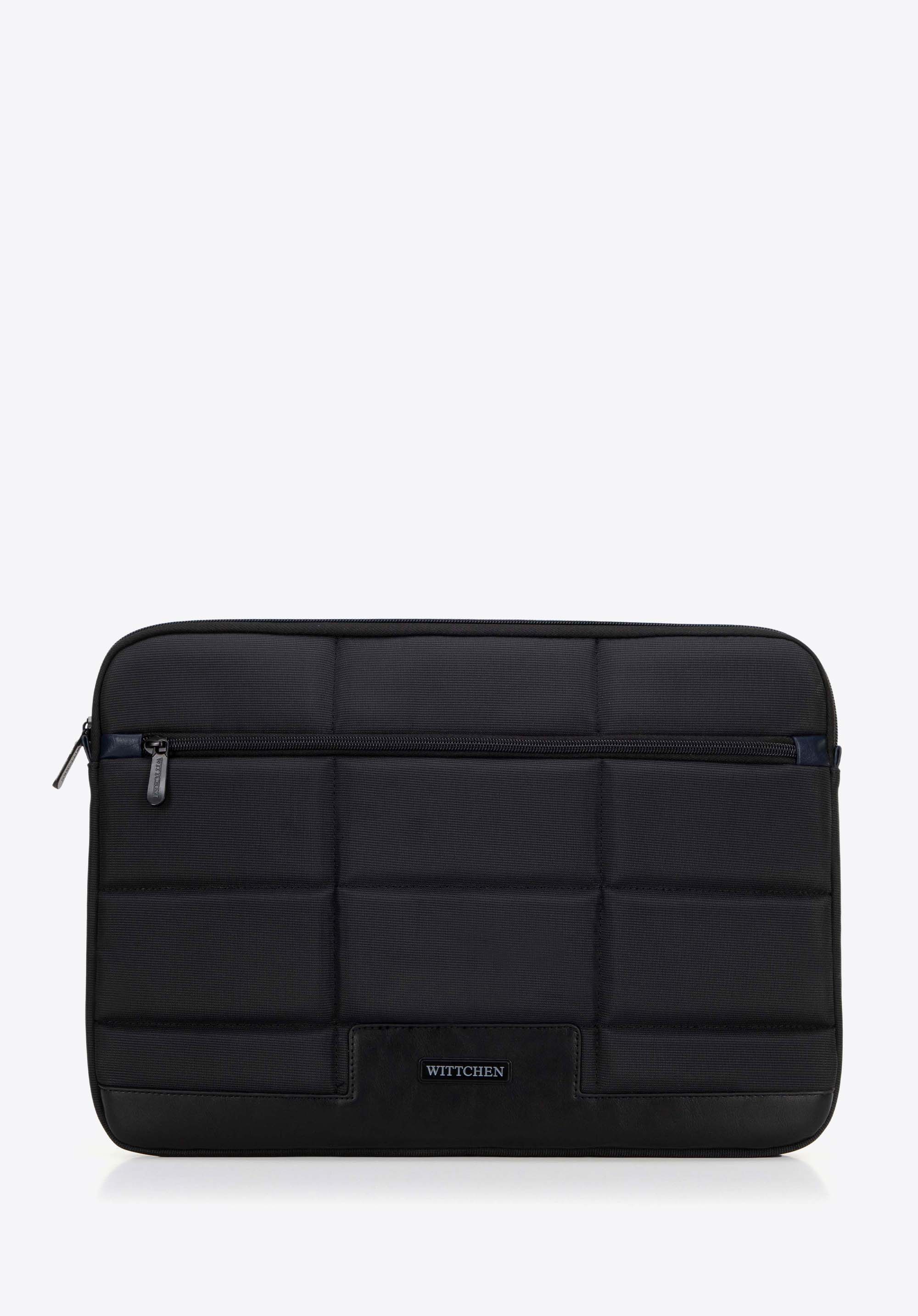 Chraňte svůj notebook stylově v tomto pouzdře vyrobeném z odolného polyesteru a zdobeném stylovými detaily z umělé kůže . Charakteristická prošívaná přední strana mu dodává moderní a zároveň rafinovaný vzhled, který odráží současné trendy. Decentní branding na přední straně a zapínání na zipy dodává nádech decentní elegance.
