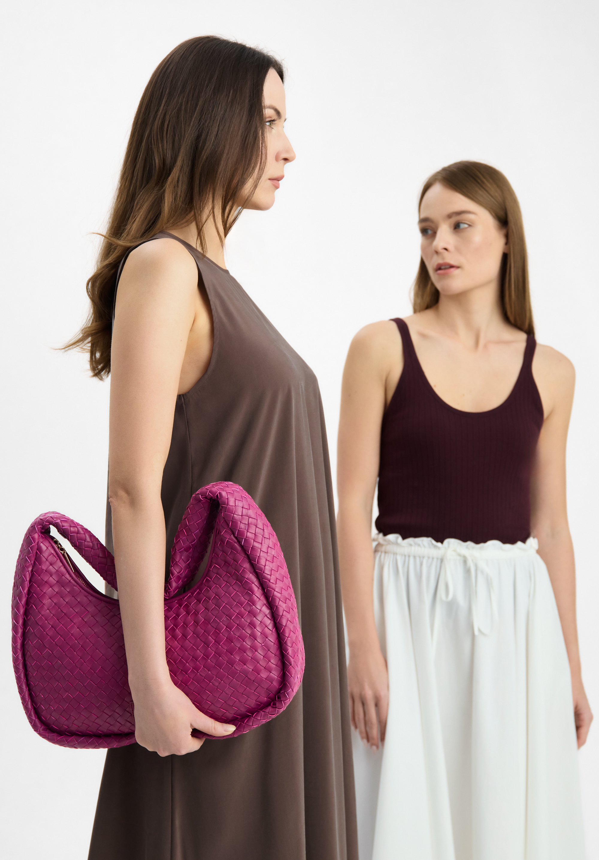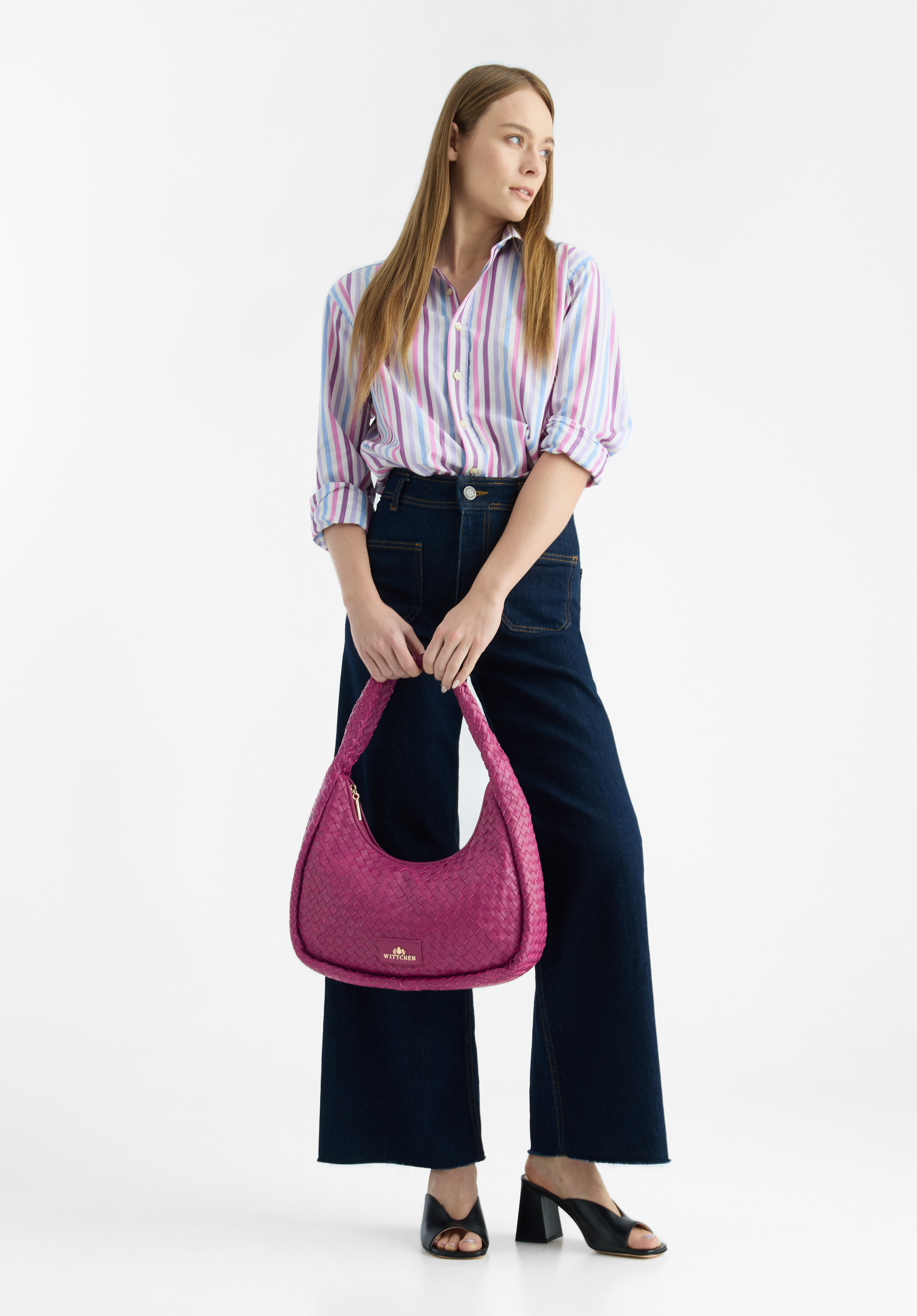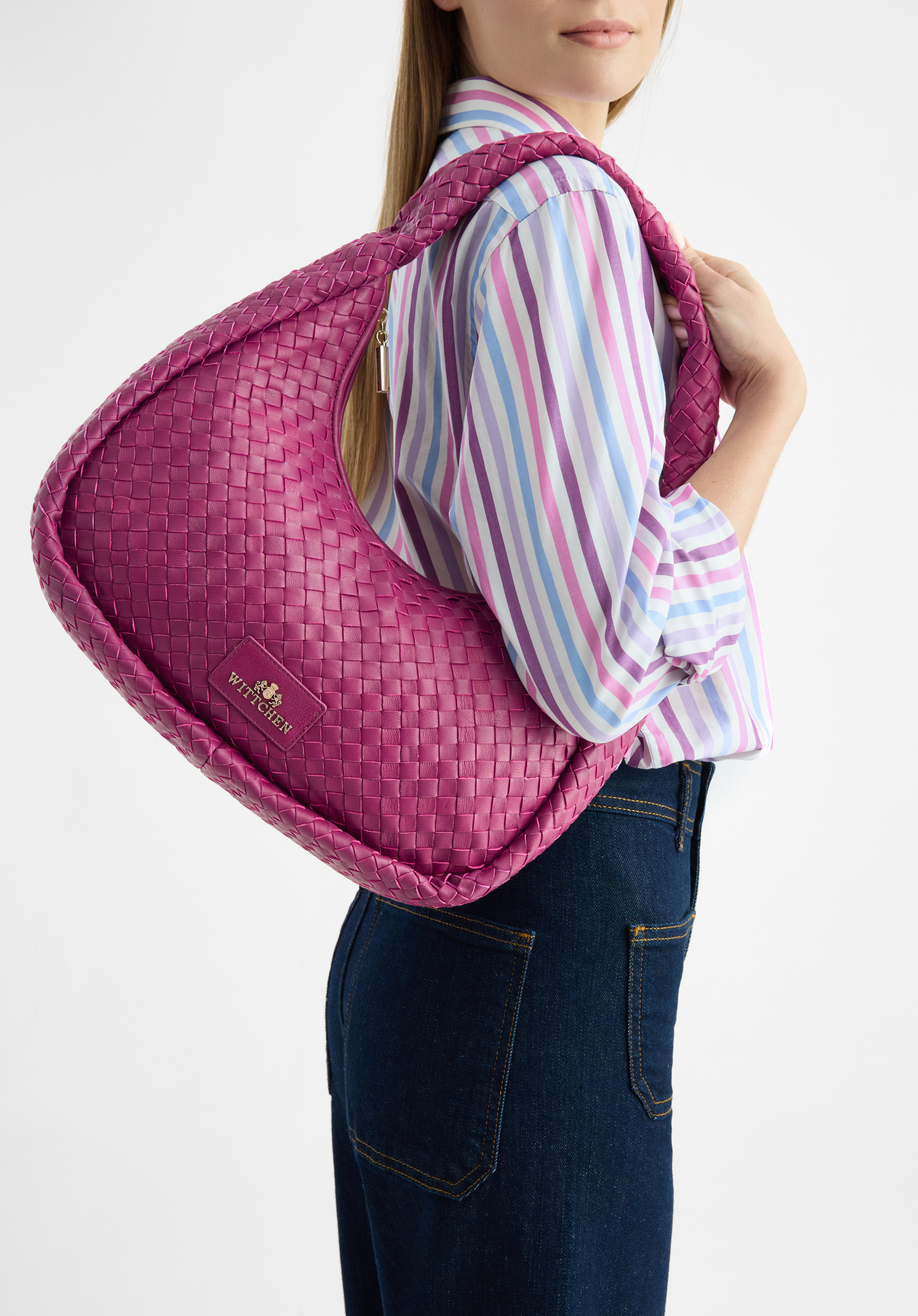 Tato kožená kabelka dodá vašemu šatníku nový styl. Má módní tvar a je dost tuha, takže pěkně bude držet tvar. Dovnitř vejde peněženka, telefon, malá kosmetická taška, kalendář a pár drobností. Noste ji v létě ke svým oblíbeným šatům a sandálům na vysokém podpatku nebo v zimě k vlněnému kabátu a kozačkám – budete vypadat stylově za každé situace. Velká kabelka z tkané kůže je skvělou volbou pro ženy, které mají rády nápadné doplňky.