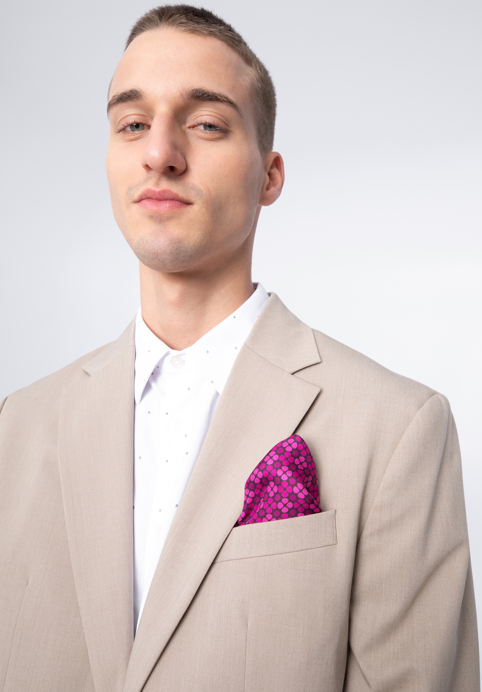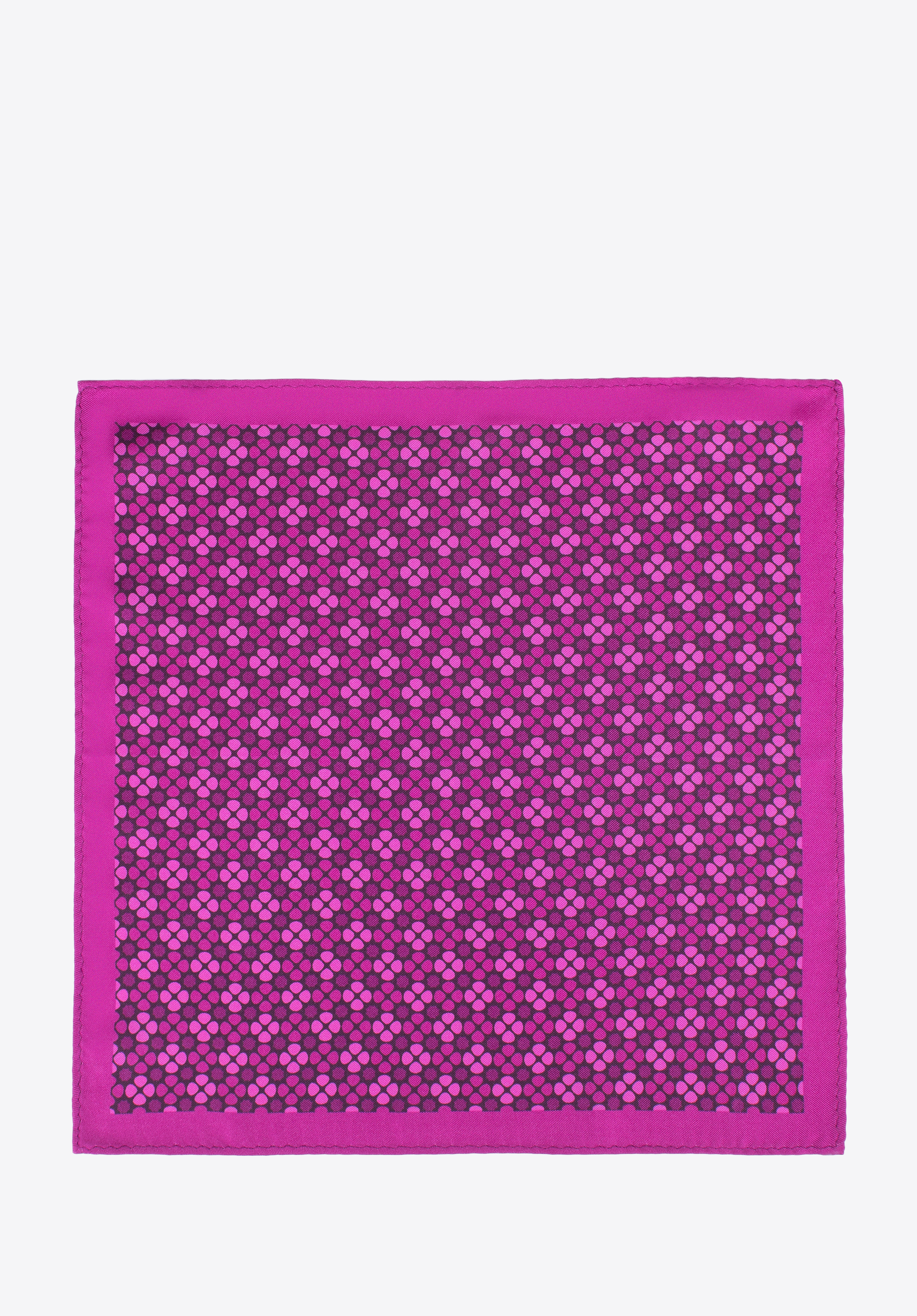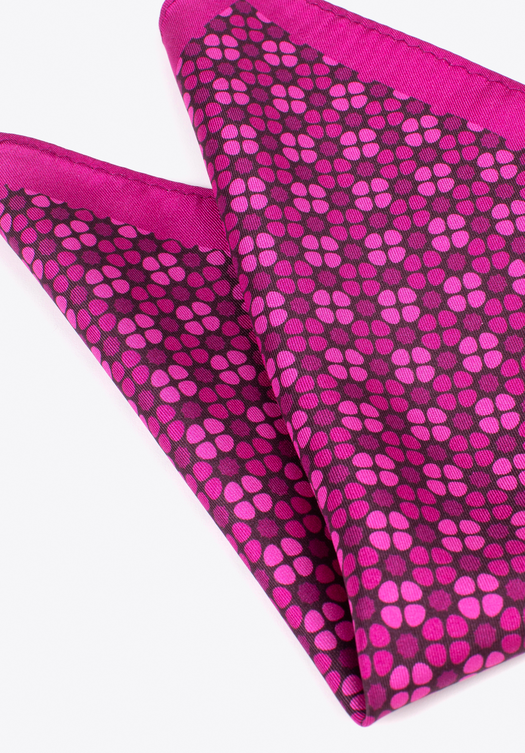 Hedvábný kapesníček bude doplňkem každého elegantního muže. Je vyroben z kvalitního hedvábí s jemným leskem, který je velmi příjemný na dotek. Vzor zpestří hladké sako a dodá mu charakter. Vzorovaný hedvábný kapesníček bude se hodit při mnoha příležitostech, proto vyplatí se ho mít ve svém šatníku.