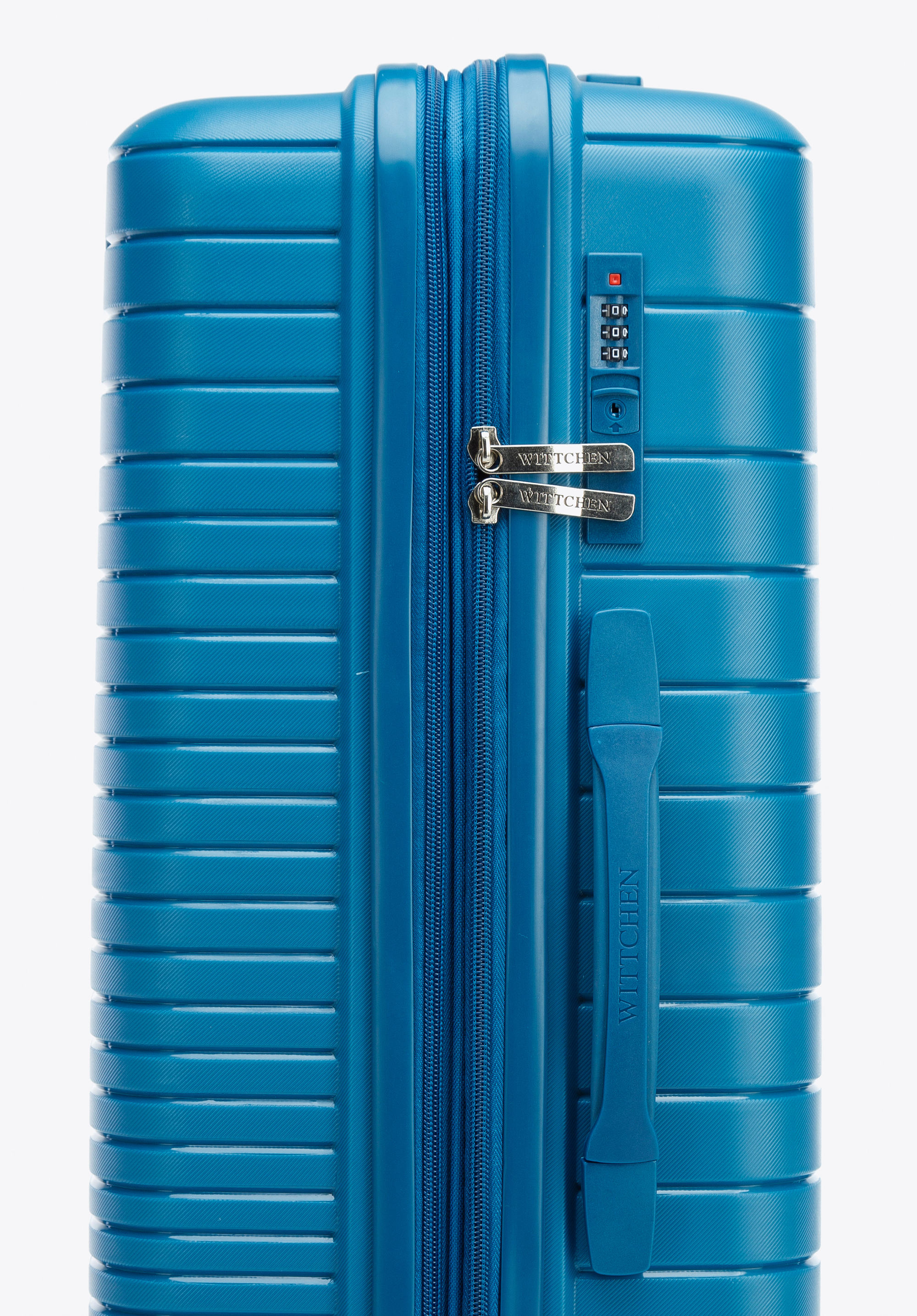 Tato sada kufrů je pohodlnou a stylovou volbou pro každého nadšence cestování. Jsou vyrobeny z vysoce kvalitního polypropylenu, takže jsou lehké a velmi flexibilní. Matný povrh je zdoben lesklými, vodorovnými pruhy, které dodávají jim moderní vzhled. Střední a velké kufry lze rozšířit, takže je snadno přizpůsobíte svým potřebám na každé cestě. Uvnitř mají dvě přihrádky, kde snadno udržíte pořádek a pohodlně se sbalíte na cestu. Díky výsuvné teleskopické rukojeti a čtyřem dvojitě otočným kolečkům budou se pohodlně manévrovat. Sada polypropylenových kufrů s lesklými pruhy je skvělou volbou pro každou cestu.