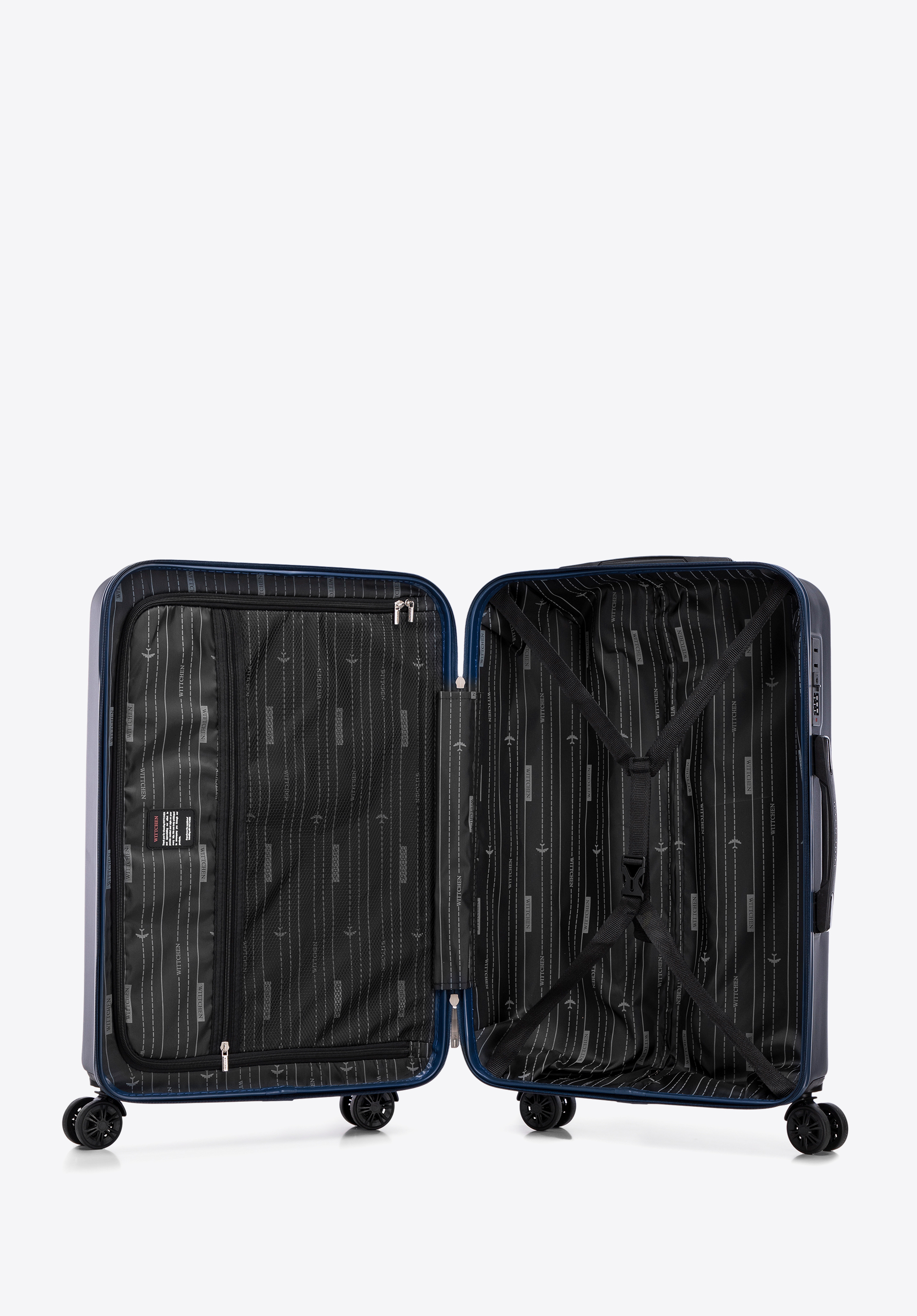 - Interiér kufrů: Každý kufr je vybaven nastavitelnými popruhy, kapsou a přihrádkou na zip, zajišťující perfektní organizaci zavazadel.