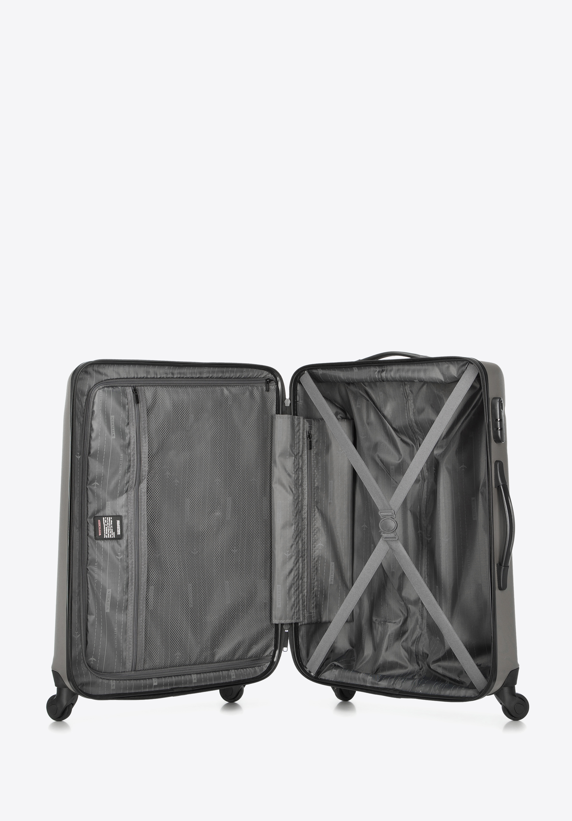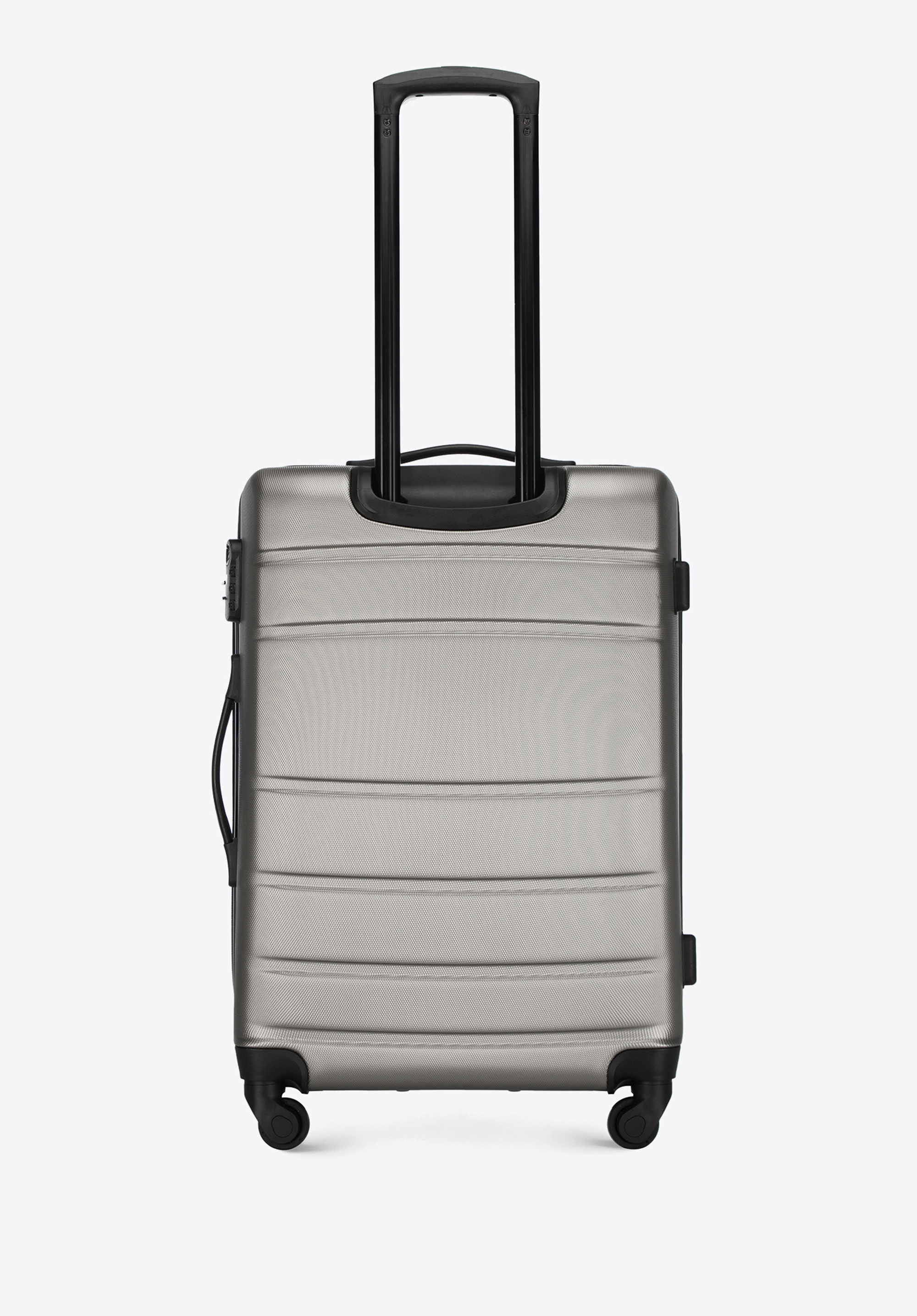 Kufry vyrobené z materiálů ABS mají vysokou odolnost proti poškrábání. Vertikální zdobení dává kufrům zajímavý charakter. Produkt je k dispozici v několika barvách: tmavě modré, růžové, šampaňské, šedé a černé.