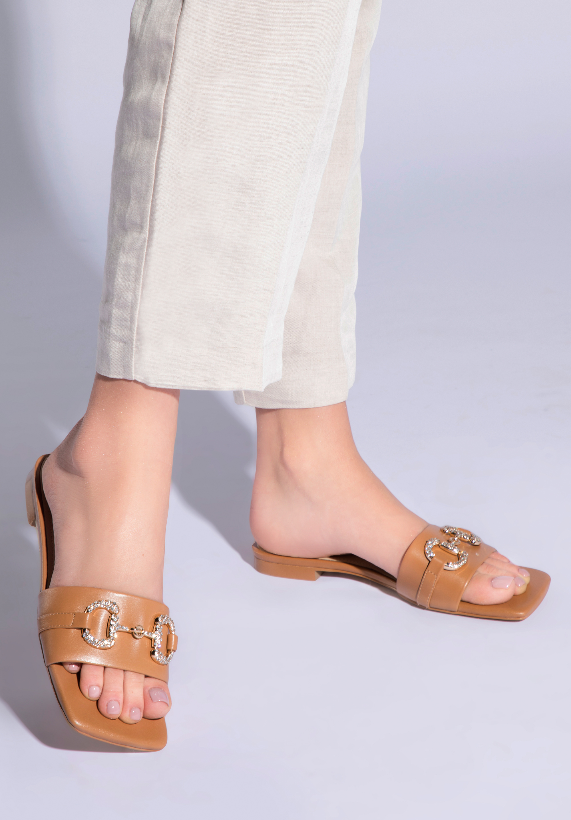 plochou podrážkou se třpytivým detailem přezky se neuvěřitelně pohodlně nosí. Tyto pěkné letní boty bez námahy pozvednou váš outfit, aniž by vám dodaly centimetry navíc. Tyto slip on sandály dodají kolekci dámské obuvi osvěžující dávku elegance.