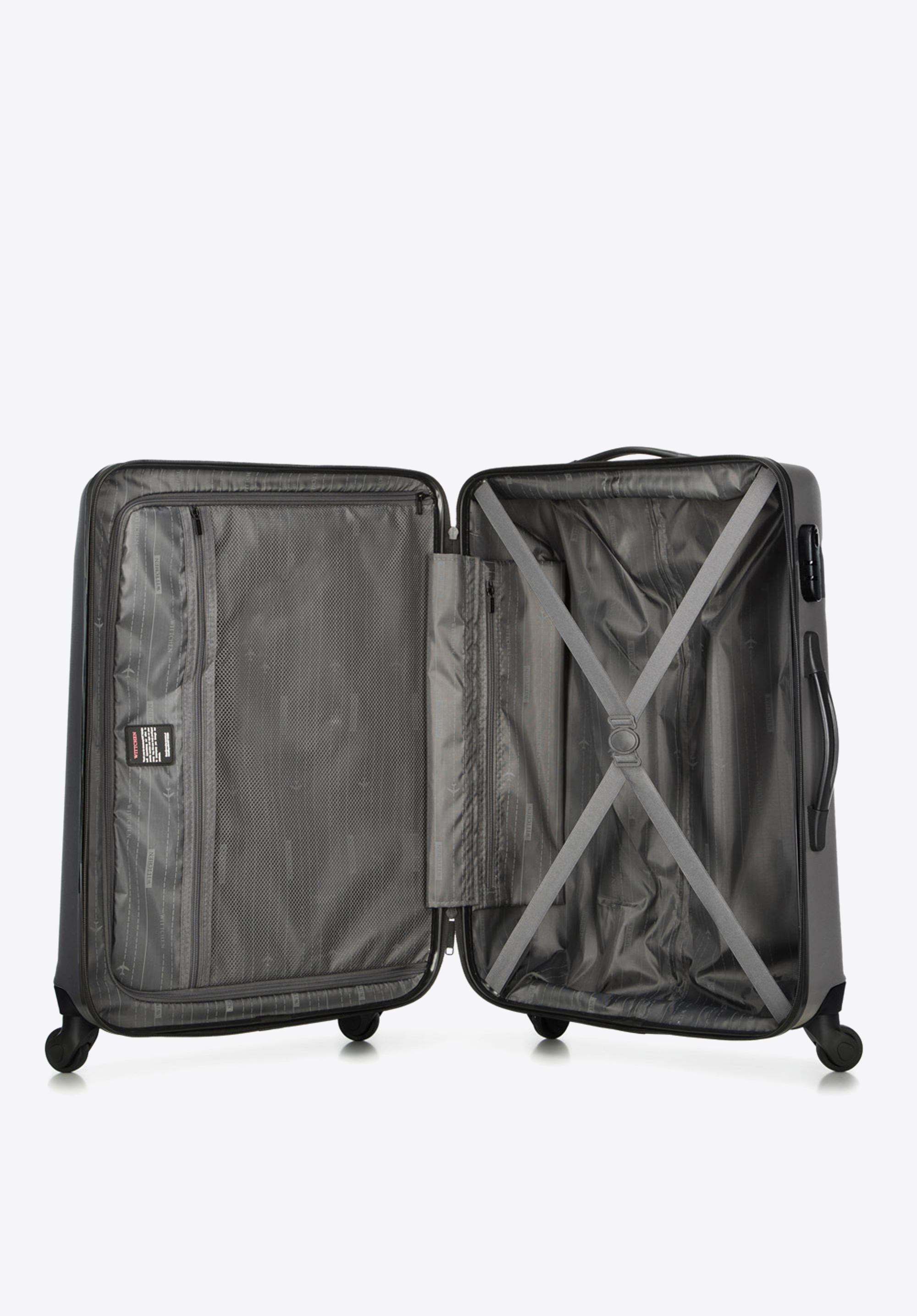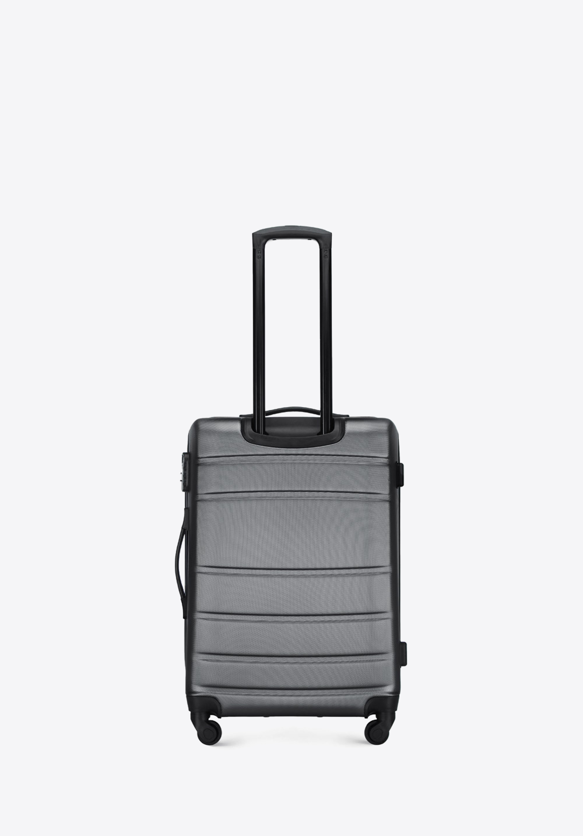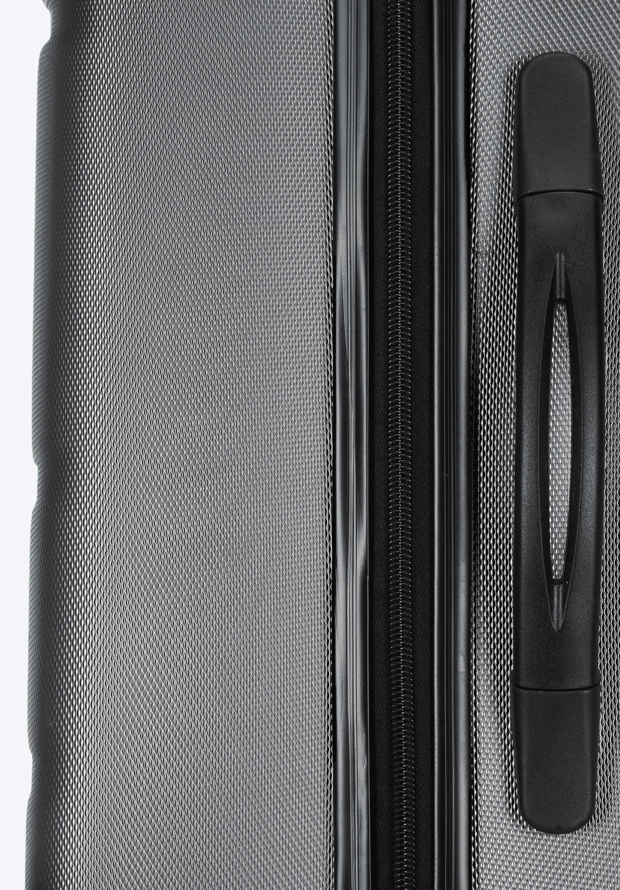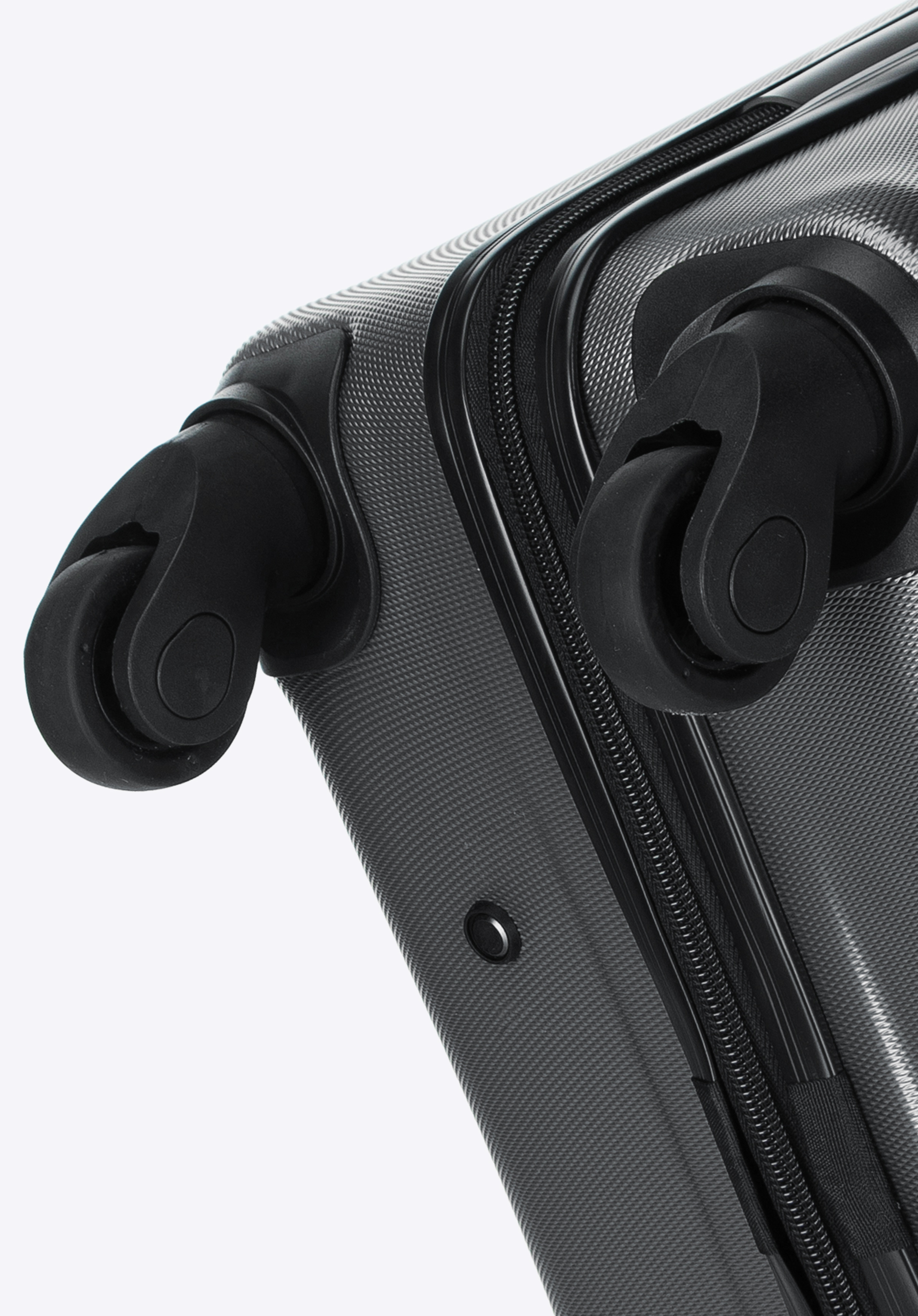 Kufry vyrobené z materiálů ABS mají vysokou odolnost proti poškrábání. Vertikální zdobení dává kufrům zajímavý charakter. Produkt je k dispozici v několika barvách: tmavě modré, růžové, šampaňské, šedé a černé.