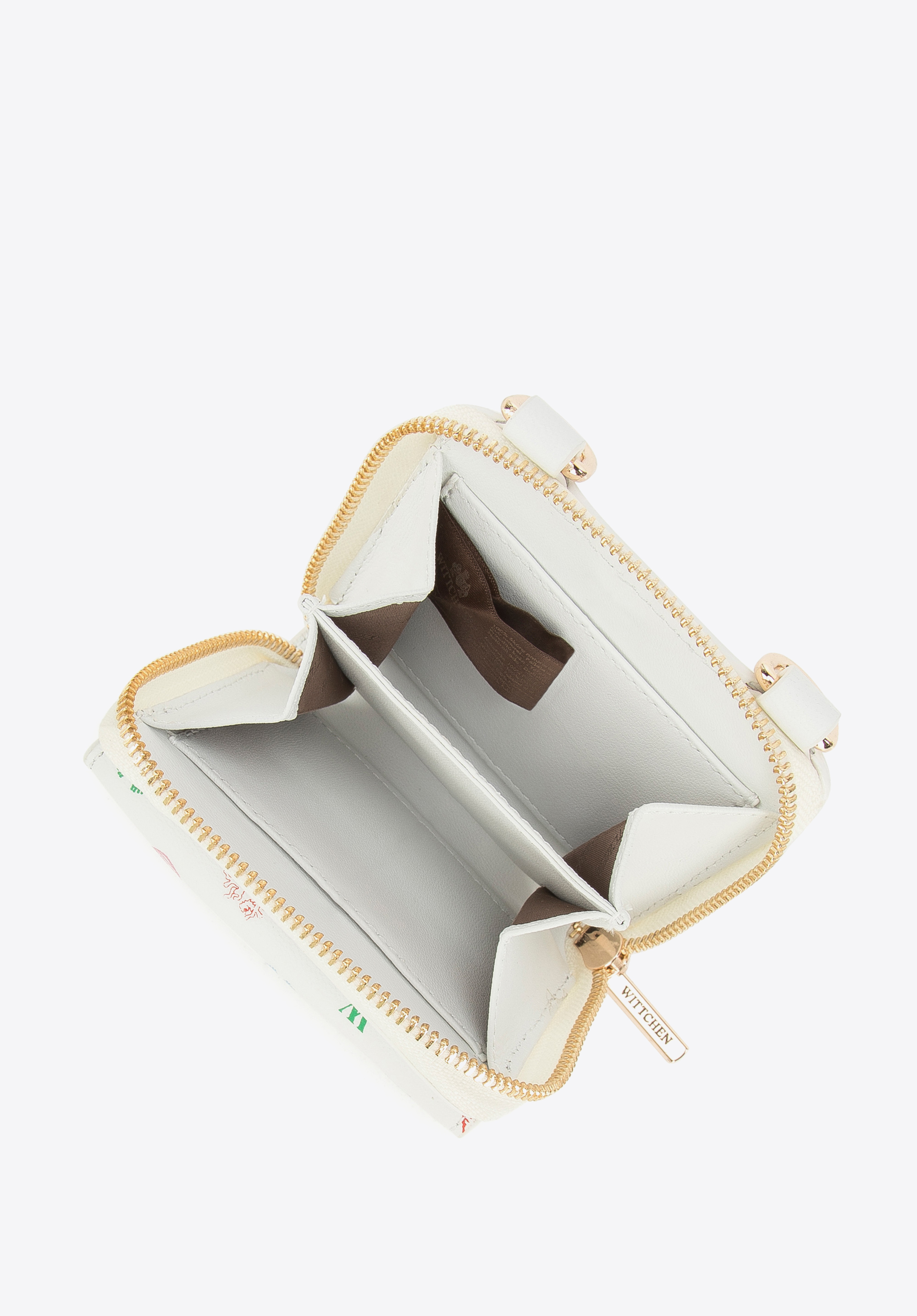 Tuto originální peněženku lze nosit jako kabelku díky připevněnému lesklému řetízku. Byla vyrobena z kvalitní přírodní kůže s monogramem WITTCHEN, takže je o doplněk na léta. Lesk dodává zlaté kování a řetízek, díky kterému celek získává nový charakter. Dovnitř vejdou mince a dvě karty a do vnější kapsy upevněné na magnet schováte například lístek. Peněženku můžete nosit každý den nebo vzít ji jako kabelku na večer do kina. Dámská kožená peněženka na řetízku bude se hodit každé ženě.