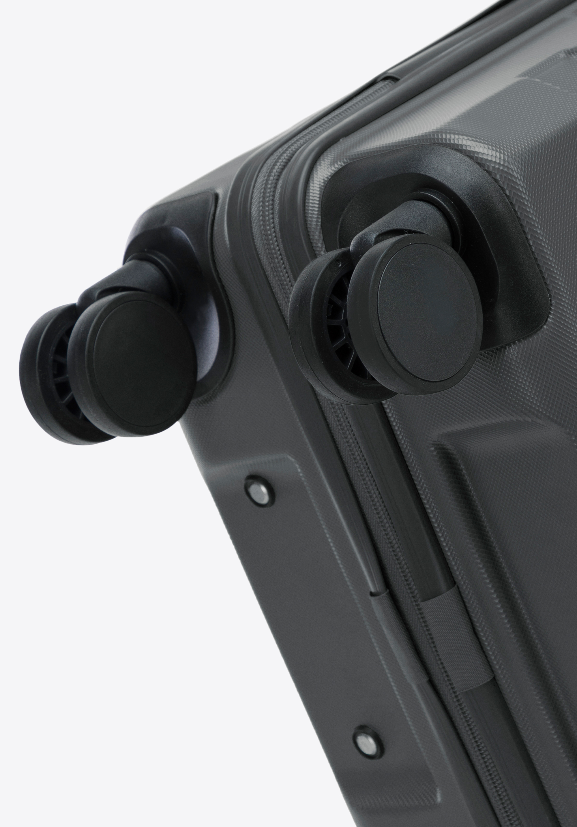 - kufr je vybaven čtyřmi dvojitými, otočnými kolečky pro snadnou manipulaci;