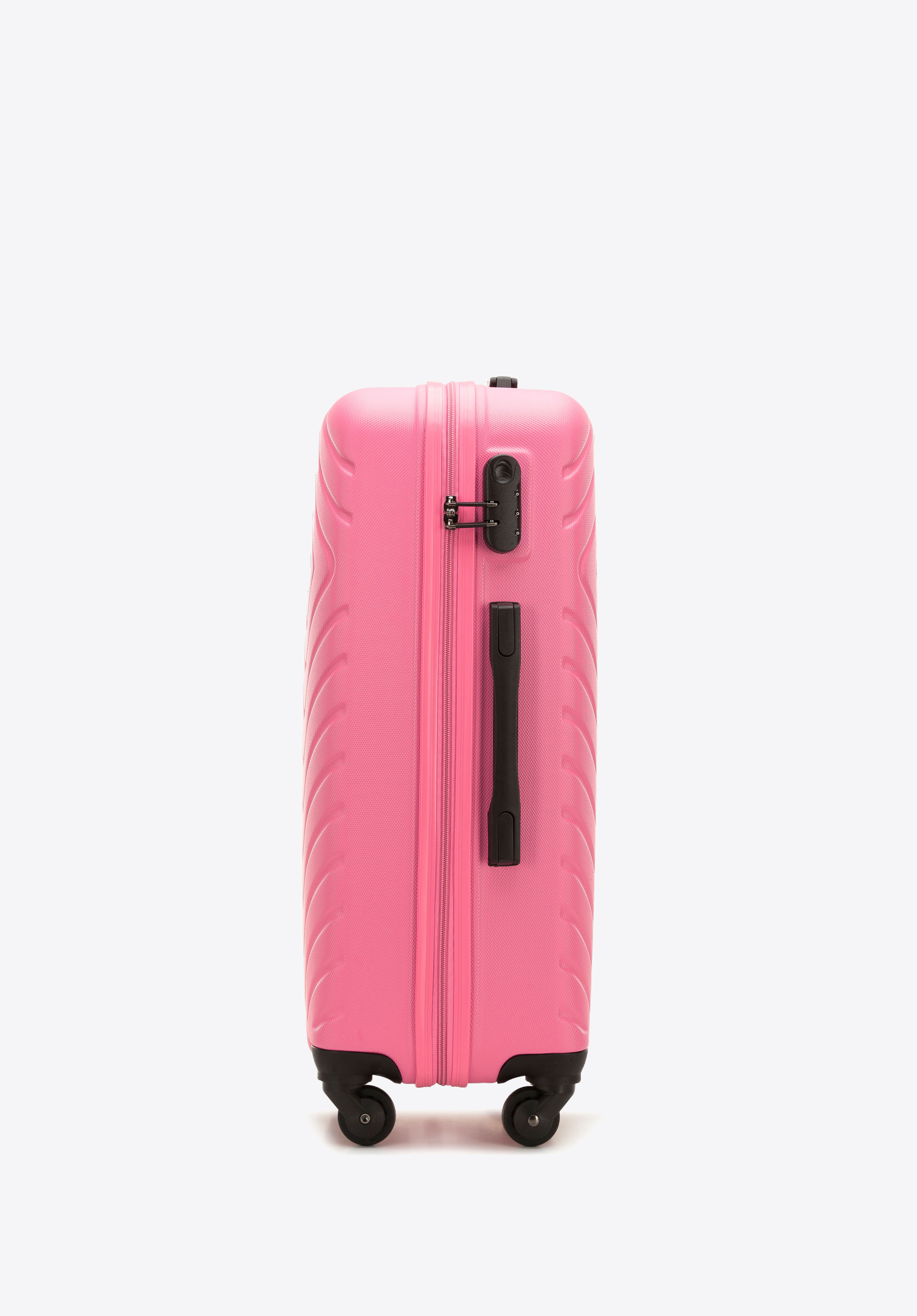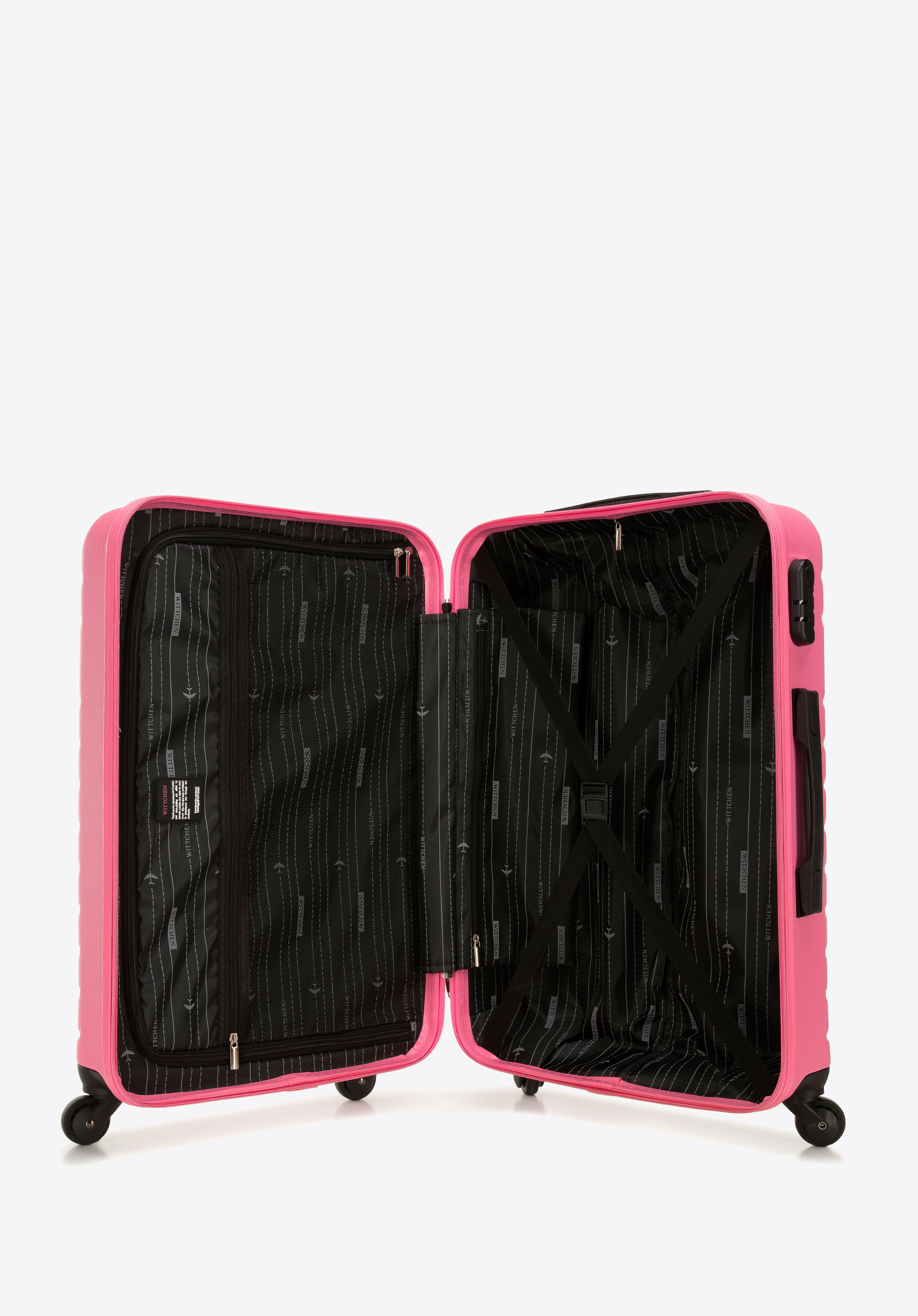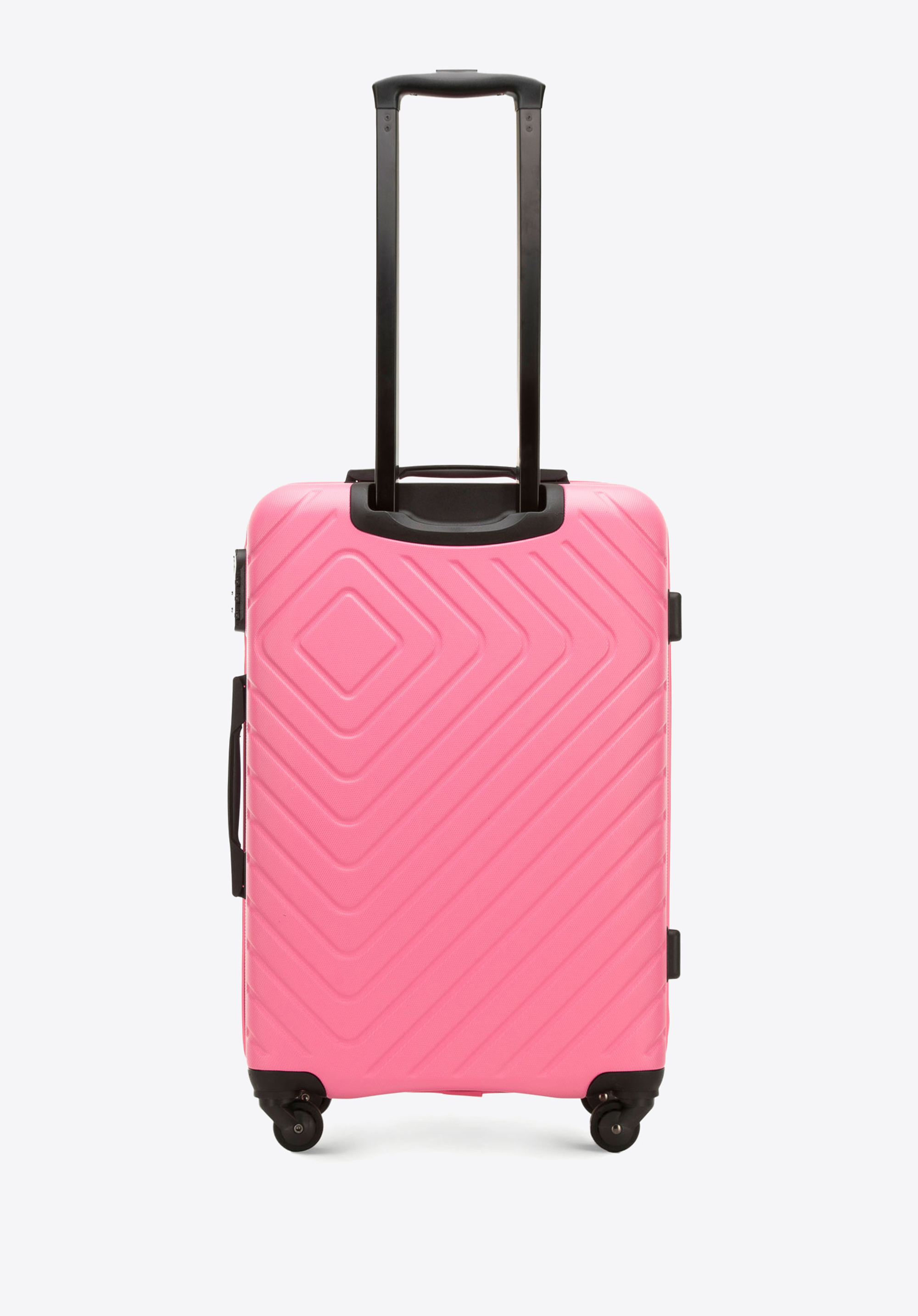 Tento moderní kufr bude se vám hodit na mnoho výletů. Je vyroben z ABS-u s hrubou texturou. Jednoduché geometrické ražení dodává mu charakter. Tento model má čtyři otáčející se kolečka a zasouvací rukojeť, která usnadňuje přenášení. Ve dvou vnitřních přehrádkách snadno udržíte pořádek a sbalíte vše potřebné na vícedenní výlet. Střední kufr s geometrickým ražením je moderním a praktickým doplňkem, který se vyplatí mít ve svém šatníku.