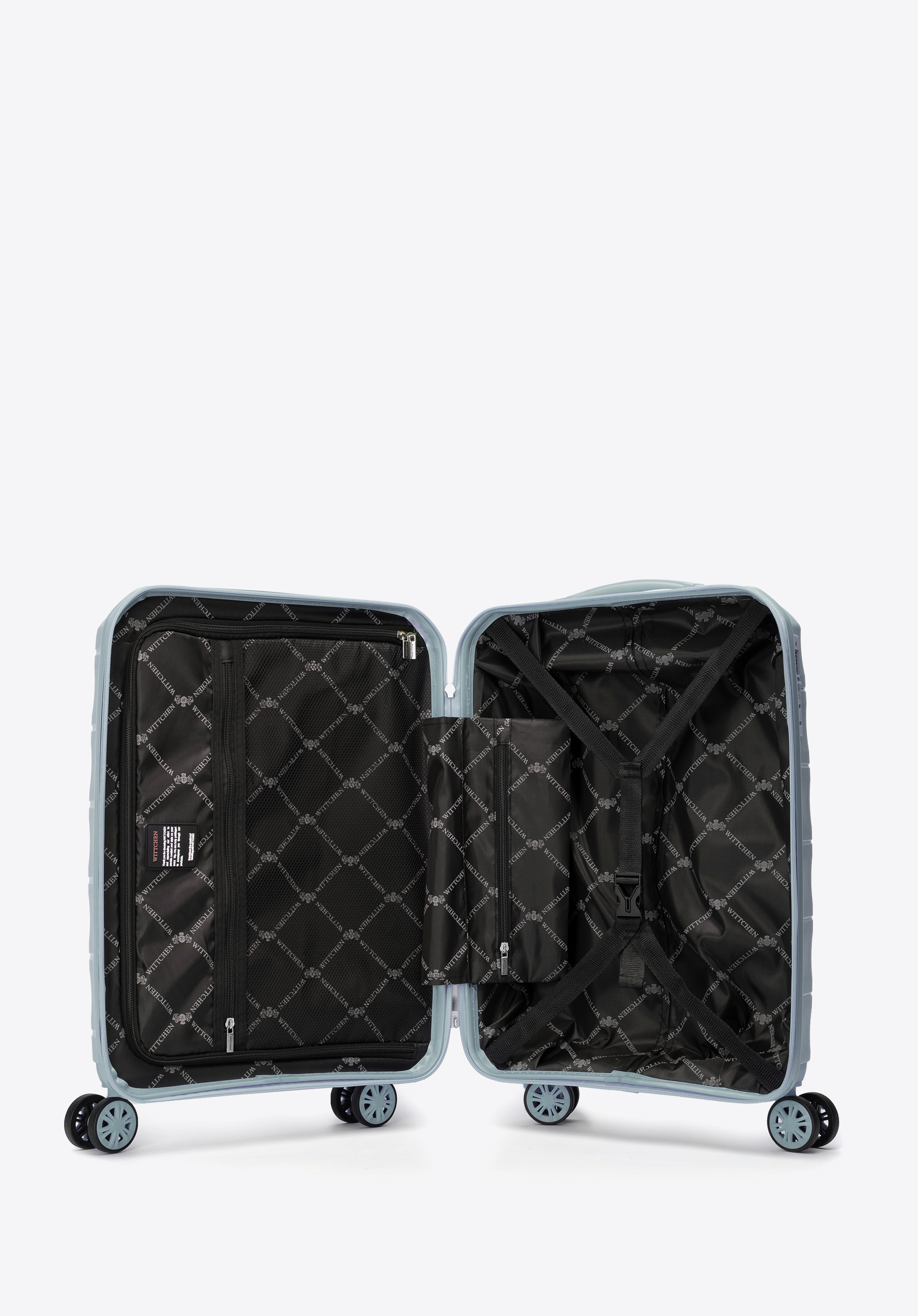 Tato unikátní série kufrů byla vytvořena pro vaše pohodlí na cestách. Kufr má výrazný tvar díky embosovaným popruhům, které dodávají elegantní charakter a zvyšují odolnost proti poškrábání a poškození. Kompaktní rozměry umožňují vzít ho jako příruční zavazadlo u většiny leteckých společností.