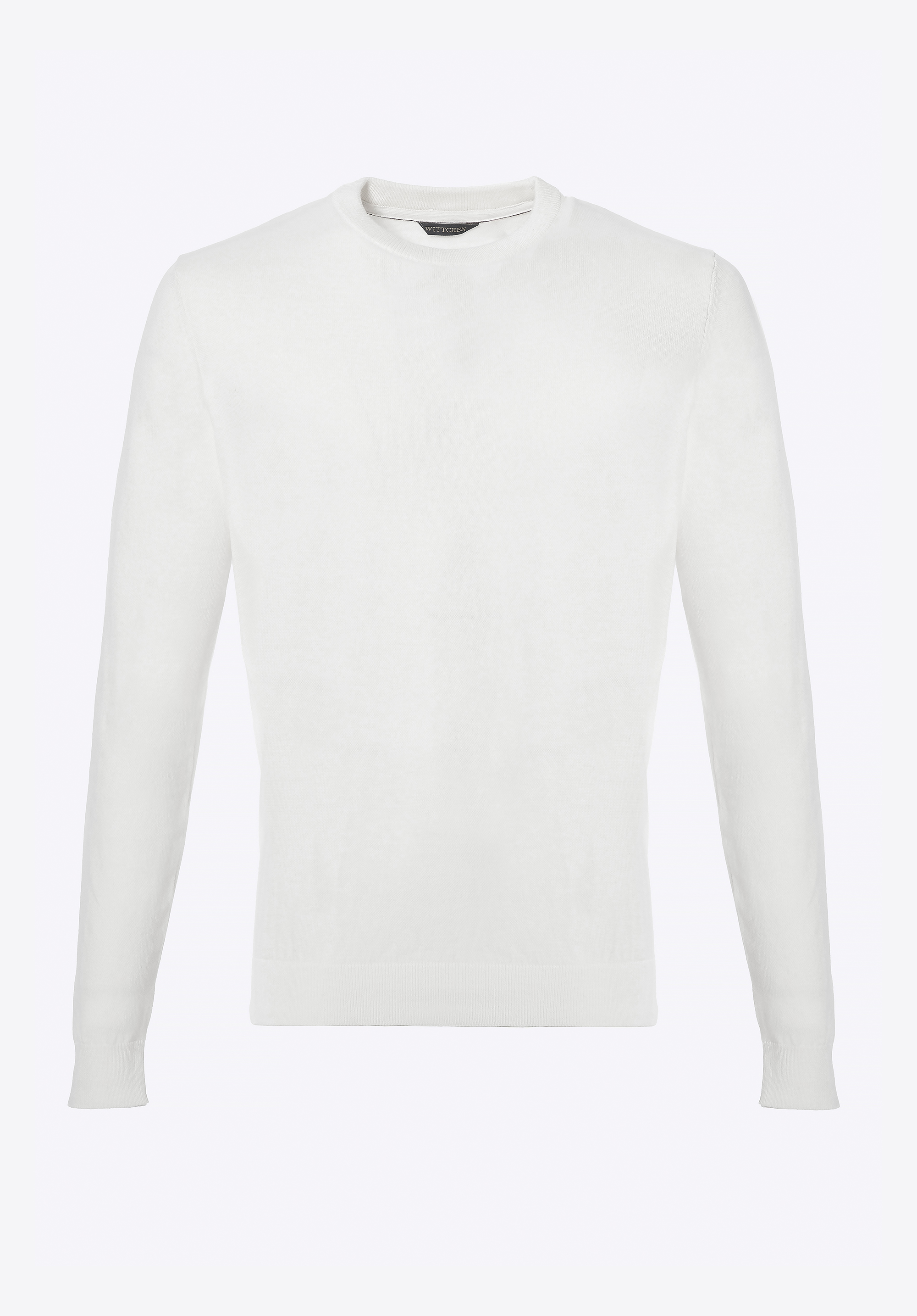 Tento svetr je perfektní volbou pro muže, kteří oceňují jednoduchost a nadčasový styl. Je vyrobený z bavlny smíchané s kašmírem a nabízí měkkost, tepelný komfort a přirozenou prodyšnost. Klasický, lehce přiléhavý střih s kulatým výstřihem a jemným žebrováním na lemu vytváří harmonický vzhled, který se hodí jak pro každodenní nošení, tak i pro elegantnější outfity. Malé kovové logo na spodním okraji je decentním, ale zároveň rafinovaným doplňkem, který zdůrazňuje důraz na detail.