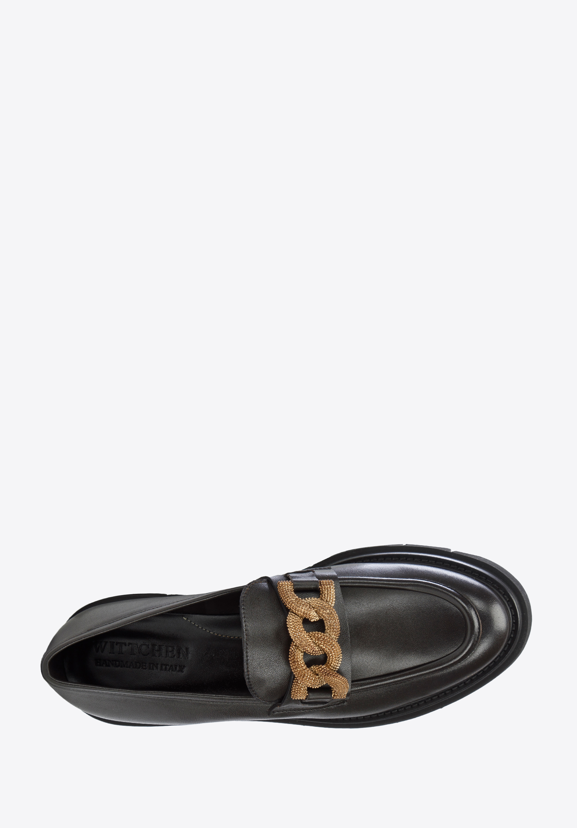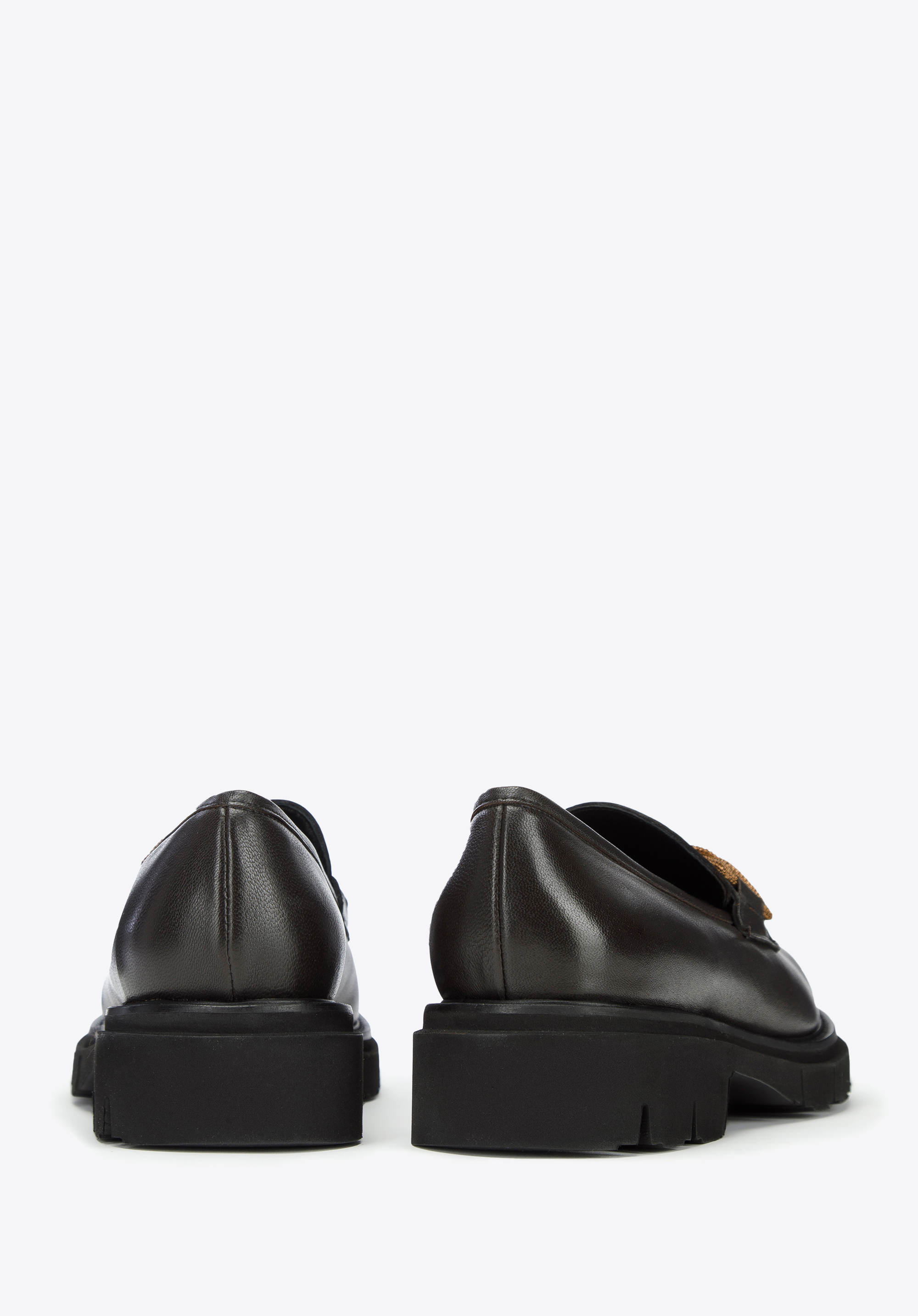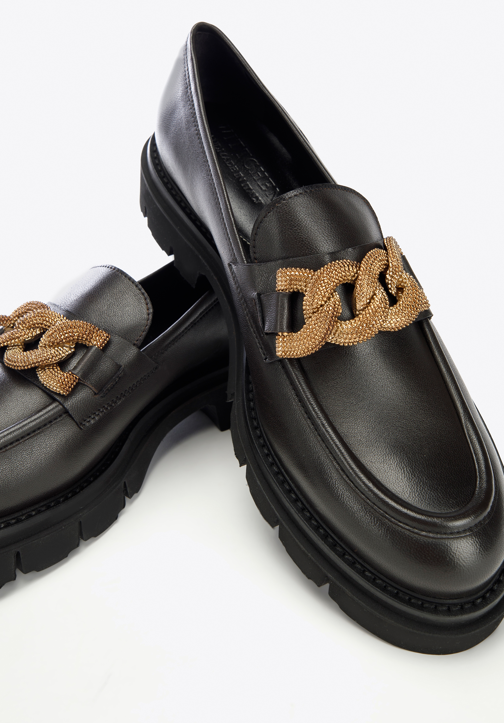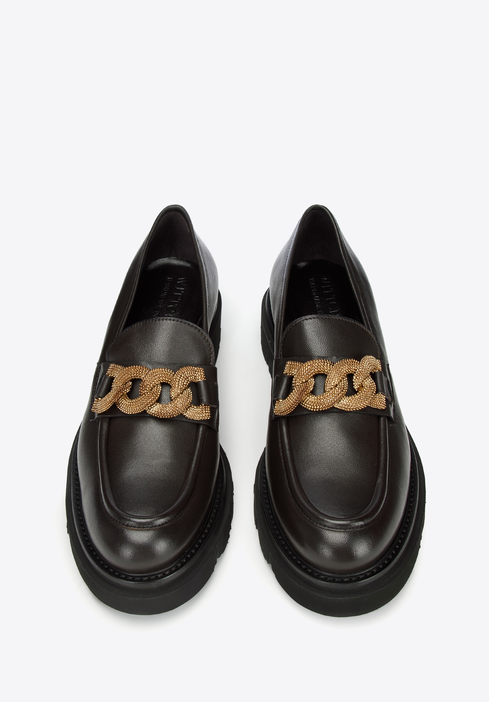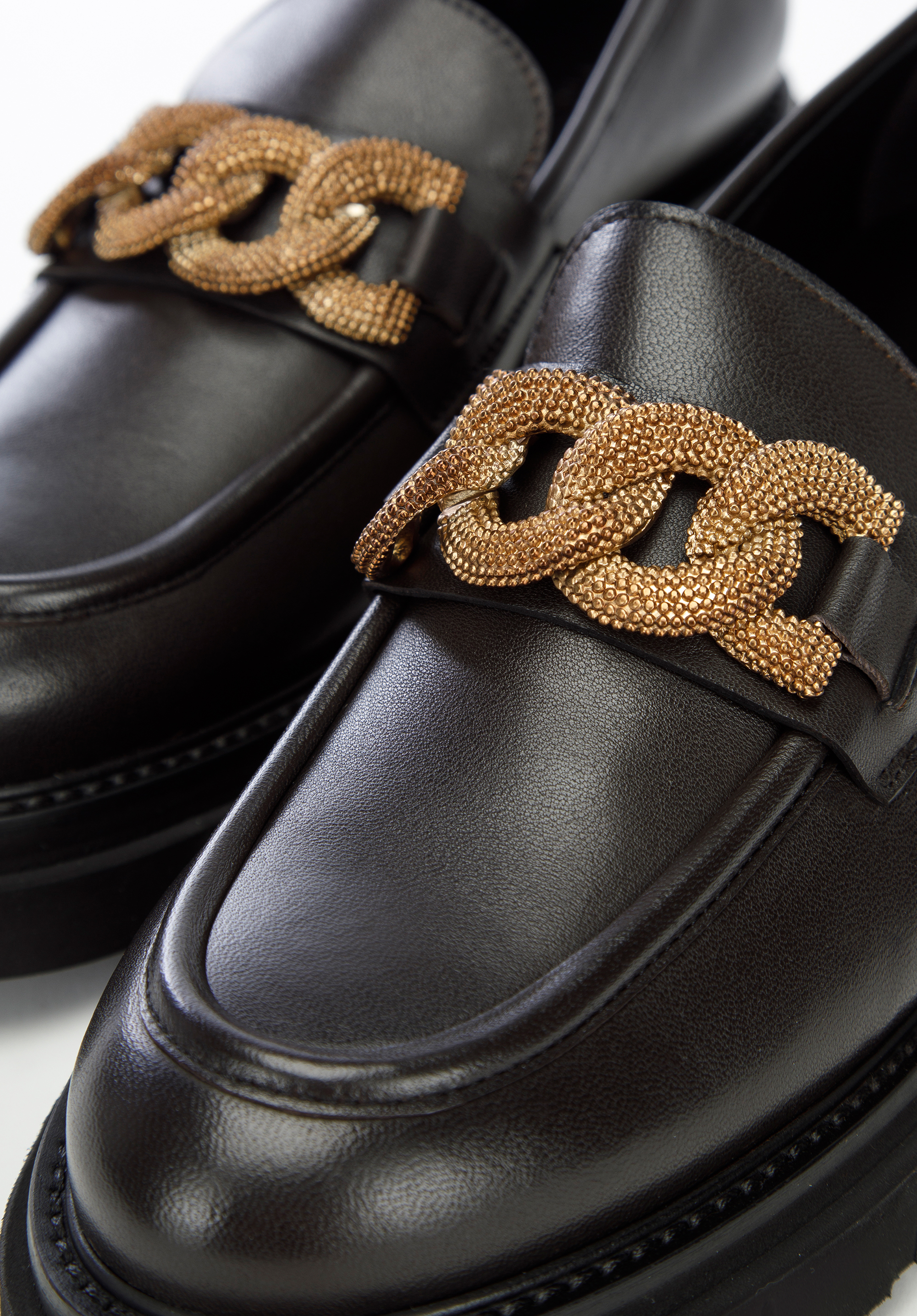 Dámské kožené mokasíny s ozdobným řetízkem na platformě