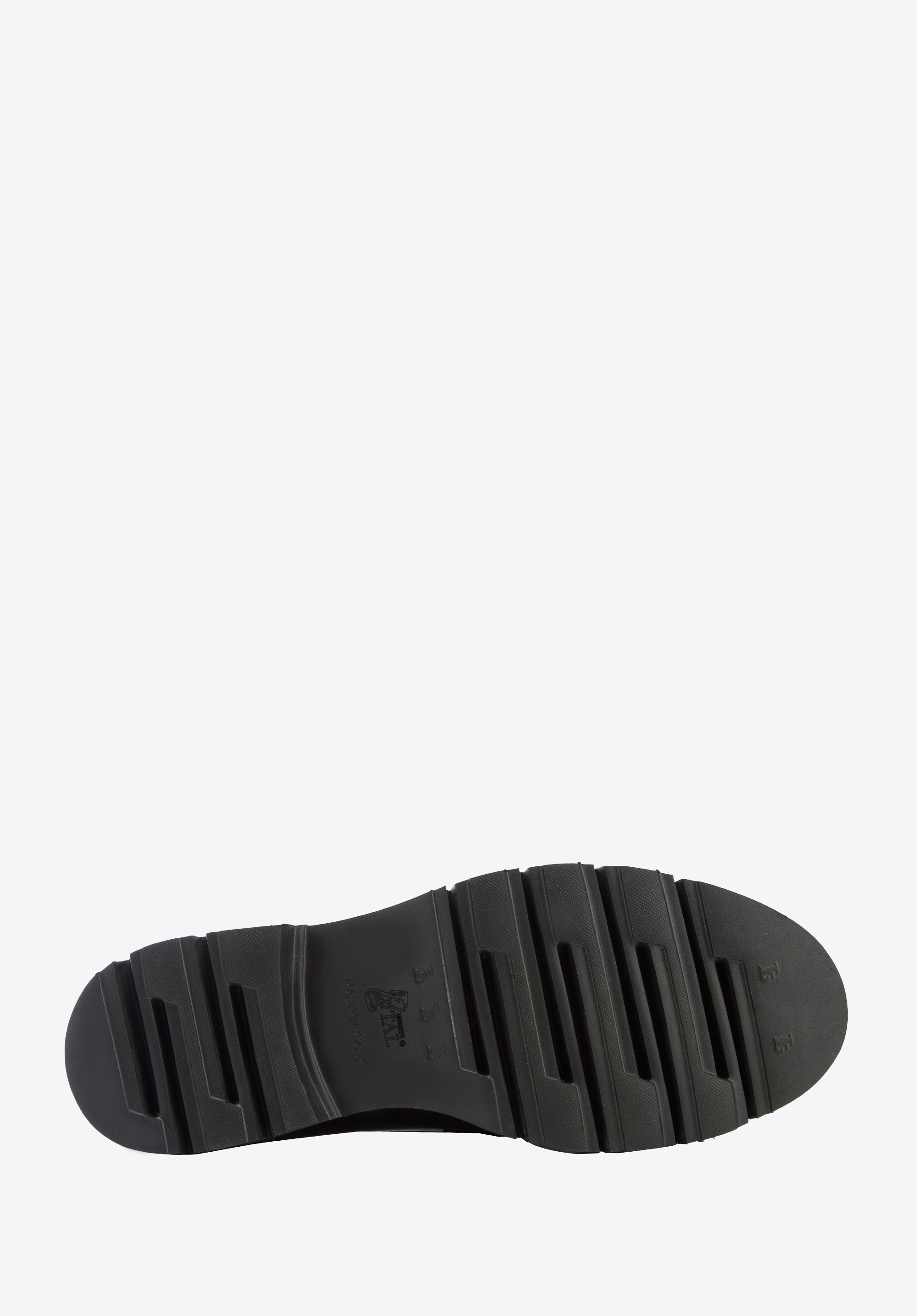 V těchto elegantních botách budete každý den přitahovat mnoho pozornosti. Klasický styl zdobí lesklý řetízek s originální texturou. Podešev na silné platformě zajistí pohodlnou chůzi po mnoho hodin. Boty jsou vyrobeny z kvalitní přírodní kůže. Zkombinujte je se svým oblíbeným dámským oblekem nebo noste je s košilí – budete vypadat stylově za každé situace. Dámské kožené boty s ozdobným řetízkem na platformě jsou klasikou s moderním nádechem, které stojí za to mít ve svém šatníku.