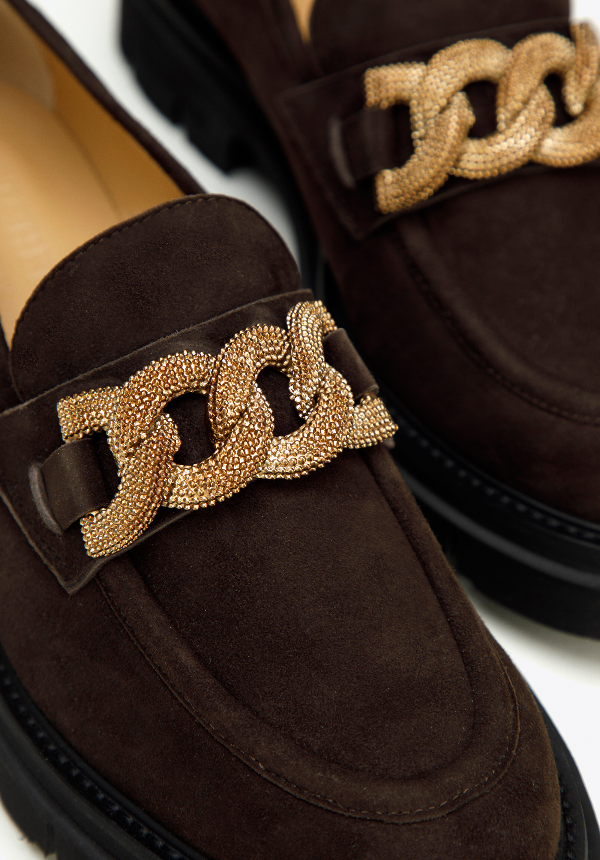 Dámské semišové boty s ozdobným řetízkem na platformě
