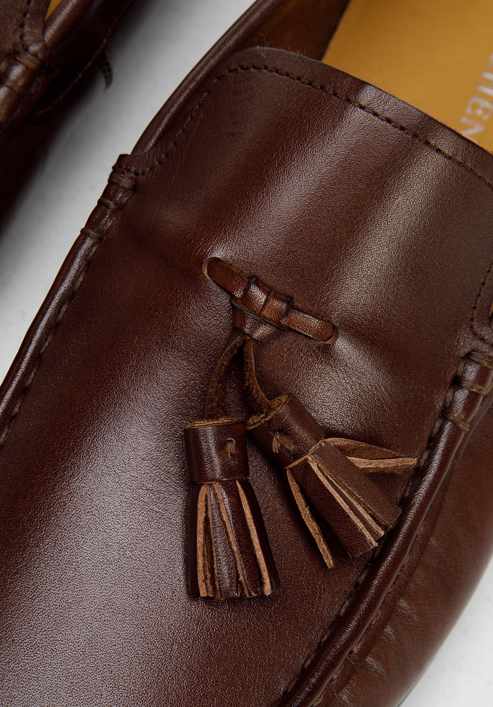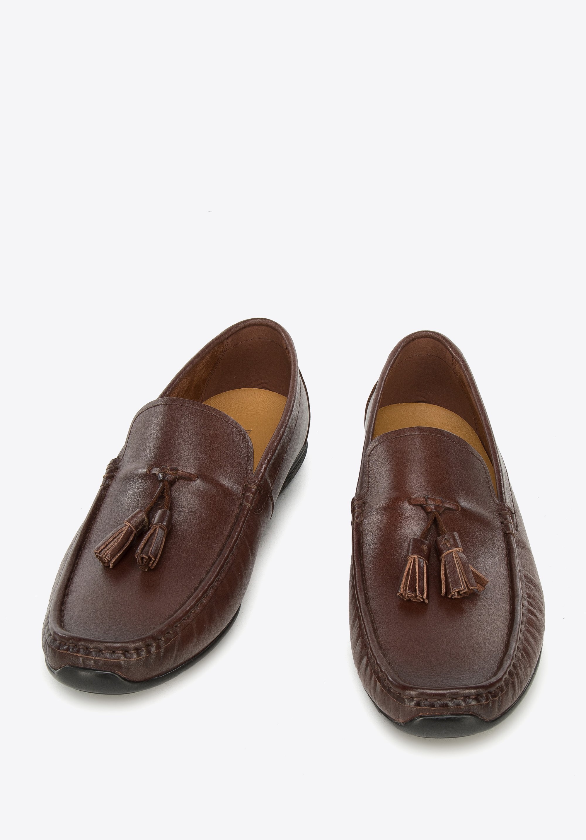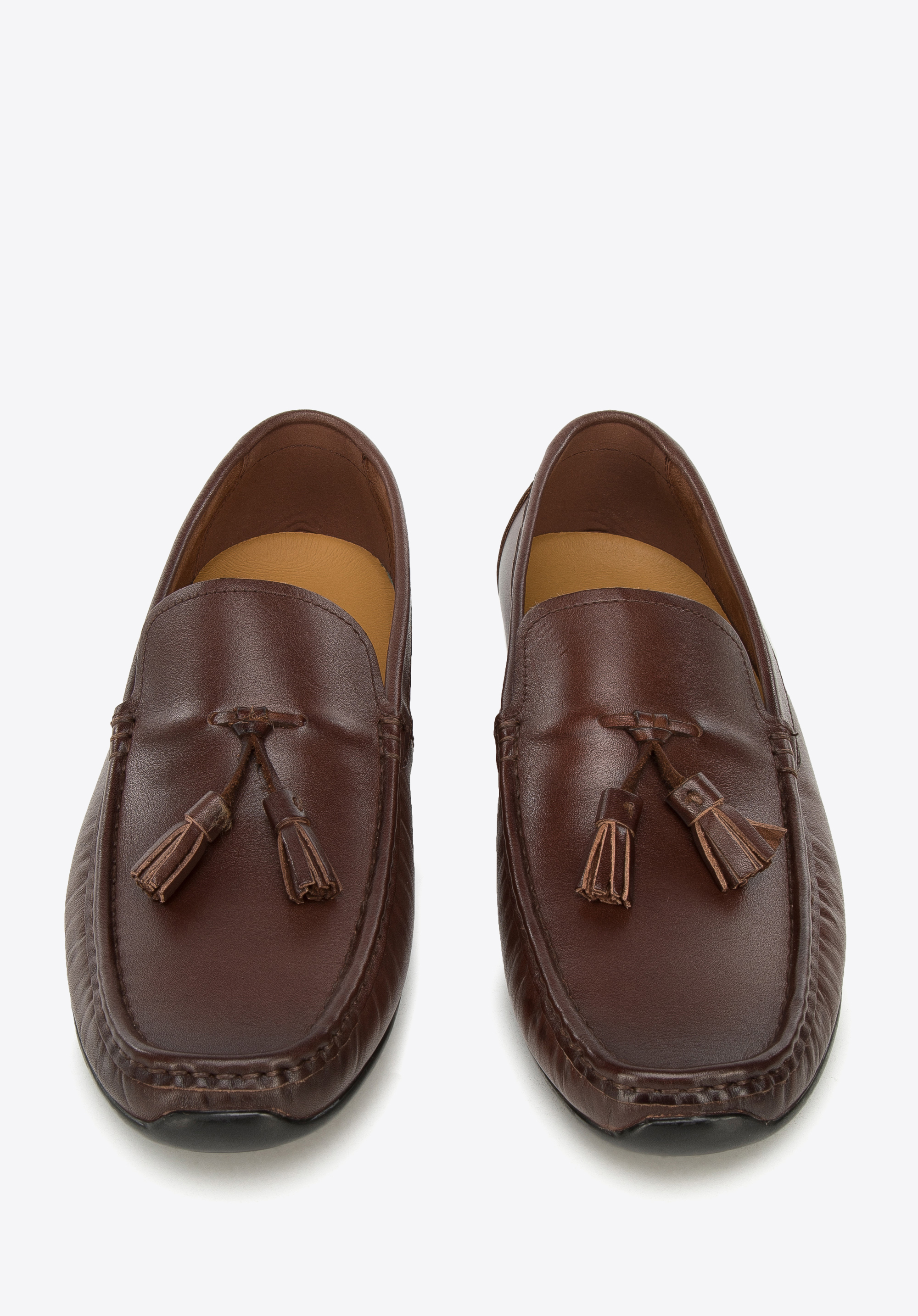 Tyto klasické mokasíny jsou nutnosti v šatníku každého elegantního může. Jsou vyrobeny z vysoce kvalitní přírodní kůže, která se dokonale přizpůsobí noze. Mají úhledný tvar a pružnou podrážku na spodní straně, která zajistí přilnavost v každé situaci. Jednoduchý střih bot se špičkou byl obohacen dvěma malými střapci, které dodávají jim charakter. Tento model je vhodný pro každodenní i elegantní oblečení. Pánské kožené mokasíny se střapci jsou stylové a doplní mnoho vašich obleku.