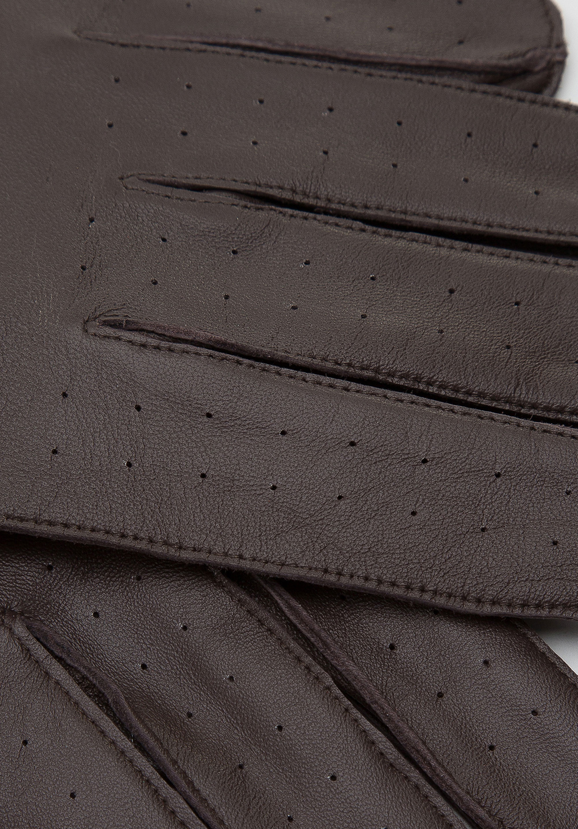 Tyto stylové rukavice budou perfektní pro muže, kteří mají rádi moderní doplňky. Jsou vyrobeny z kvalitní přírodní kůže, takže neztratí svůj tvar po mnoho sezón. Jedná se o krátký model se zapínáním na patentky na zápěstí. Ve spodní části mají všitou gumu, takže dobře padnou do ruky a snadno je obléknete. Perforace na prstech a otvory pro kotníky, charakteristické pro tento typ rukavic, dodají charakter každému vašemu stylu: jak klasické bundě, tak elegantnímu kabátu. Pánské kožené autorukavice jsou nadčasovým doplňkem, který zpestří váš šatník na jaře a na podzim i v teplejších dnech zimy.