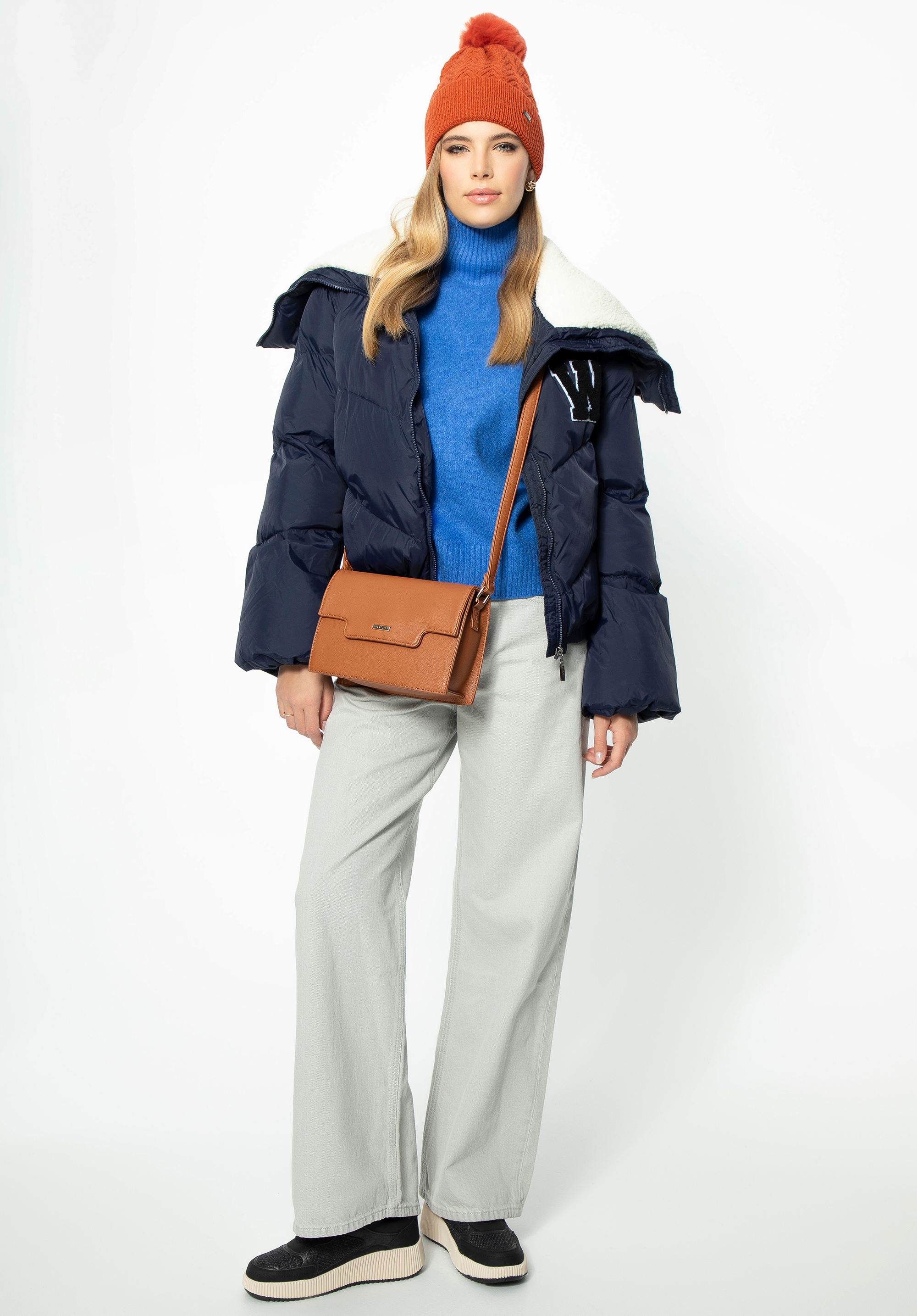 Tuto dámskou bundu osloví milovnice módních doplňků. Střih s širokými rukávy obohatí každý oblek. Velký límec podšitý ekologickou ovčí kůží a vyšívané písmeno "W" dodává celku jedinečný charakter. Tento model je poměrně krátký a má ve spodní části všitou šňůrku. Noste ji se svými oblíbenými teniskami – budete vypadat stylově za každé situace. Dámská bunda bude se hodit během chladnějších měsíců a dodá vašemu šatníku nový styl.