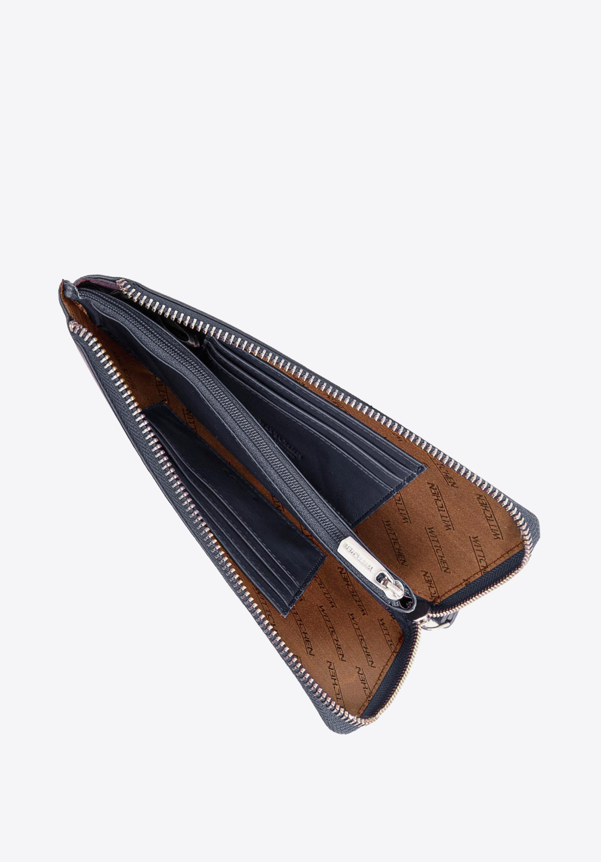 Tento elegantní doplněk můžete také pohodlně zavěsit na zapěstí. Uvnitř najdete sloty na karty a velkou kapsu na zip. Do této peněženky můžete dat telefon, pokud chcete rychle opustit dům a nemáte čas na dlouhé přípravy. Je vybavená inovativním obložením, které blokuje možnost vzdáleného skenování dat z karty nebo jiného dokumentu vybaveného v RFID čipy.