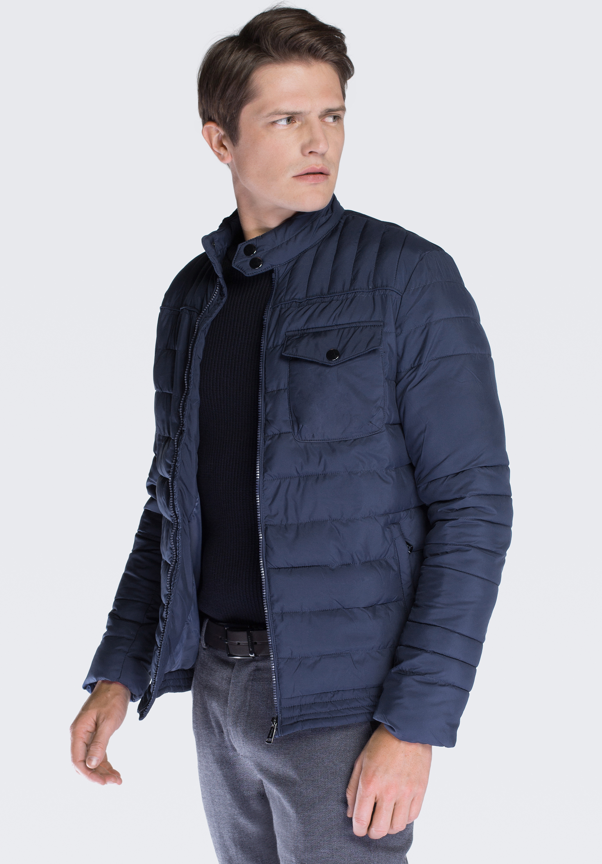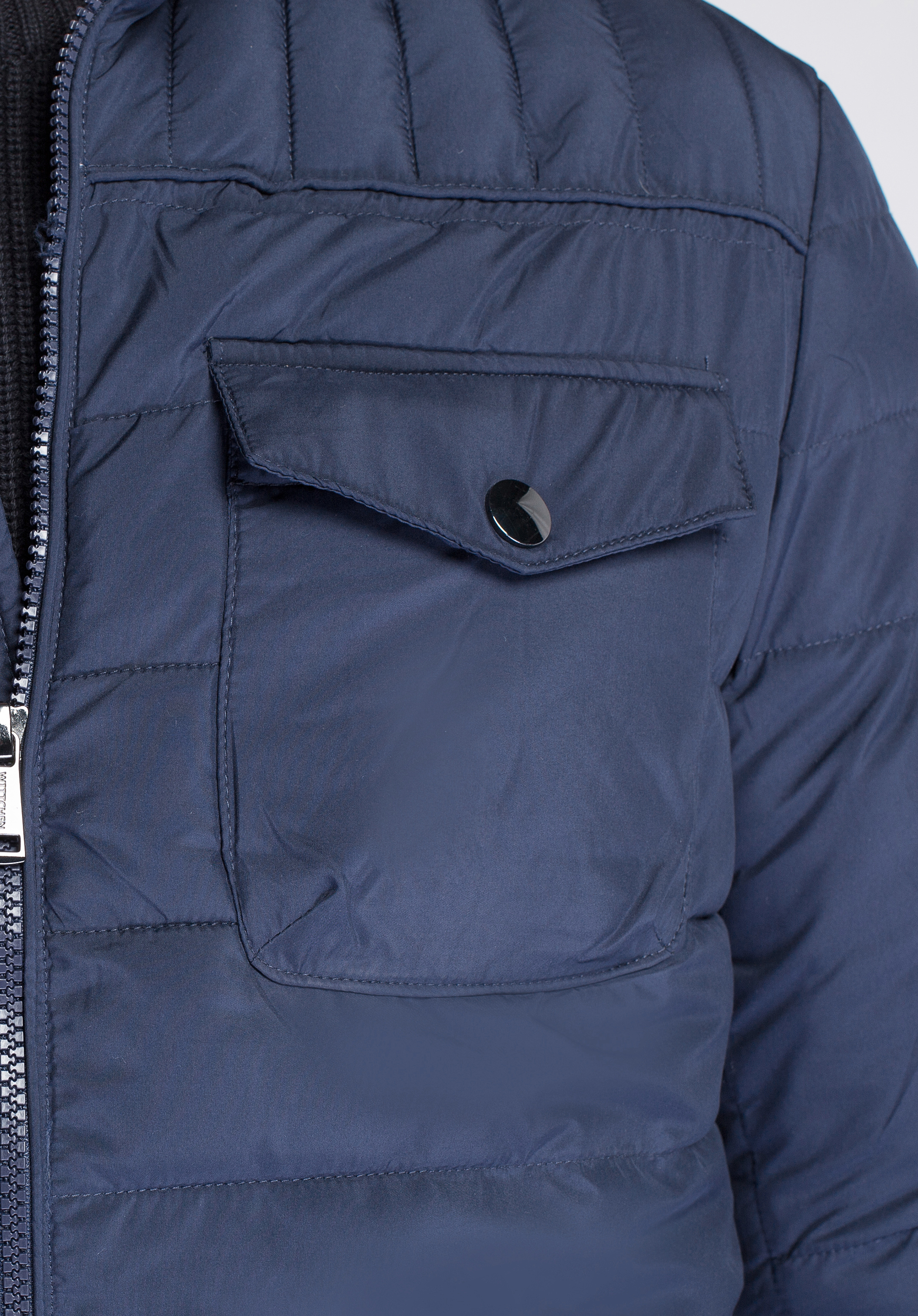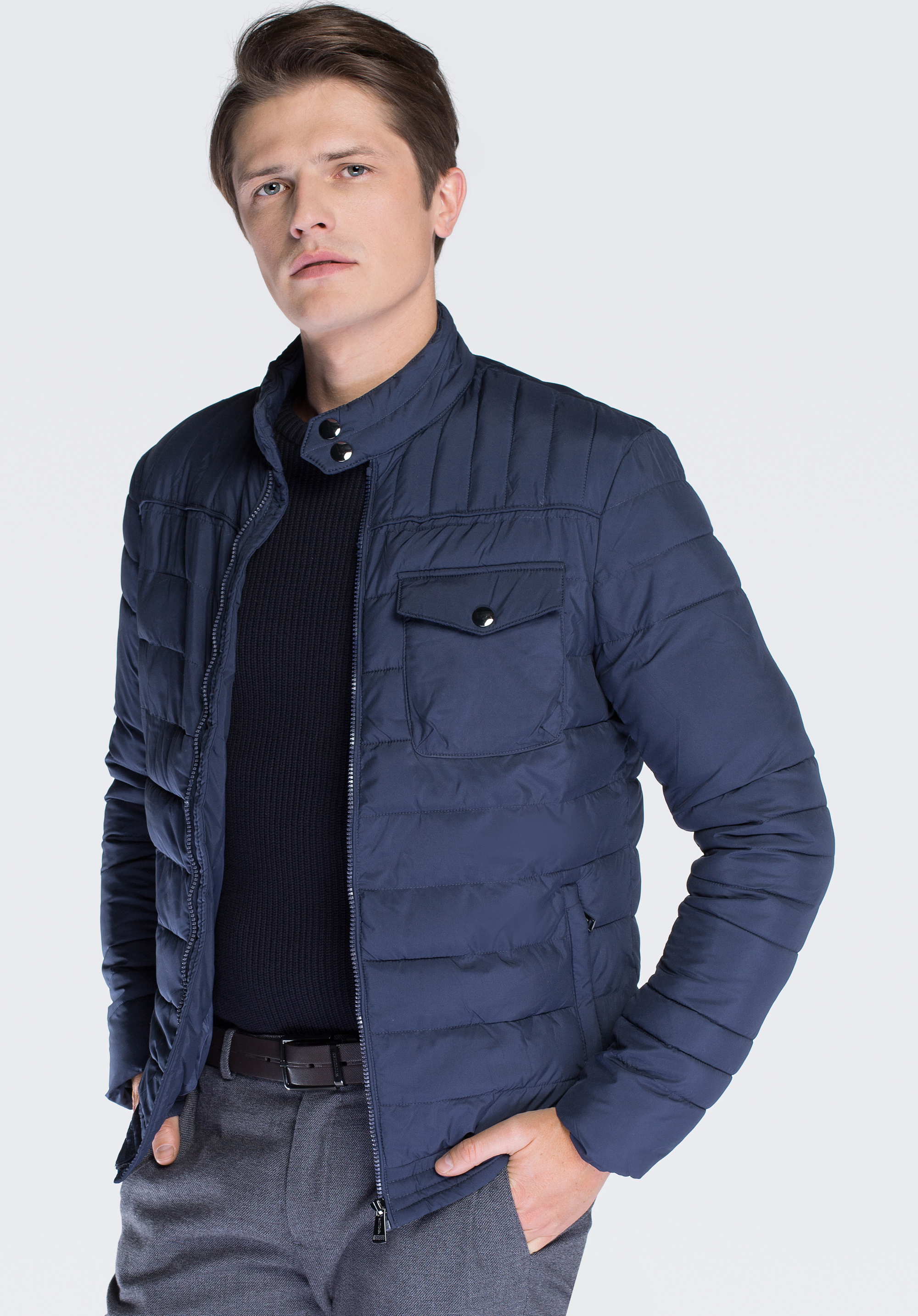 Prošívaná podzimní bunda ve dvou univerzálních barvách: tmavě modré a černé . Bunda je navržená podle současných módních trendů, prošívaná bunda v minimalistickém stylu. Lehká bunda s mnoha kapsami a praktickým zapínáním na druky, ideální pro každodenní nošení.