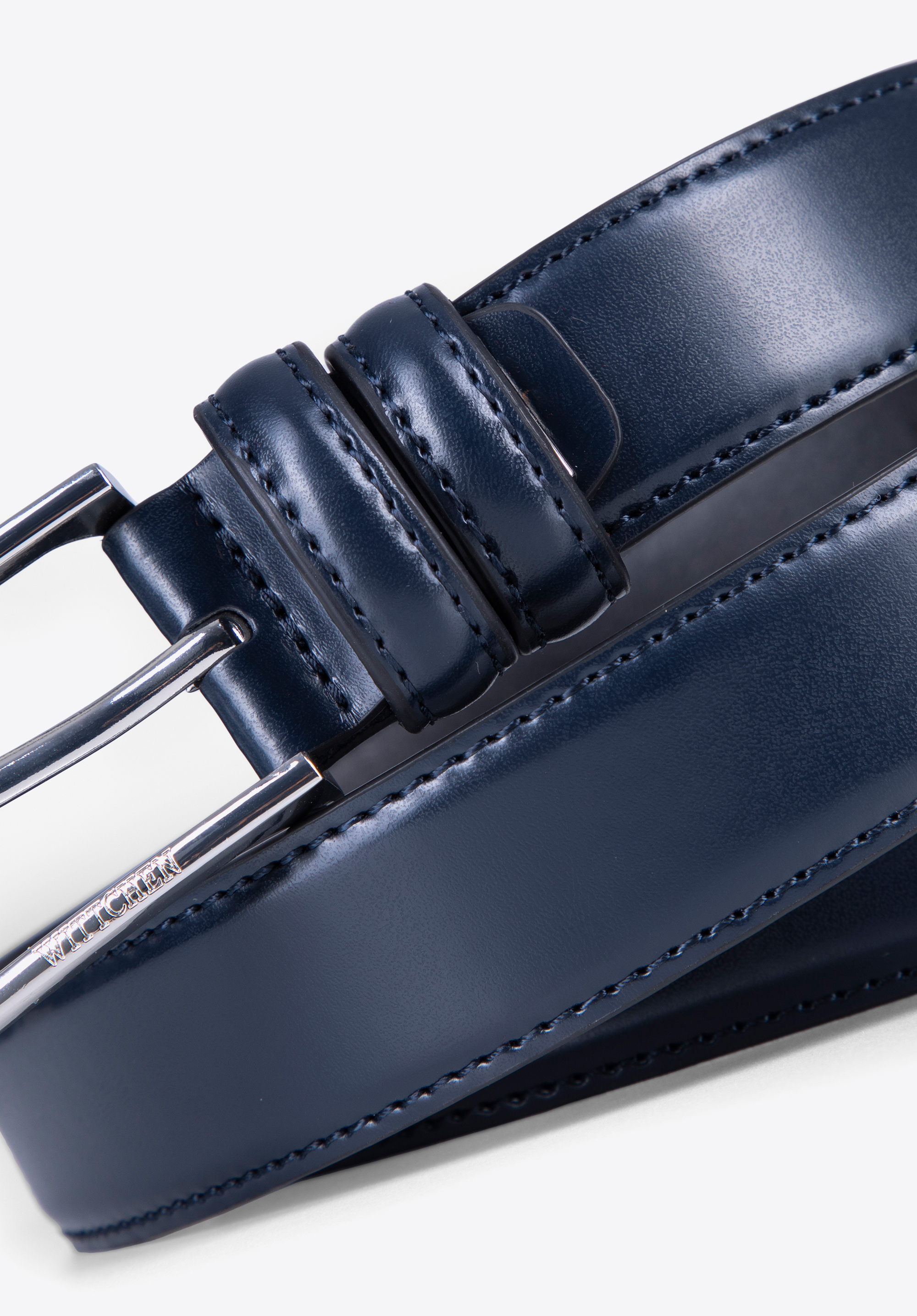 Tento klasický pánský pásek bude nadčasovým doplňkem každého muže. Je vyrobena z vysoce kvalitní přírodní kůže. Je poměrně úzký. Okraje jsou zakončené prošíváním a dodávají mu jedinečný charakter. Doplňuje ho lesklá klasická spona s nápisem WITTCHEN. Noste ho každý den, do práce i po ní - stylově doplní váš oblek za každé situace. Úzký pánský kožený pásek je volbou na mnoho sezón a stojí za to ho mít ve svém šatníku.