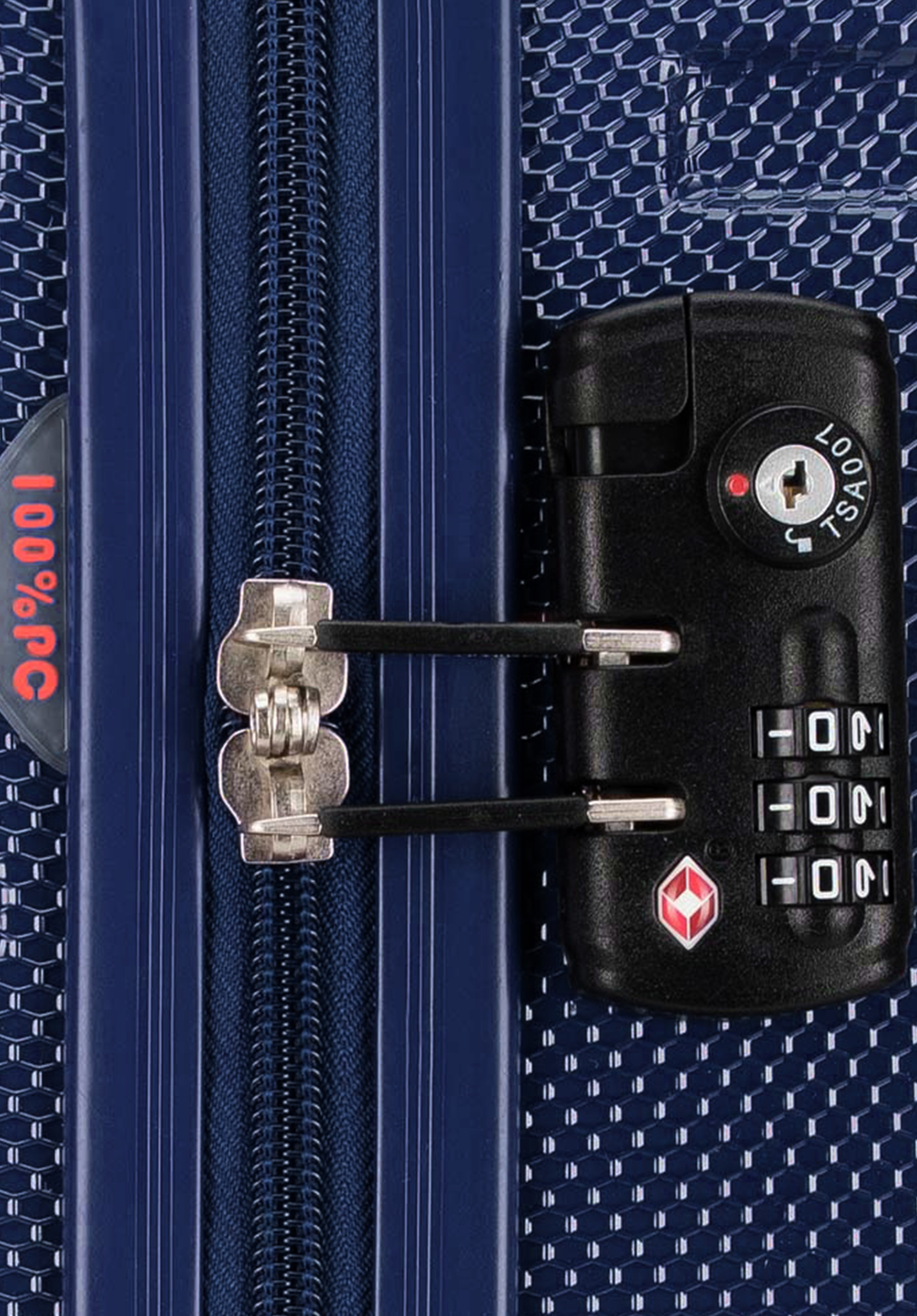- vybaven pevným zámkem TSA pro bezpečné mezinárodní cestování - zámek TSA zabraňuje nechtěnému otevření, ale také umožňuje úřadům otevřít zavazadlo bez zničení zámku;