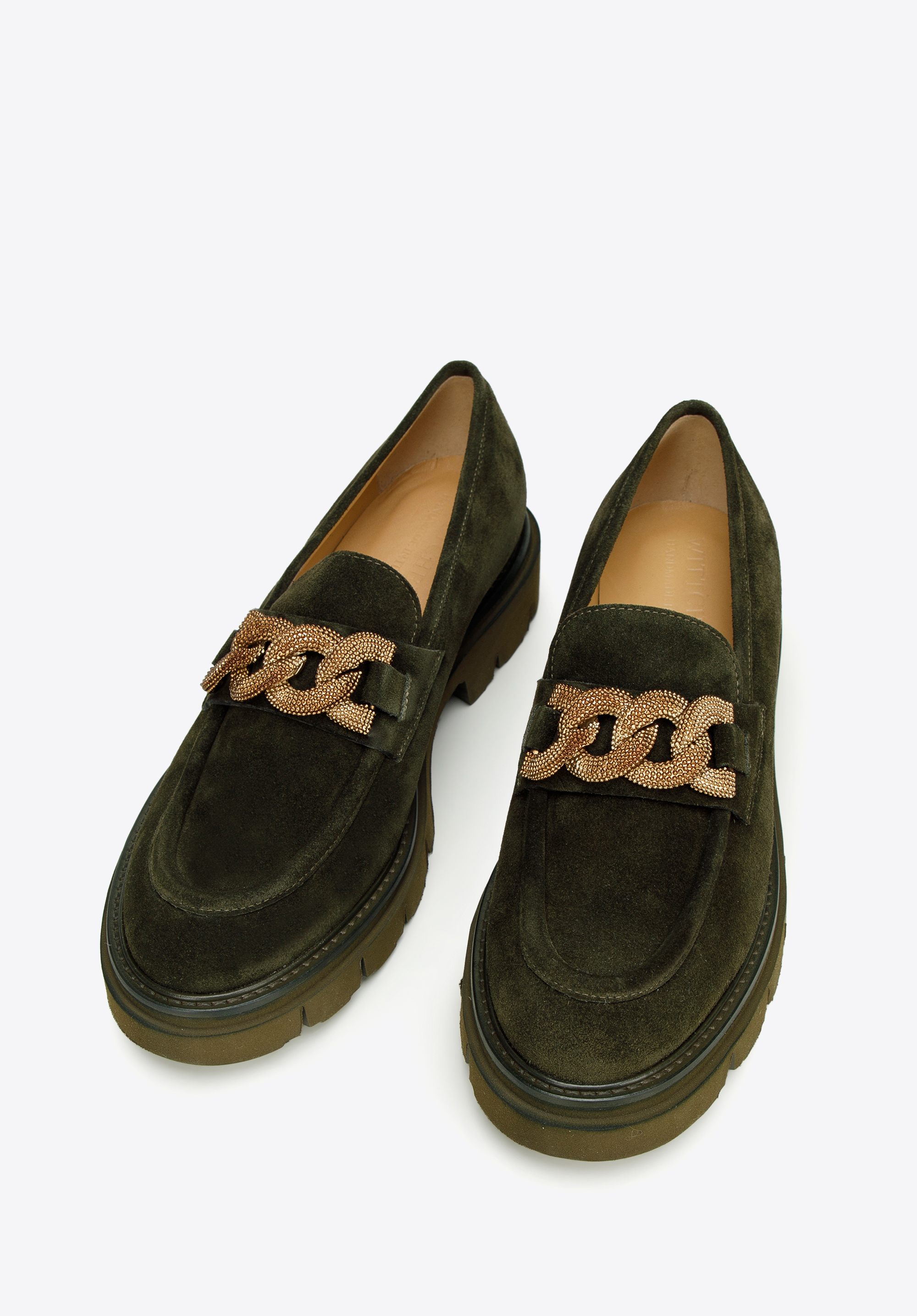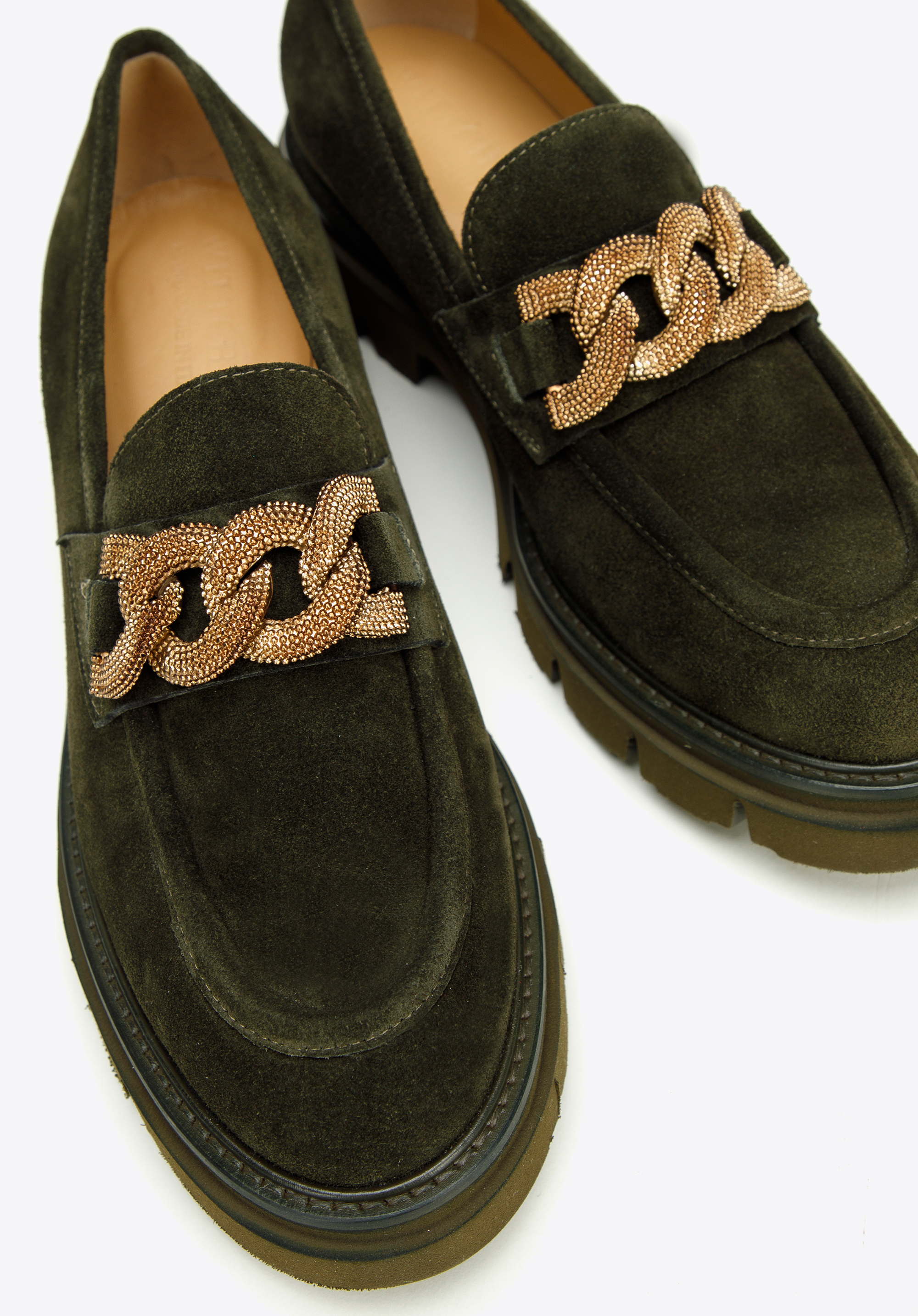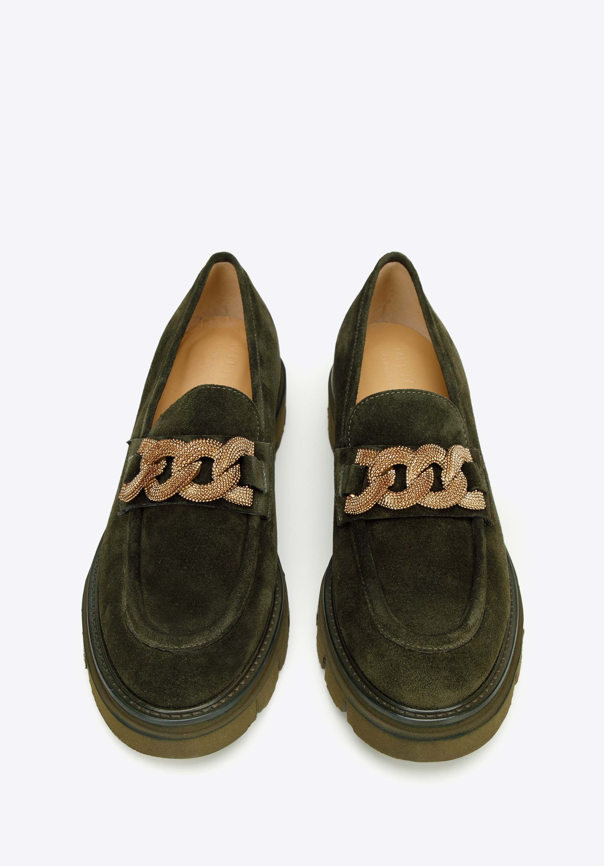 Dámské semišové boty s ozdobným řetízkem na platformě