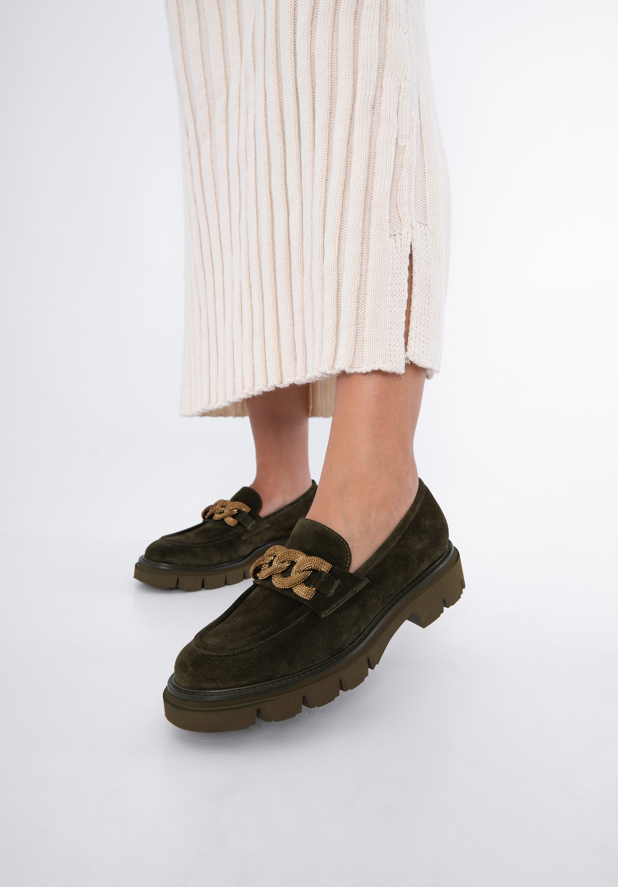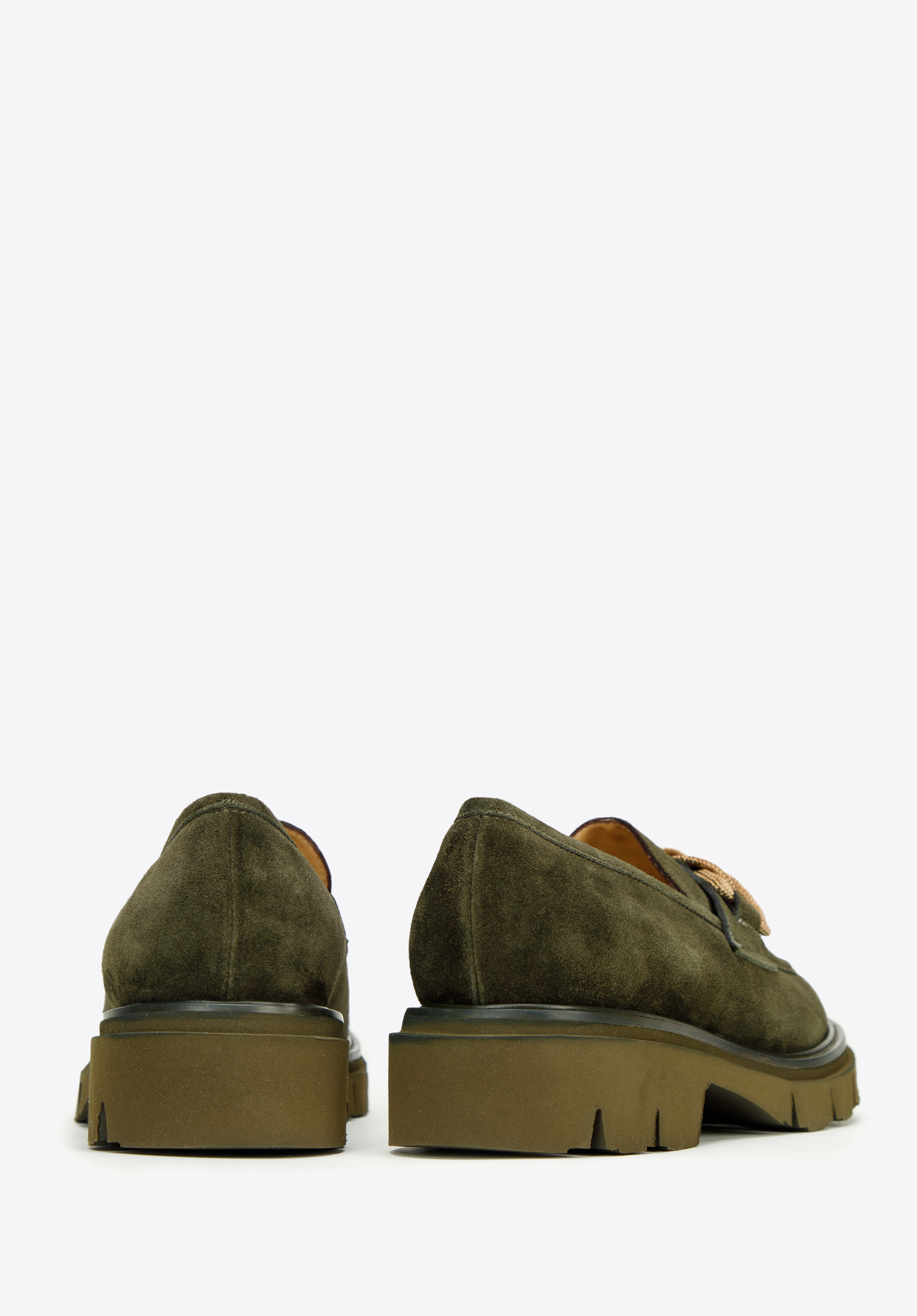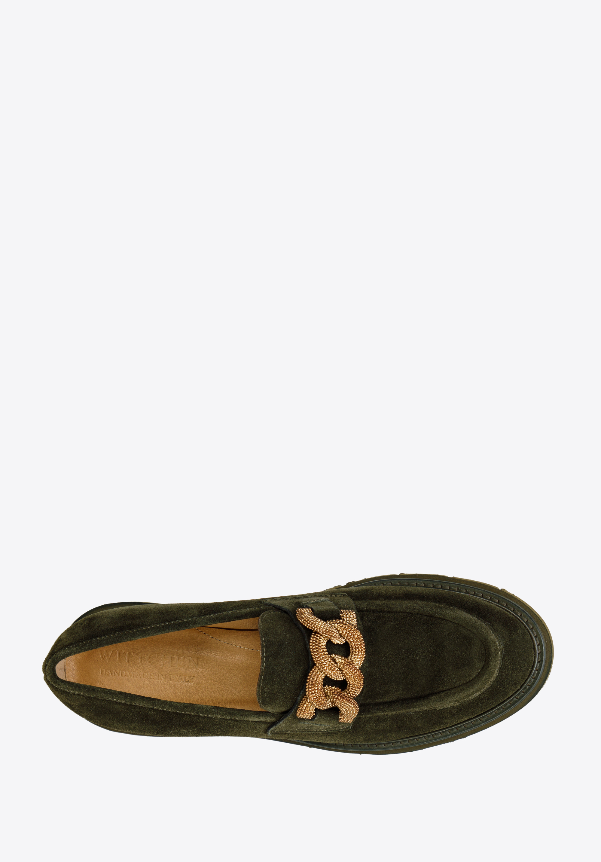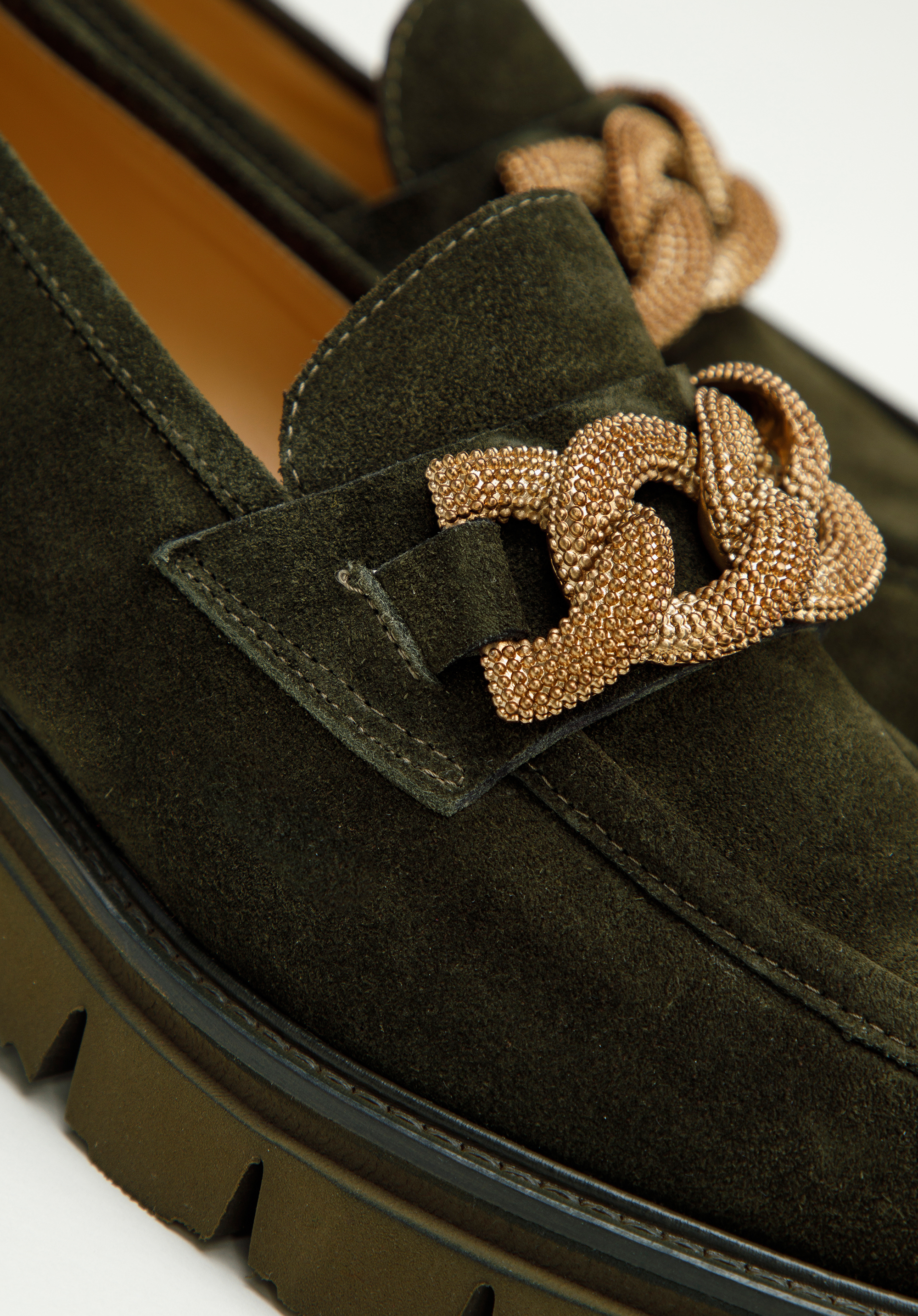 Dámské semišové boty s ozdobným řetízkem na platformě
