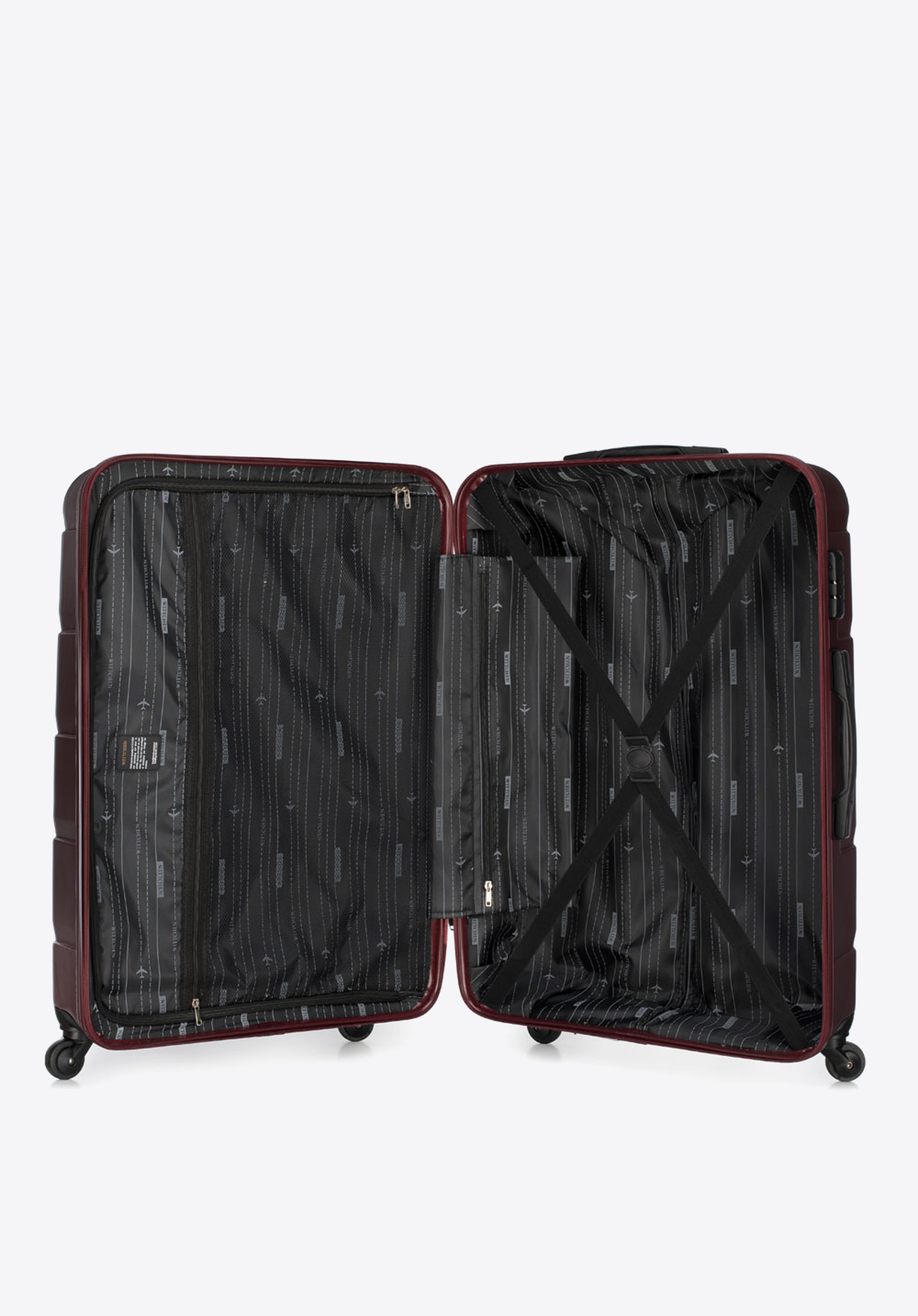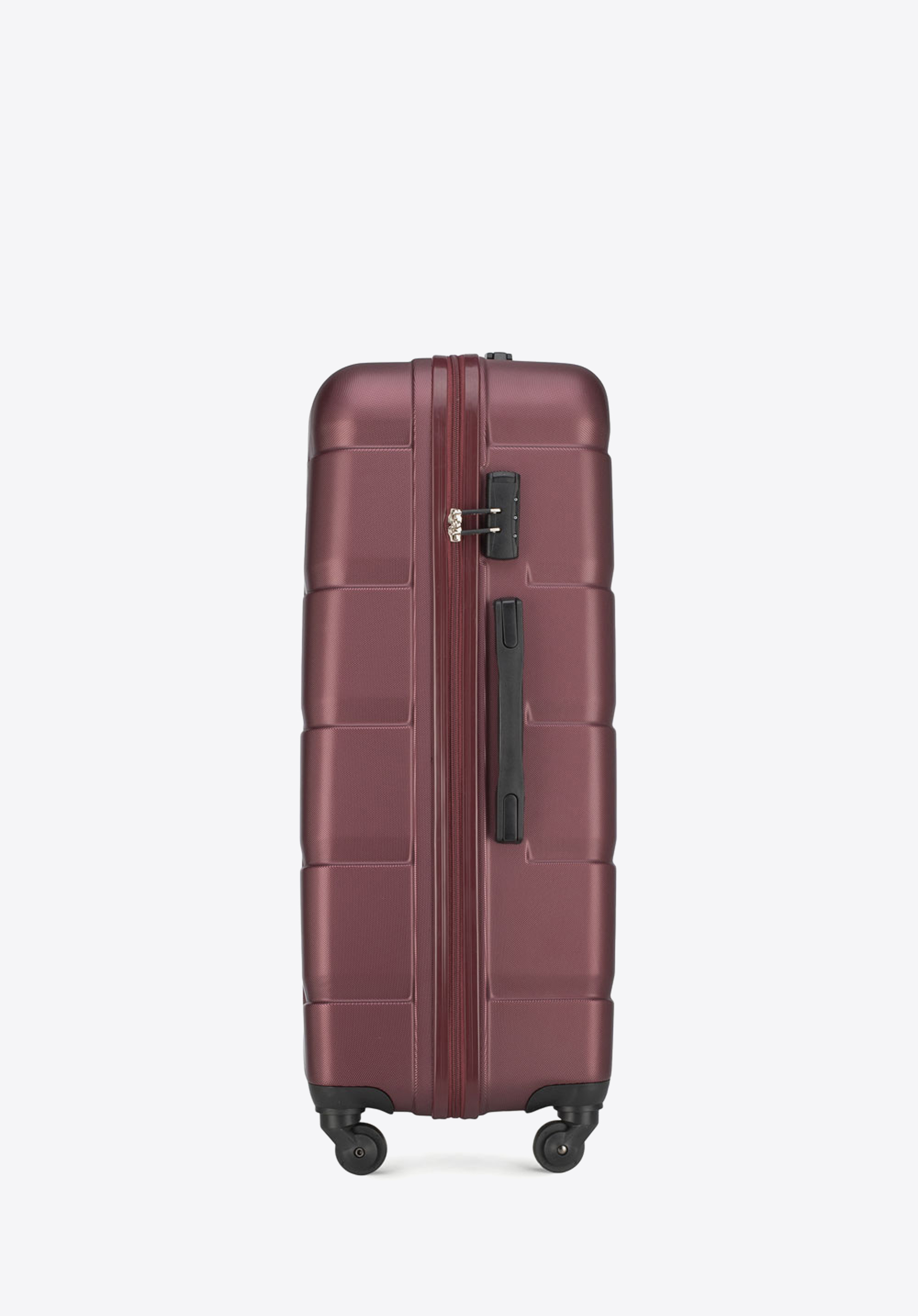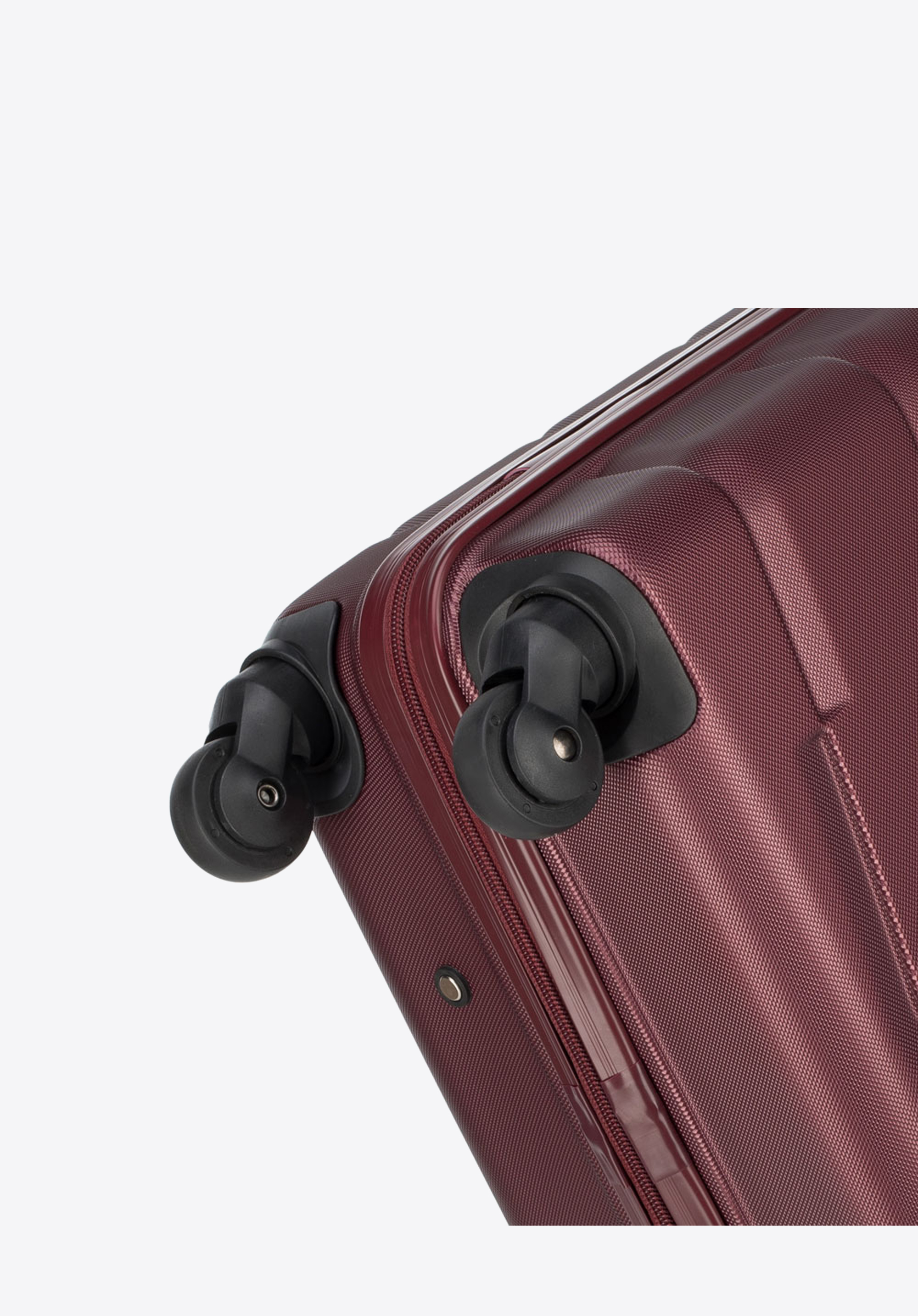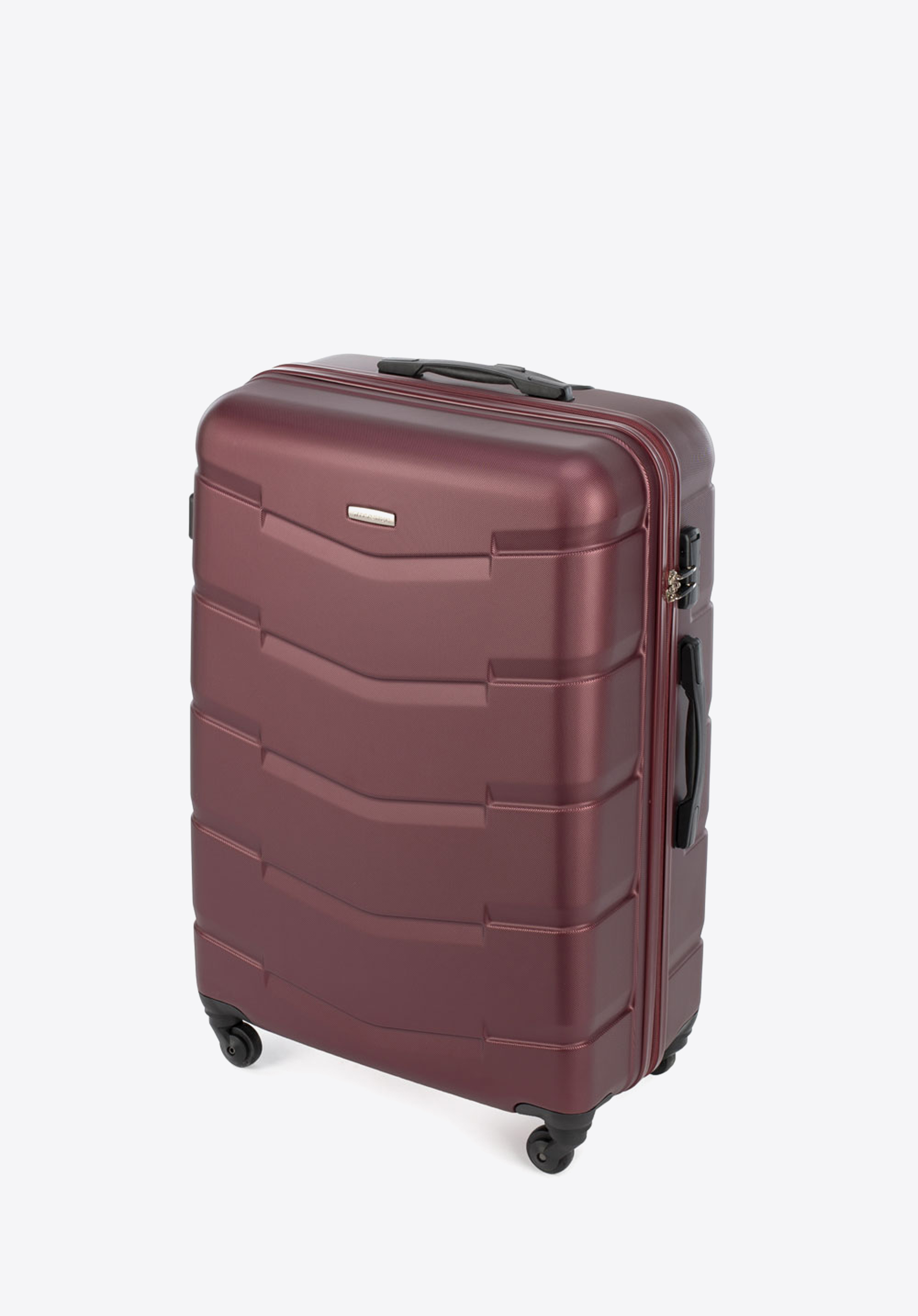 Velký kufr z materiálu ABS , který zaručuje dokonalou ochranu vašich cestovních věcí. Tato zavazadla jsou k dispozici v základních barvách: červená, černá, tmavě modrá, zelená, stejně jako ve více unikátních odstínech: šampaňské , cihlově červené a vínové . Tento velký oblek je vyroben z materiálu odolného proti poškrábání a je ideální pro časté cestovatele.