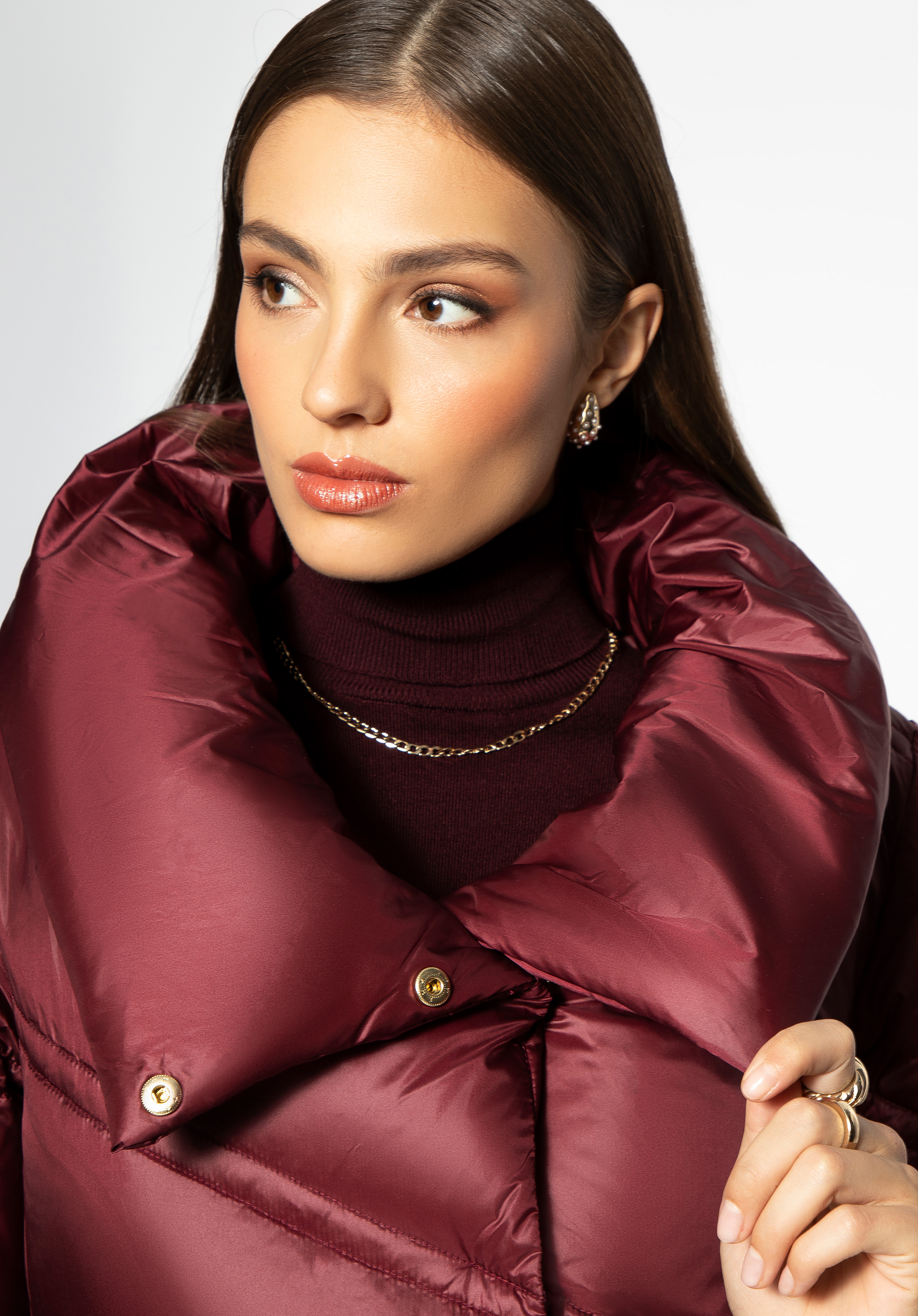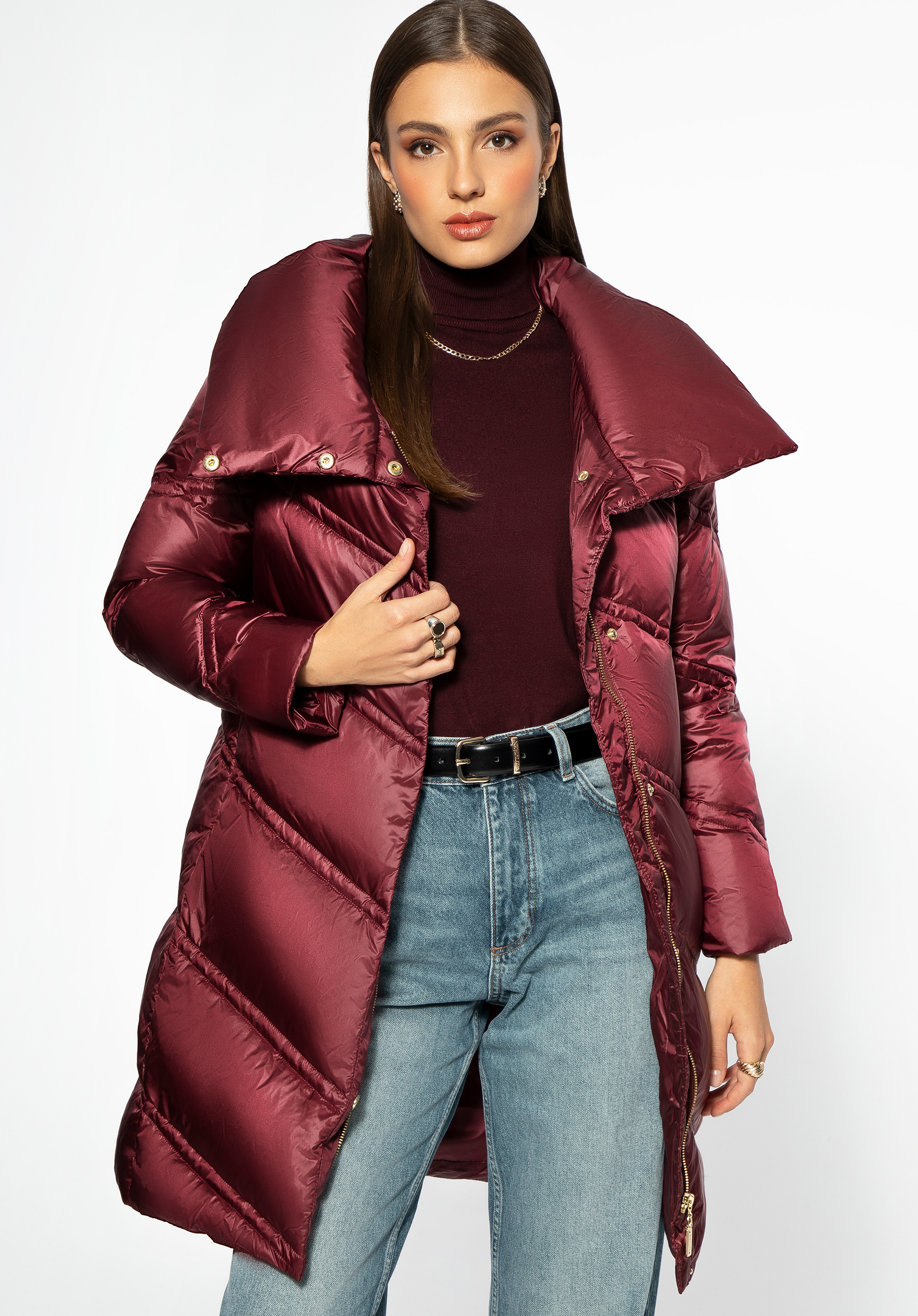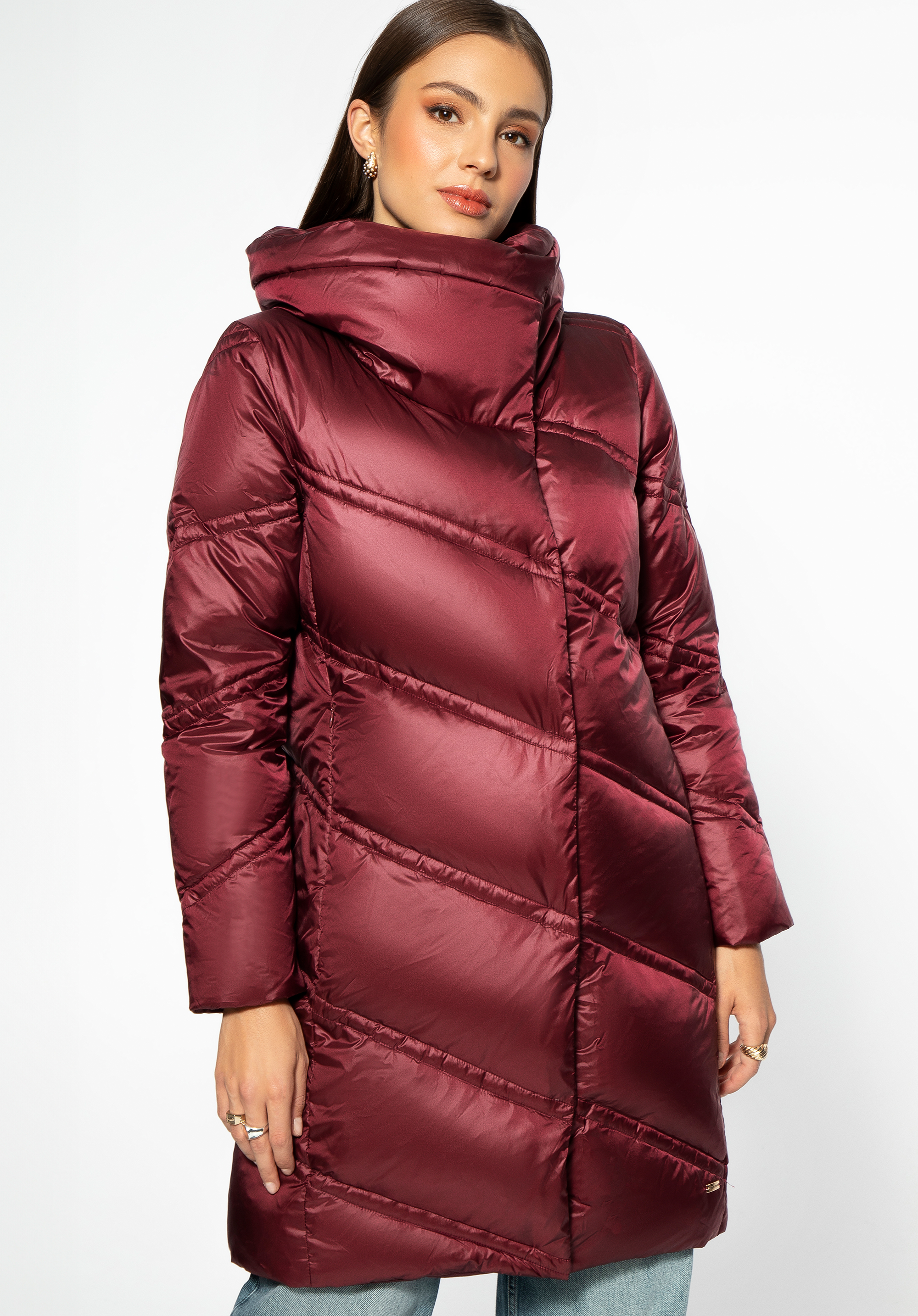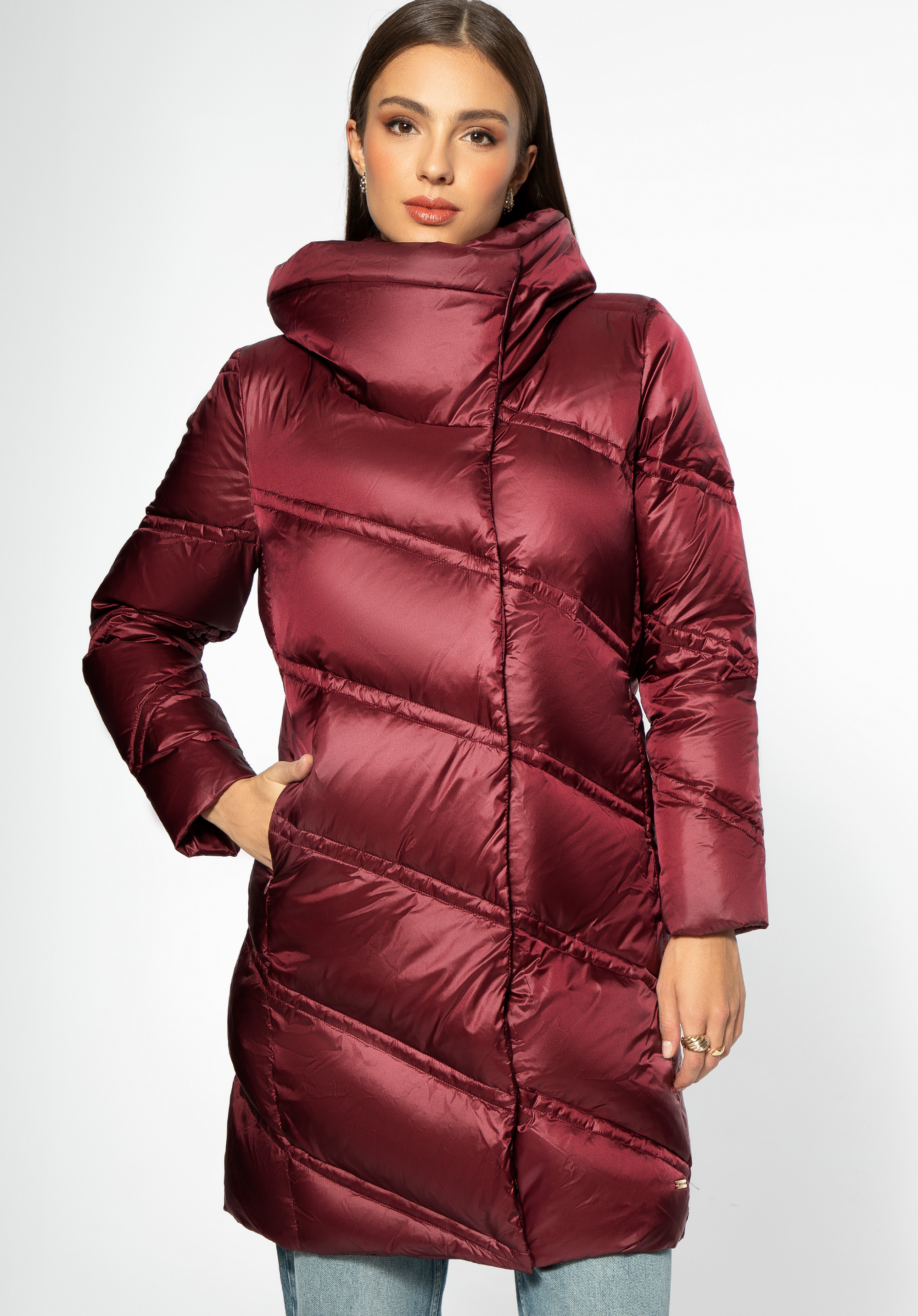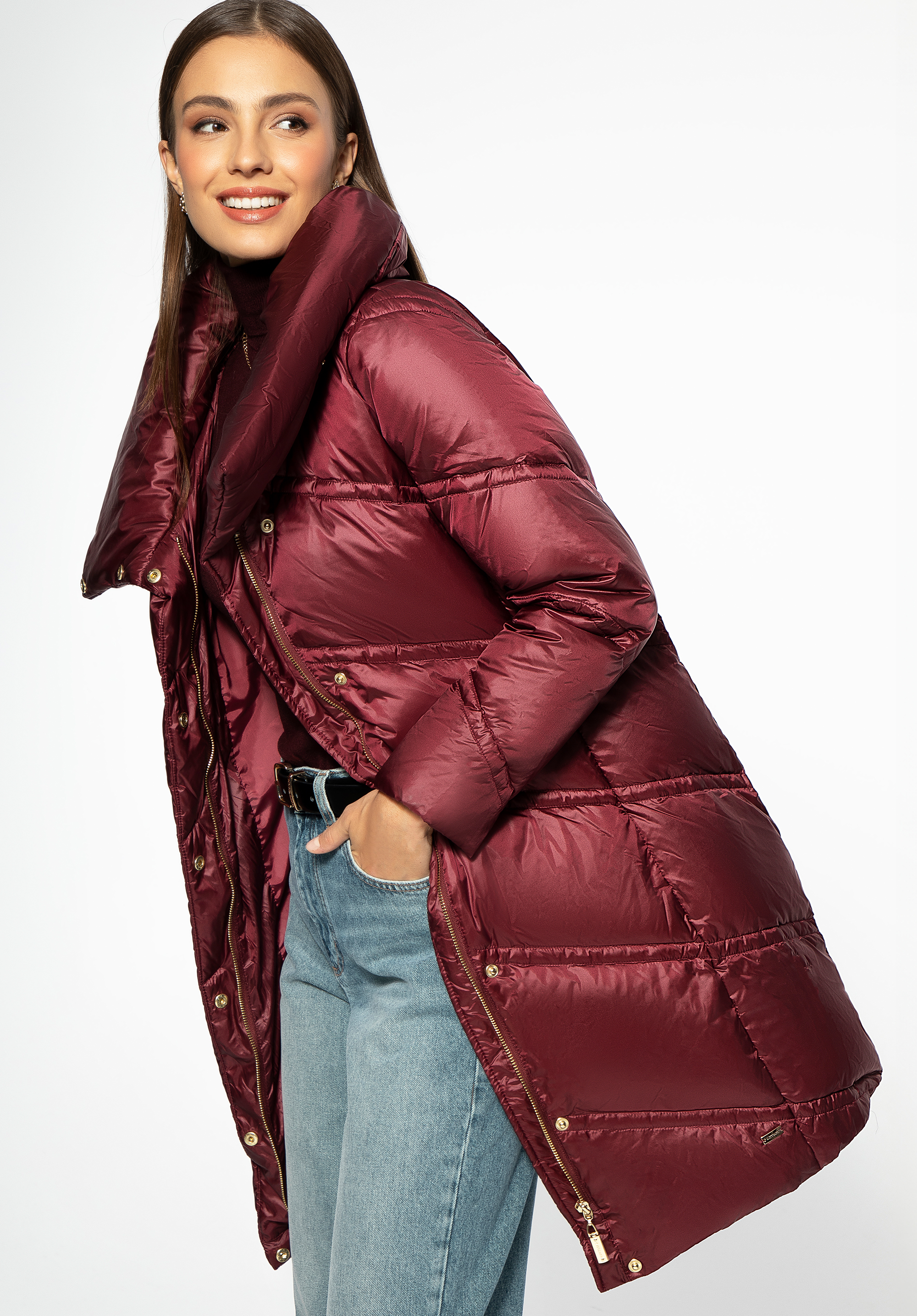 Tato péřová bunda uvnitř je vyplněna prachovým peřím s přídavkem peří proti hrudkování. Taková směs dokonale izoluje proti chladu. Ještě tepleji bude, když si nasadíte vysoký límec. Všimněte si také lehkého lesku, vysoce kvalitního nylonu a poutavého prošívání, které dodává bundě styl. Boční kapsy jsou skvělým místem pro schování rukou. Tato dámská péřová bunda s vysokým límcem zahalí vás do chladných měsíců.