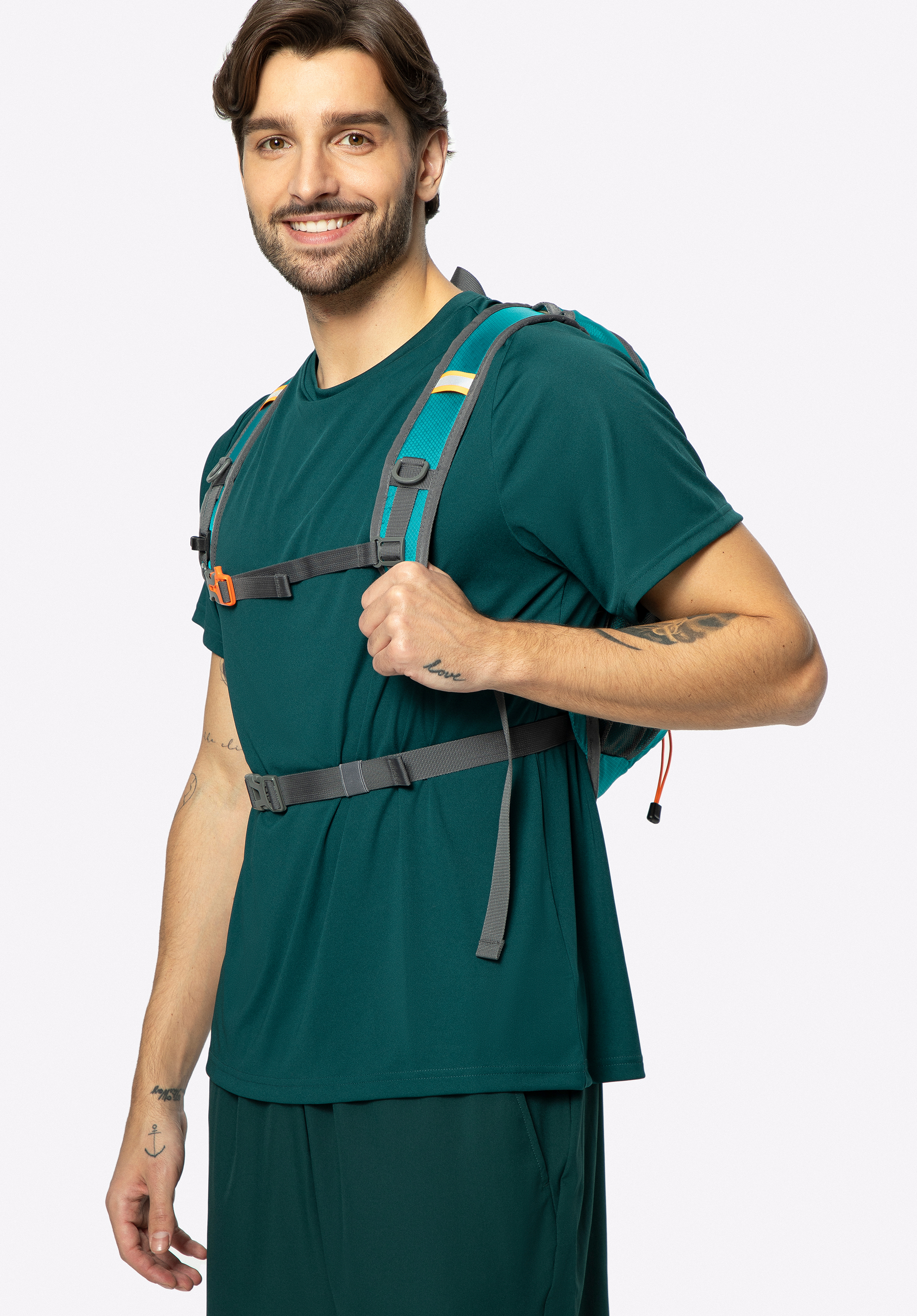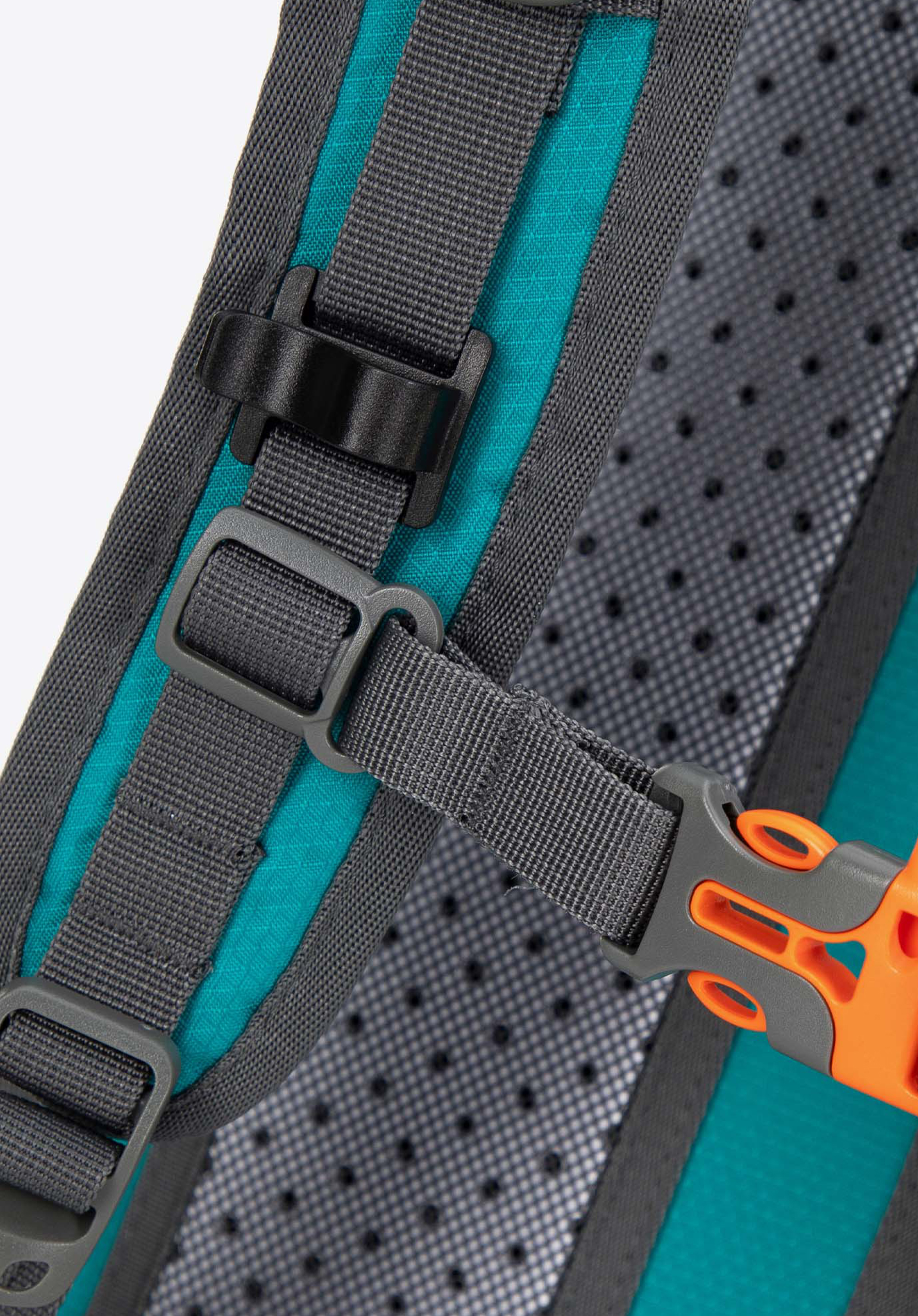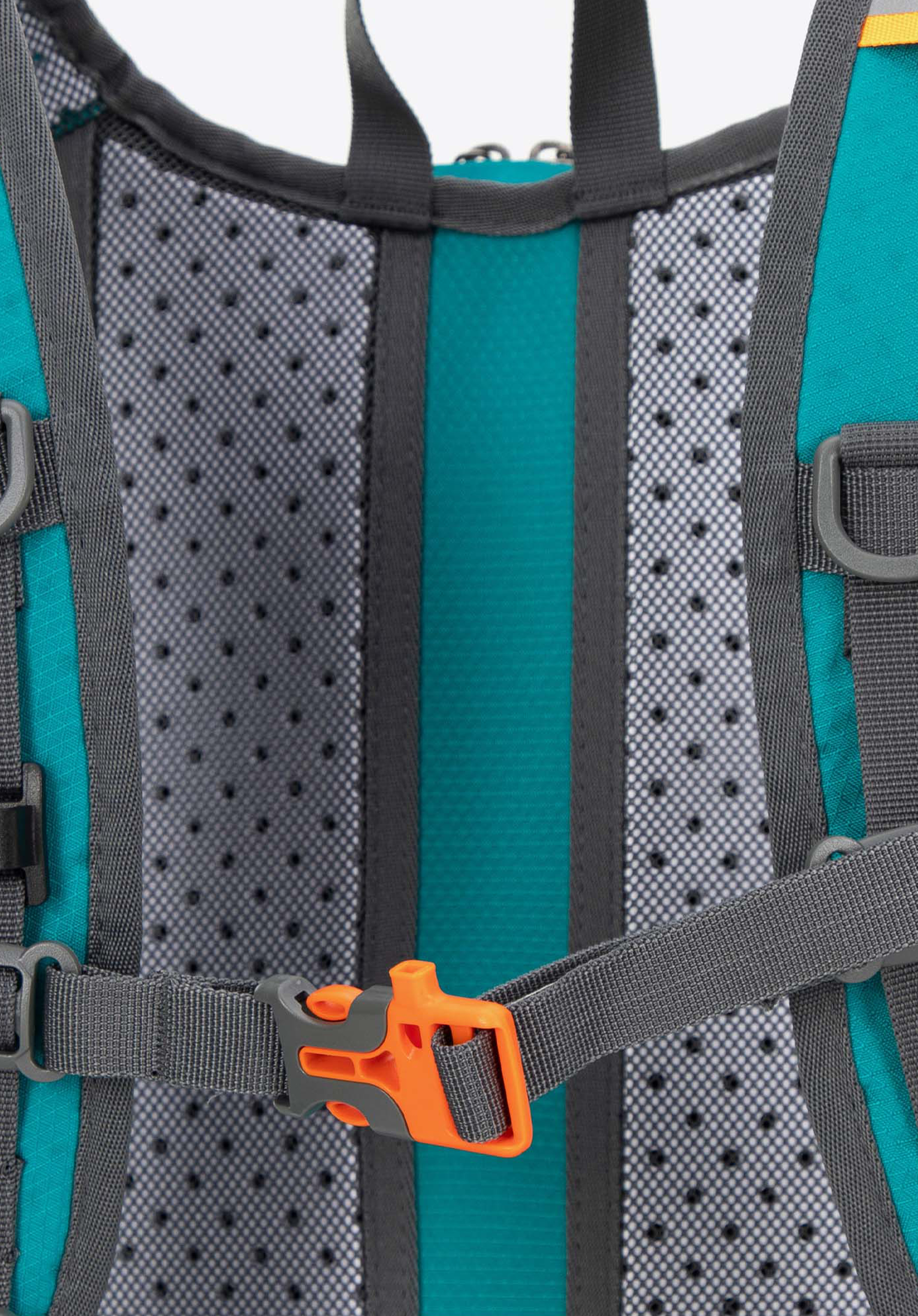 - Nastavitelný hrudní popruh stabilizuje batoh a zabraňuje jeho pohybu a bederní pás odlehčuje zádům a bokům a poskytuje větší pohodlí při dlouhých túrách a cyklistice.