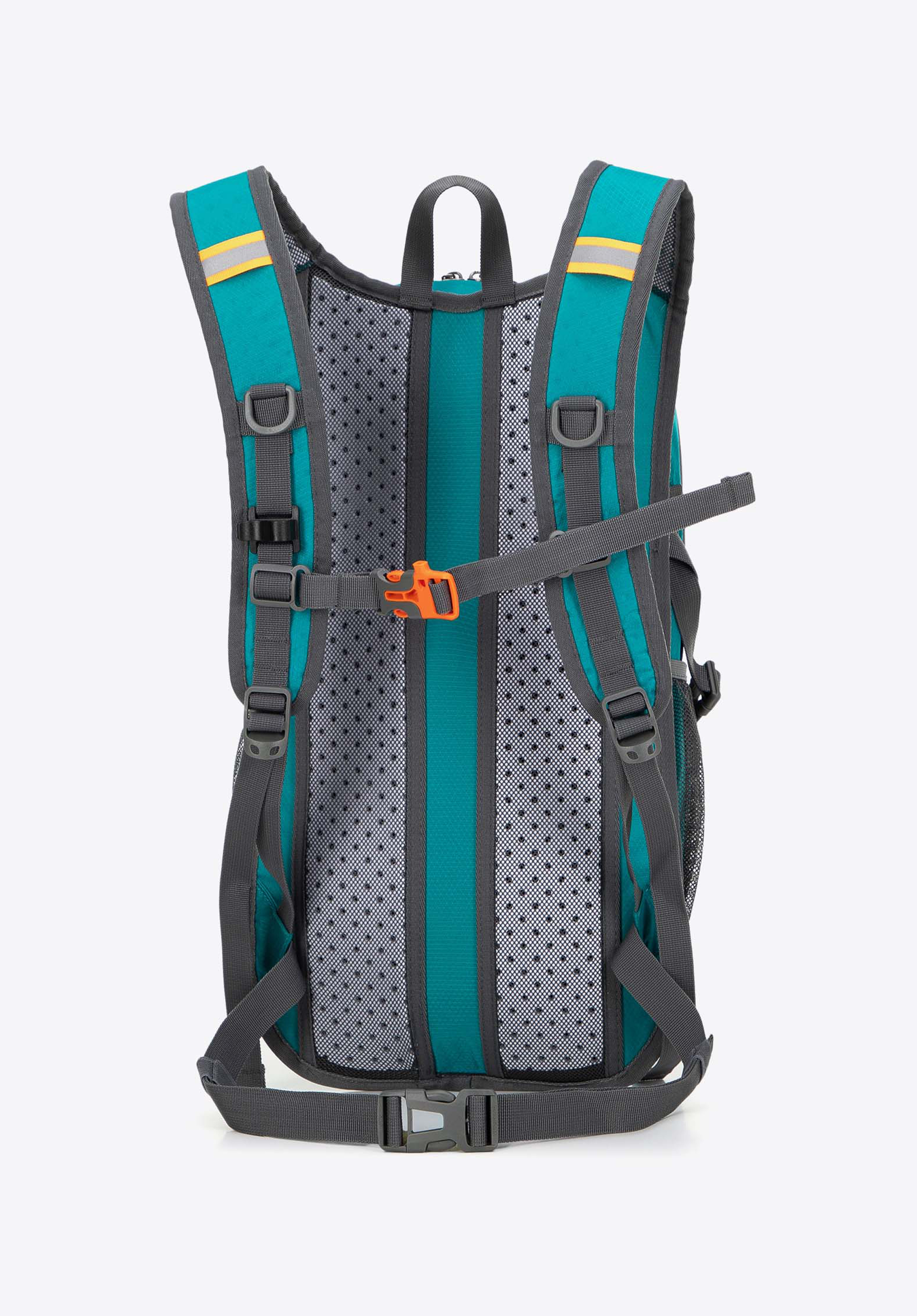 - Dvě boční síťované kapsy: Ideální pro láhve s vodou, poskytující snadný přístup k hydrataci při turistice.