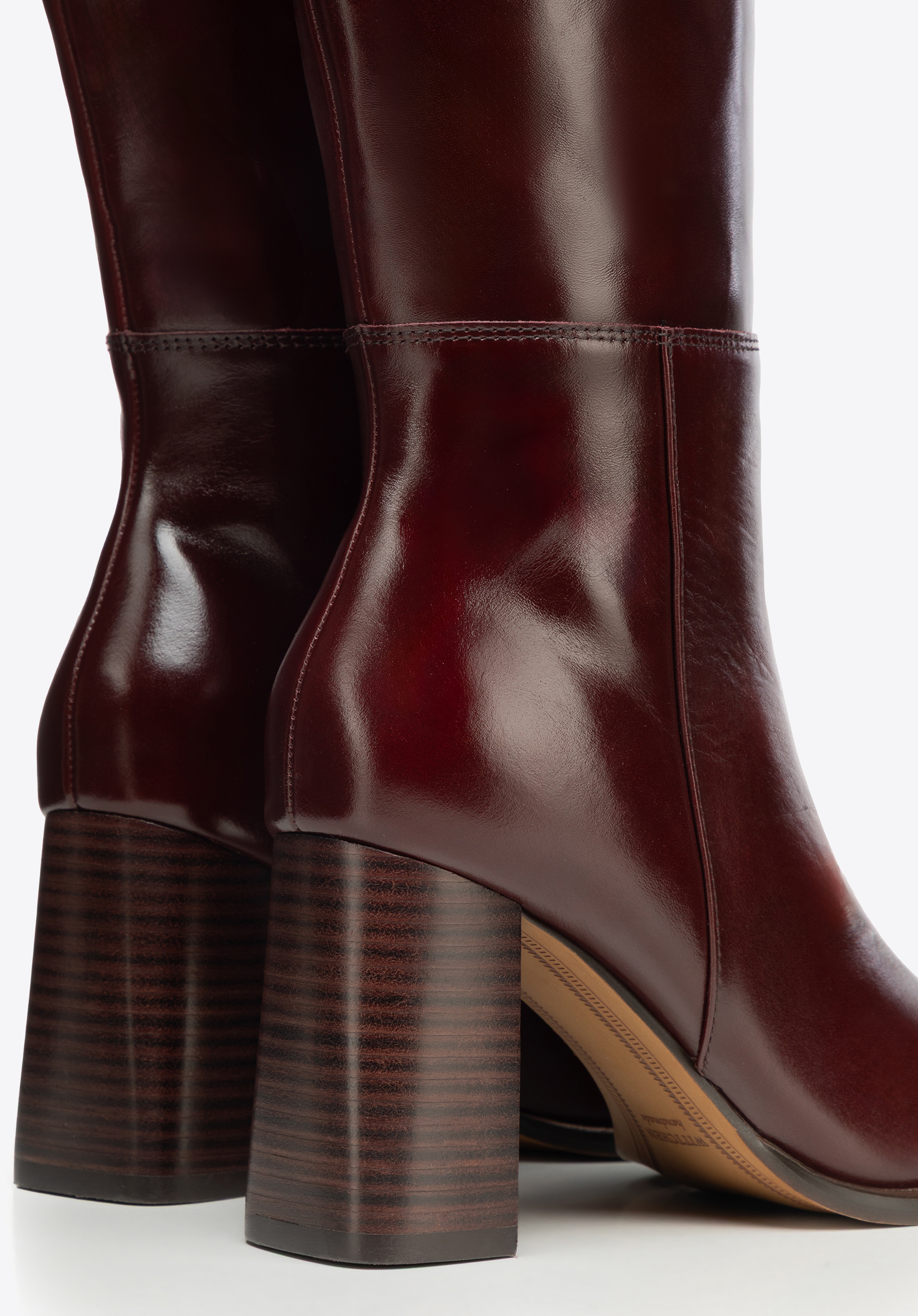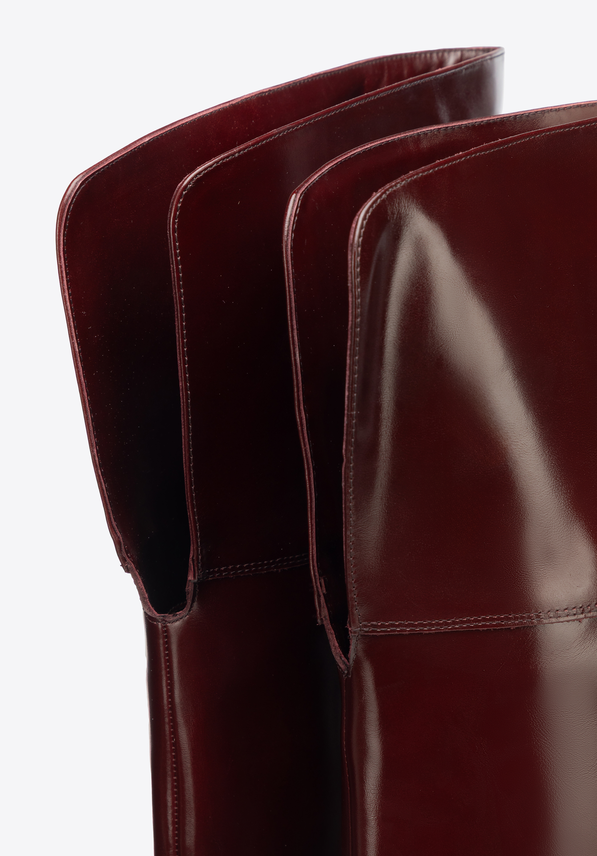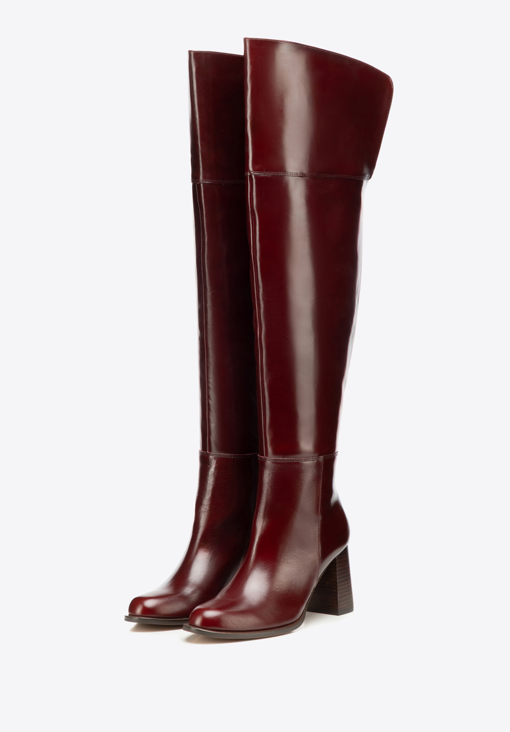 Tyto vysoké kozačky nad kolena představují kombinaci elegance, pohodlí a moderního stylu. Jsou vyrobeny z přírodní hovězí kůže s olejovaným , jemně lesklým povrchem, vyzařují luxusní charakter a zároveň zůstávají vysoce odolné pro každodenní nošení. Robustní podpatek zajišťuje celodenní pohodlí, zatímco mandlová špička opticky prodlužuje nohu a dodává jí elegantní nádech. Boční zip umožňuje snadné zapínání a detail překlápění přes síň je módním detailem, který vám umožní vytvořit si různé stylové outfity.