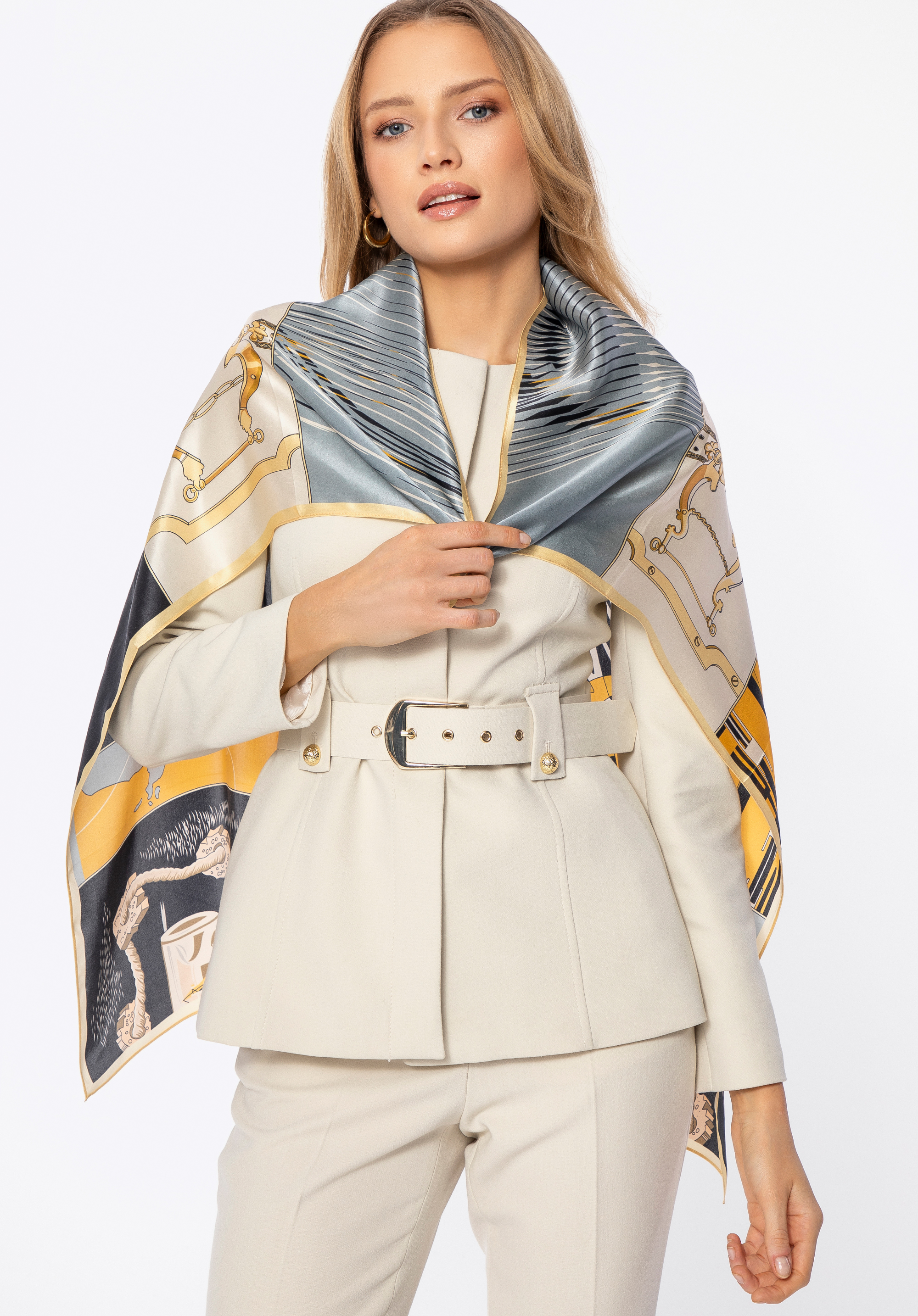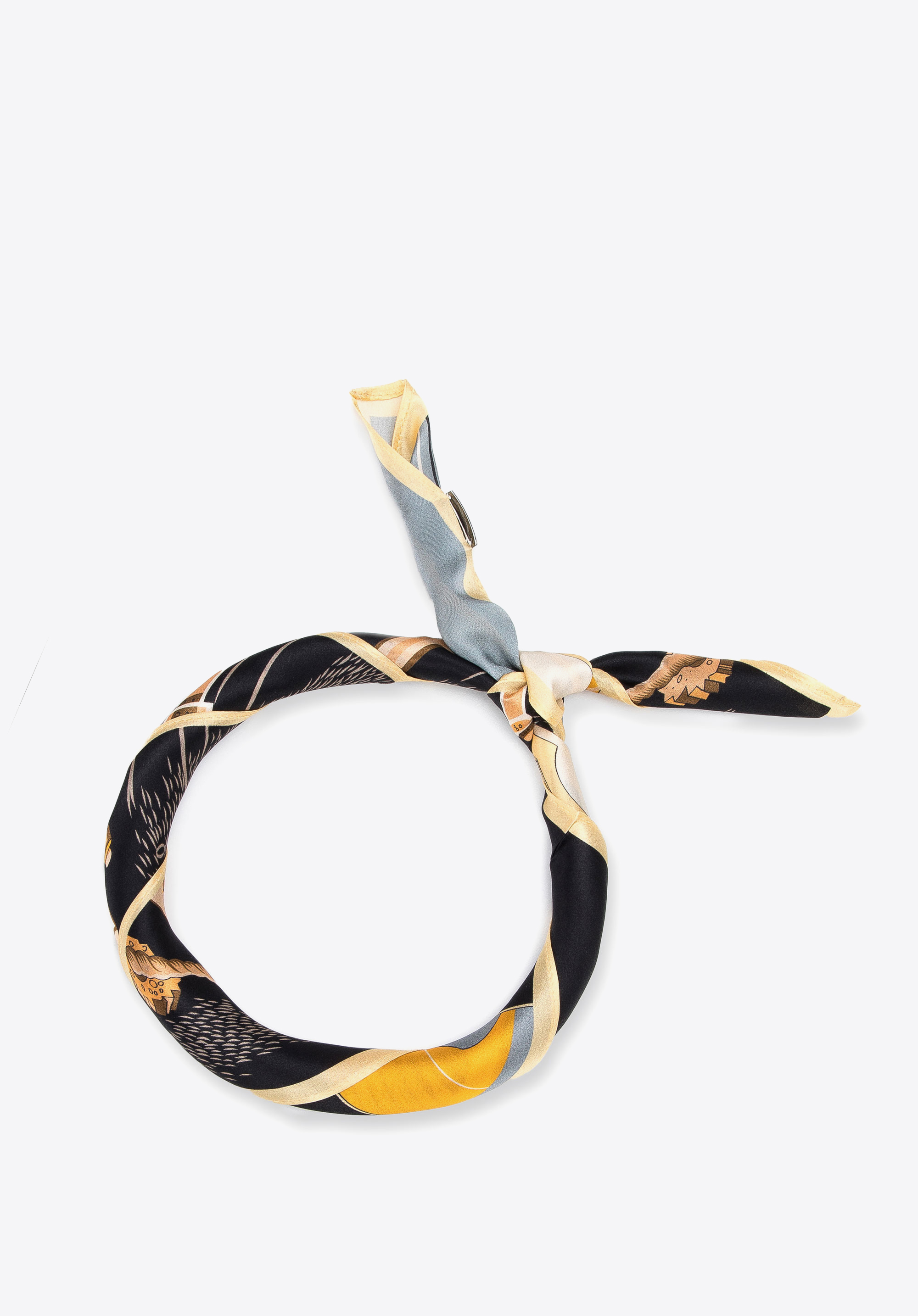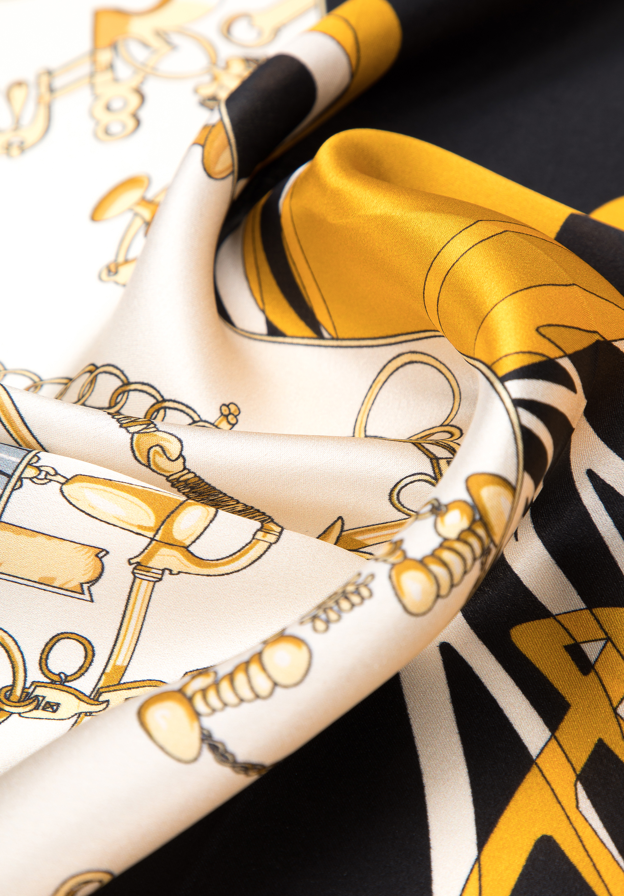 Přidejte tento hedvábný šátek do své sbírky a užijte si nadčasový doplněk, který do každého stylu vnese nádech luxusu. Je to také skvělý nápad na elegantní dárek!