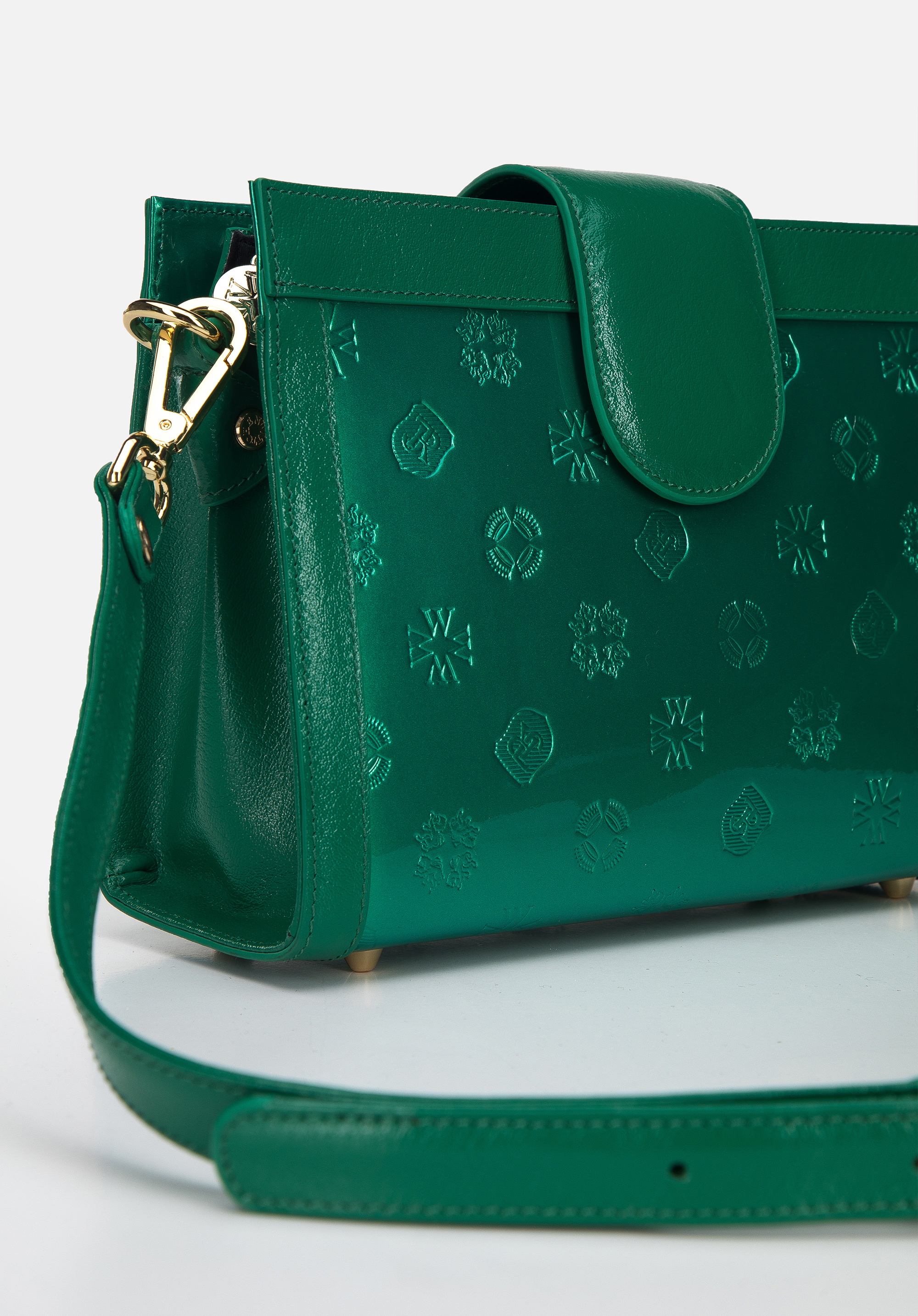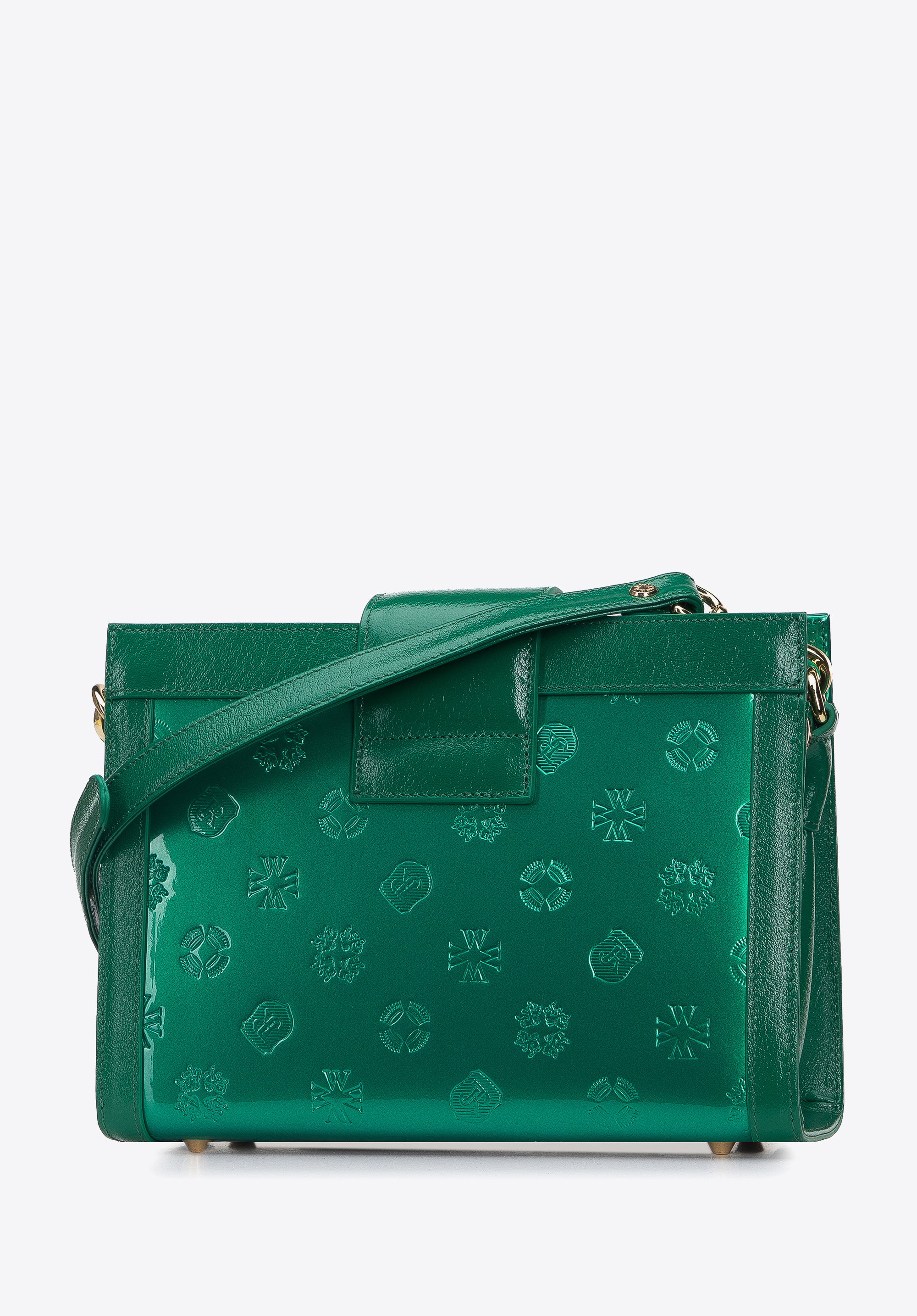 Tato originální dámská kabelka ozdobí každý oblek. Byl vyroben ze dvou druhů kůže: monogram lakovaný na přední a zadní straně a lesklý na bocích a okrajích. Díky dvěma komorám v ní snadno udržíte pořádek a sbalíte si vše potřebné: peněženku, telefon, malý kalendář, pár kosmetiky a drobnosti. Tento model má pevný střih a bude vypadat perfektně v každé situaci. Můžete ji nosit pro každodenní stylizace a dodat jim eleganci nebo stylově podtrhnout dámský oblek či šaty. Dvoukomorová dámská kabelka z metalické lakované kůže je skvělou volbou pro milovnice módních doplňků.