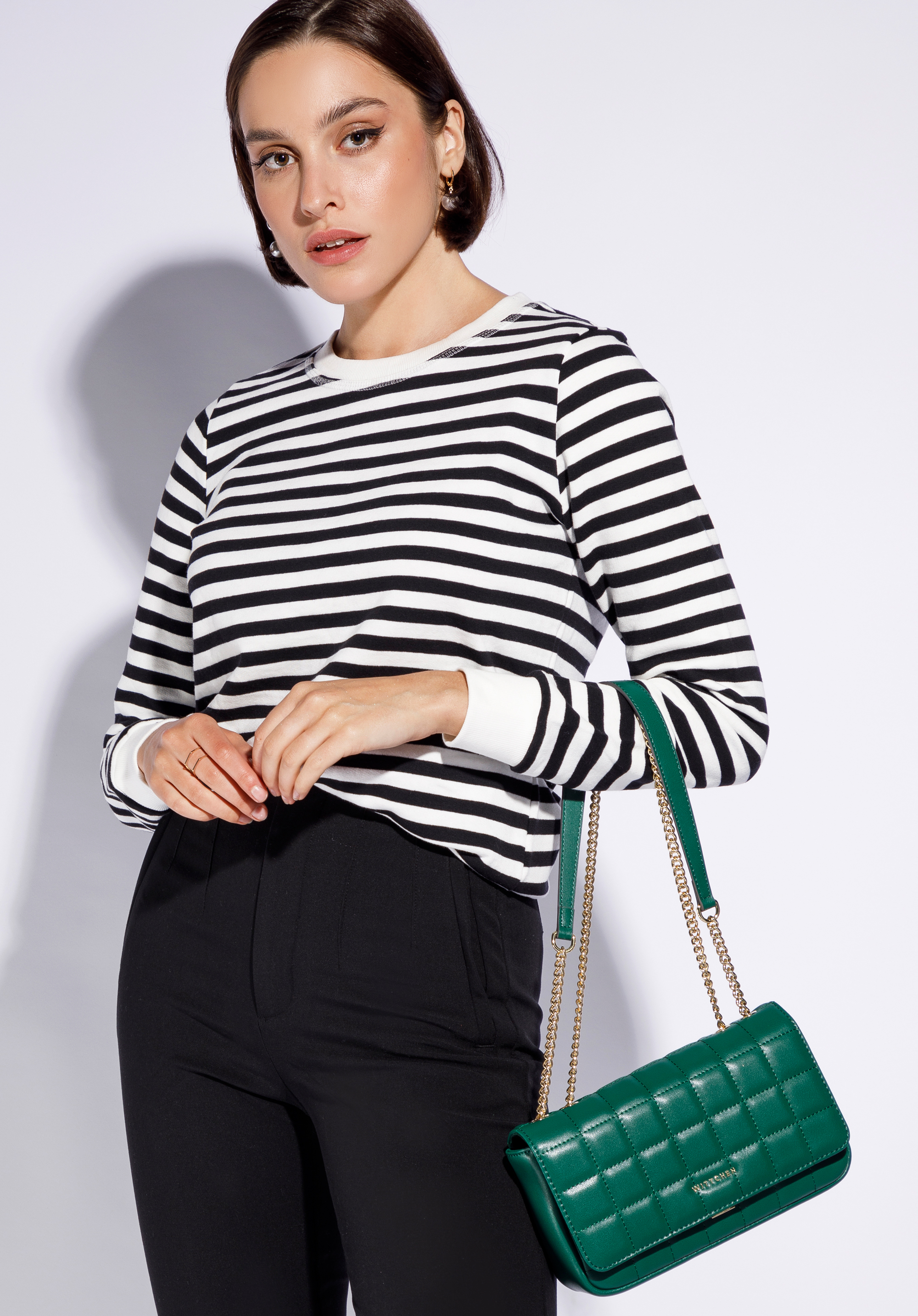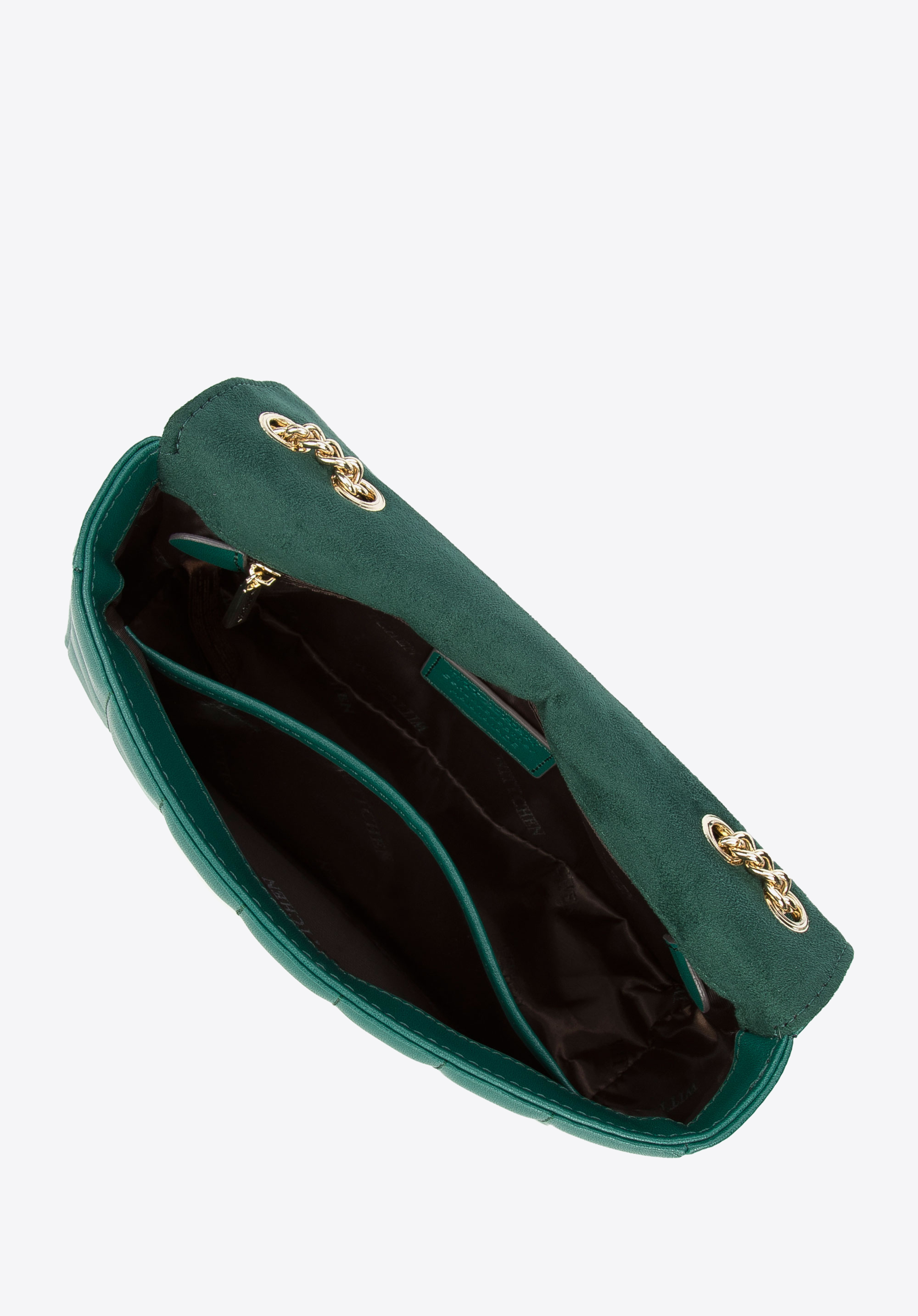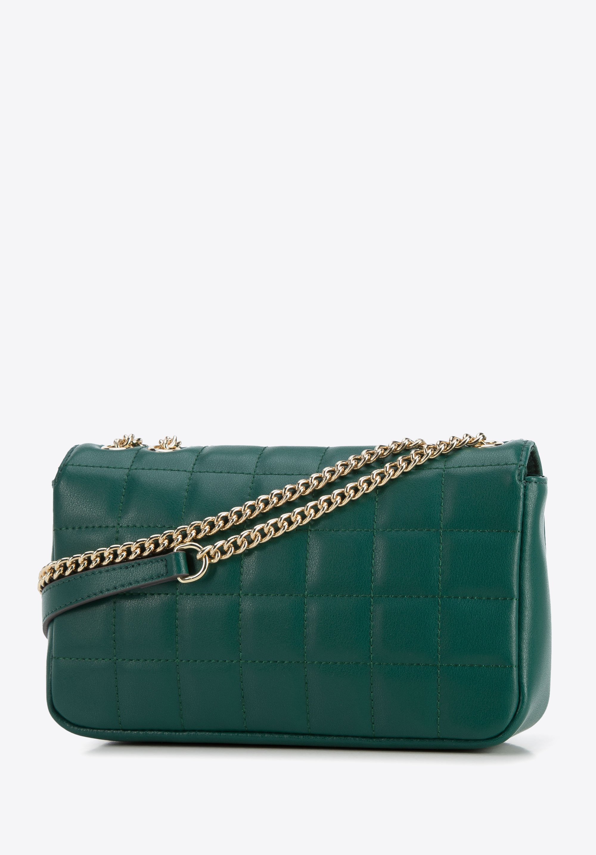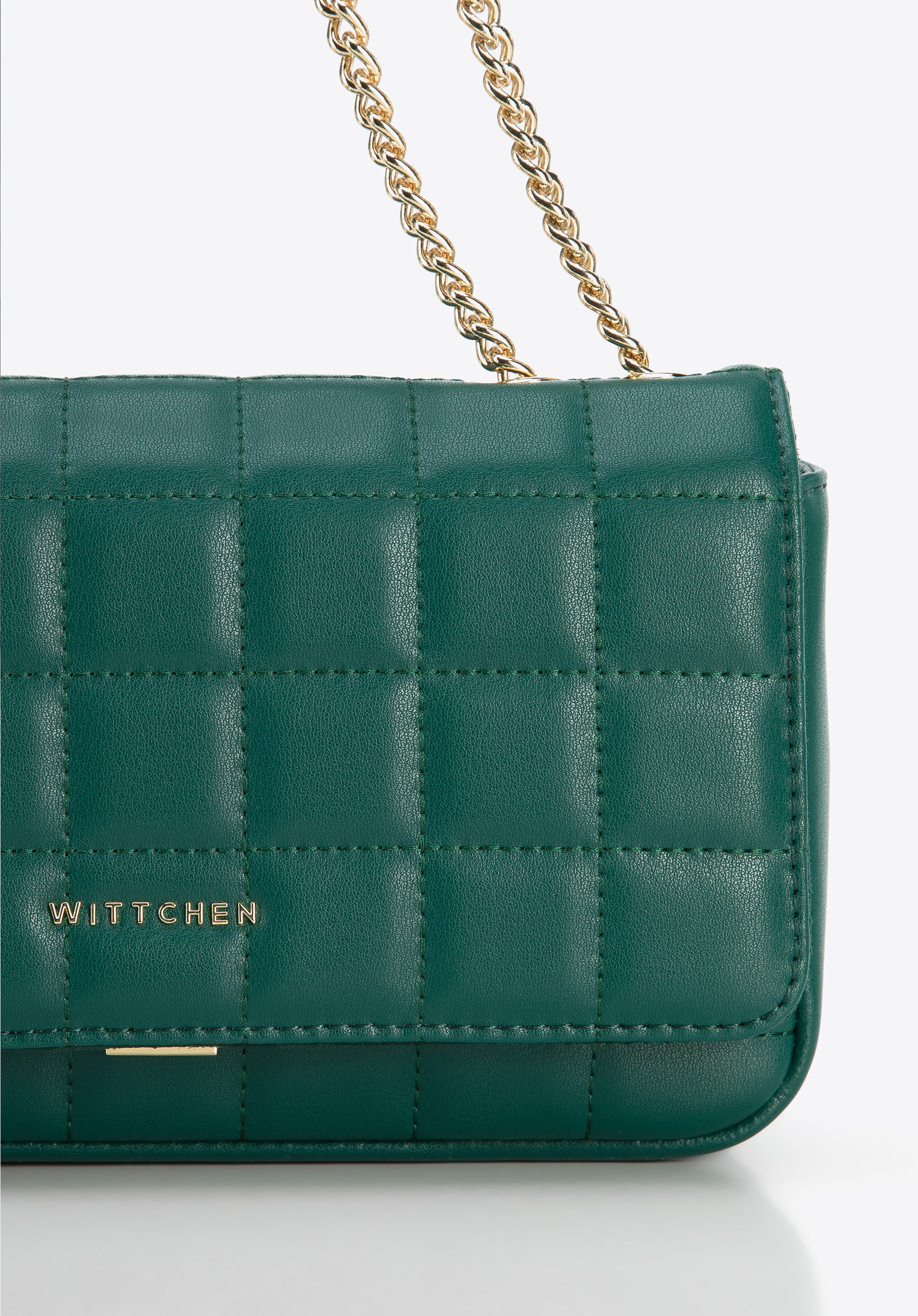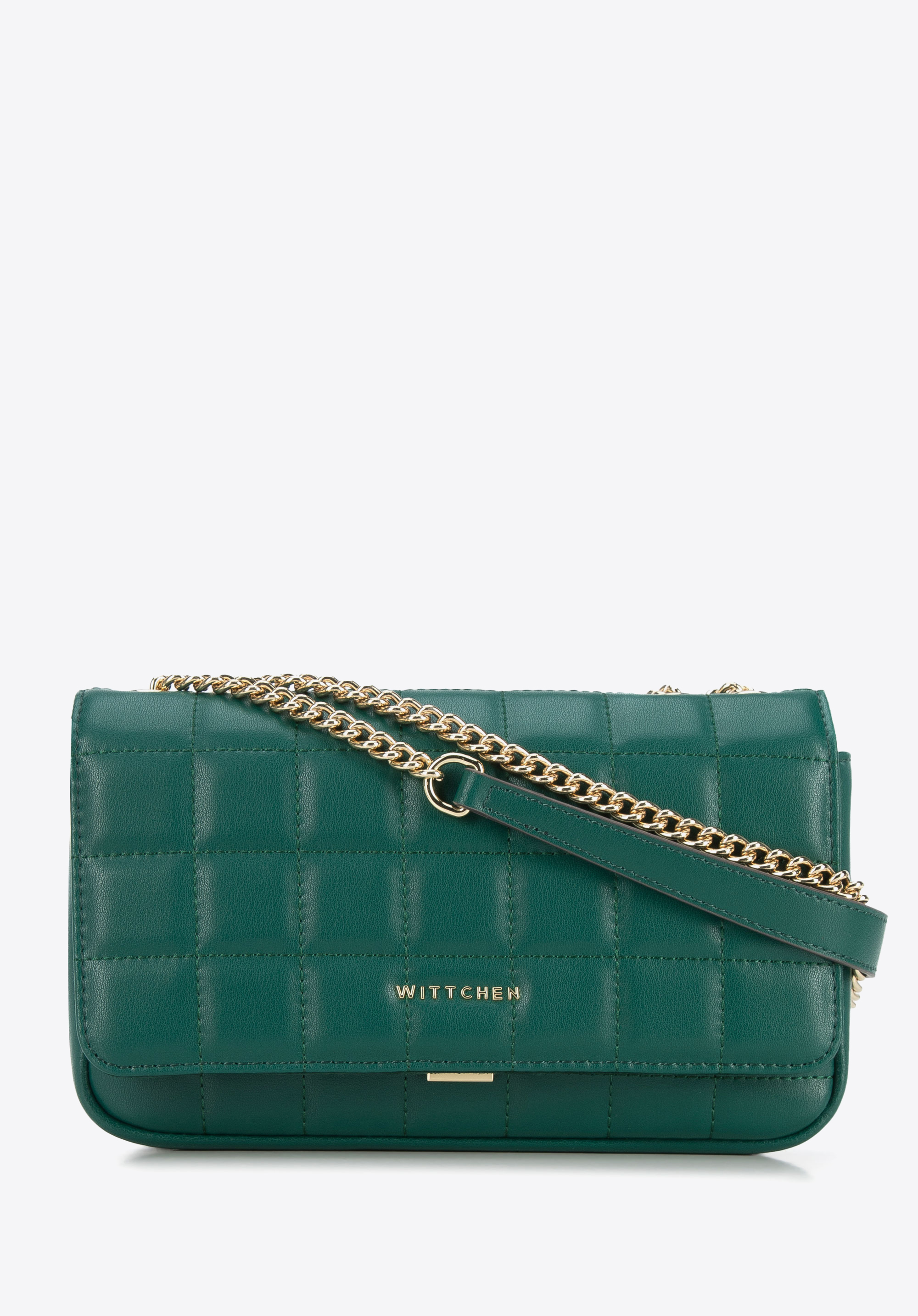 Tato stylová kabelka je módním doplňkem každé ženy. Je vyrobena z kvalitní přírodní kůže aprošívaná do čtverců. Zdobí ji nové logo WITTCHEN tvořené pouze písmeny. Řetízek je poměrně dlouhý a nastavitelný: můžete ho přeložit napůl a kabelku pověsit přes rameno. Dovnitř vejde peněženka, telefon, náhradní rukavice, malý kalendář a pár drobností. Kabelka skvěle doplní elegantní obleky. Tato dámská prošívaná kožená kabelka dodá eleganci každému obleku.