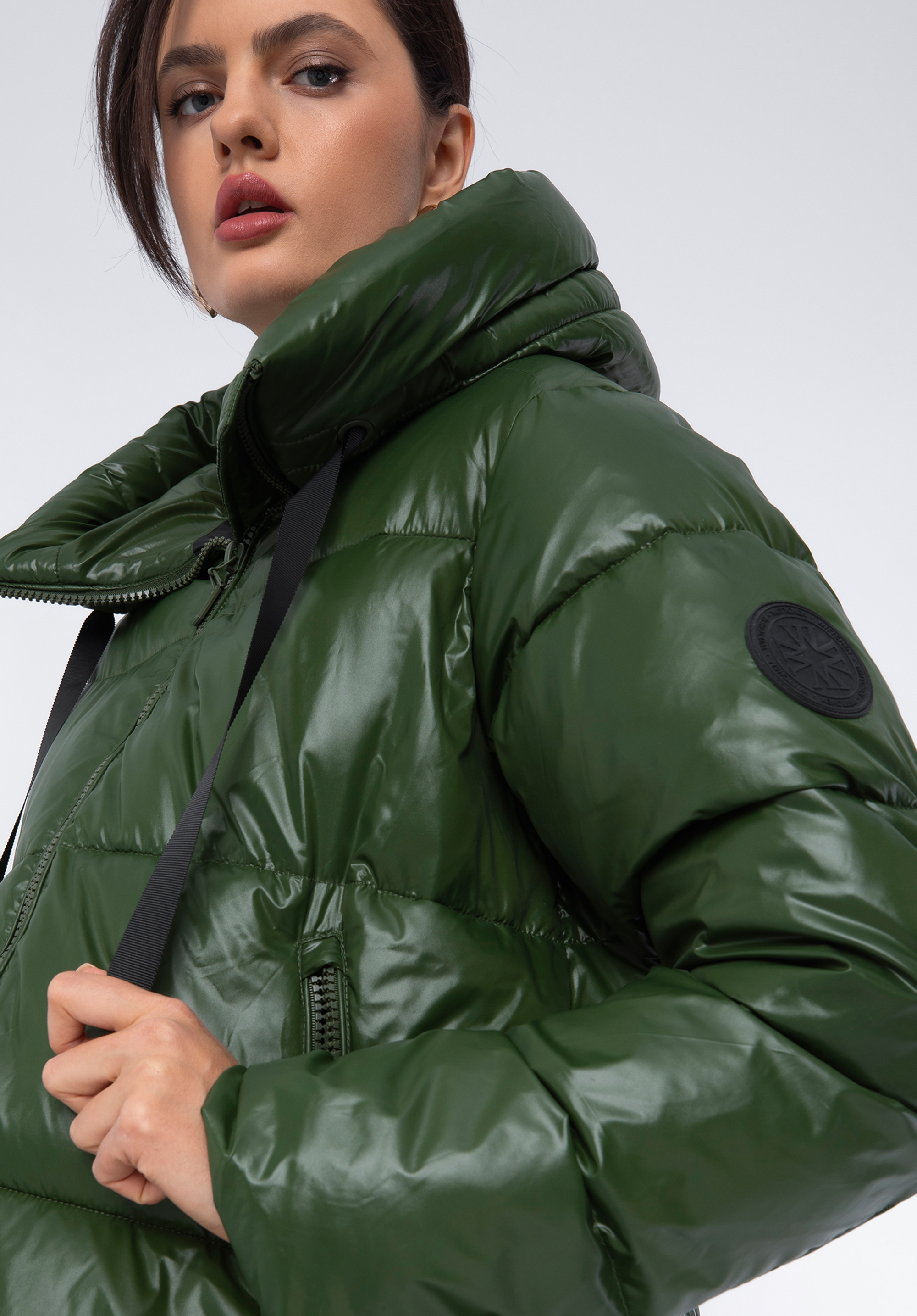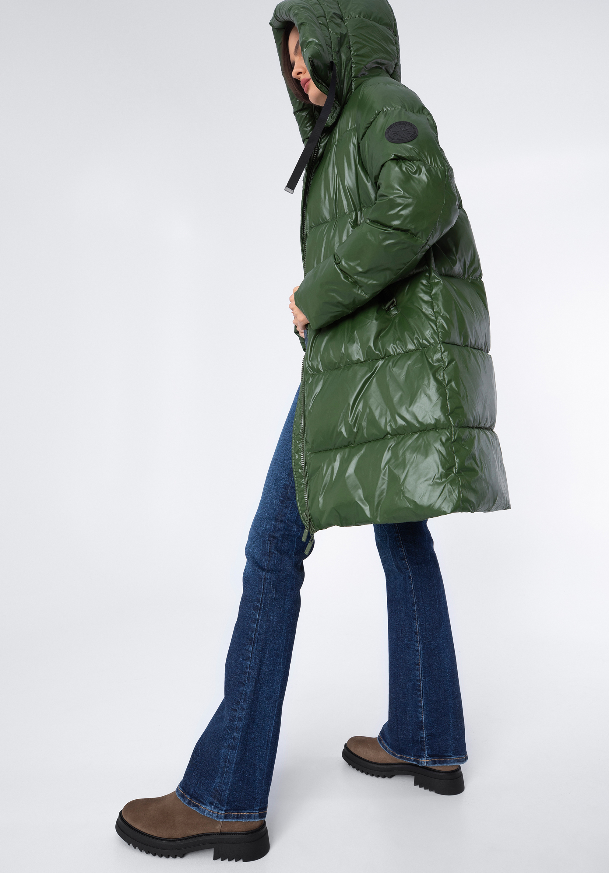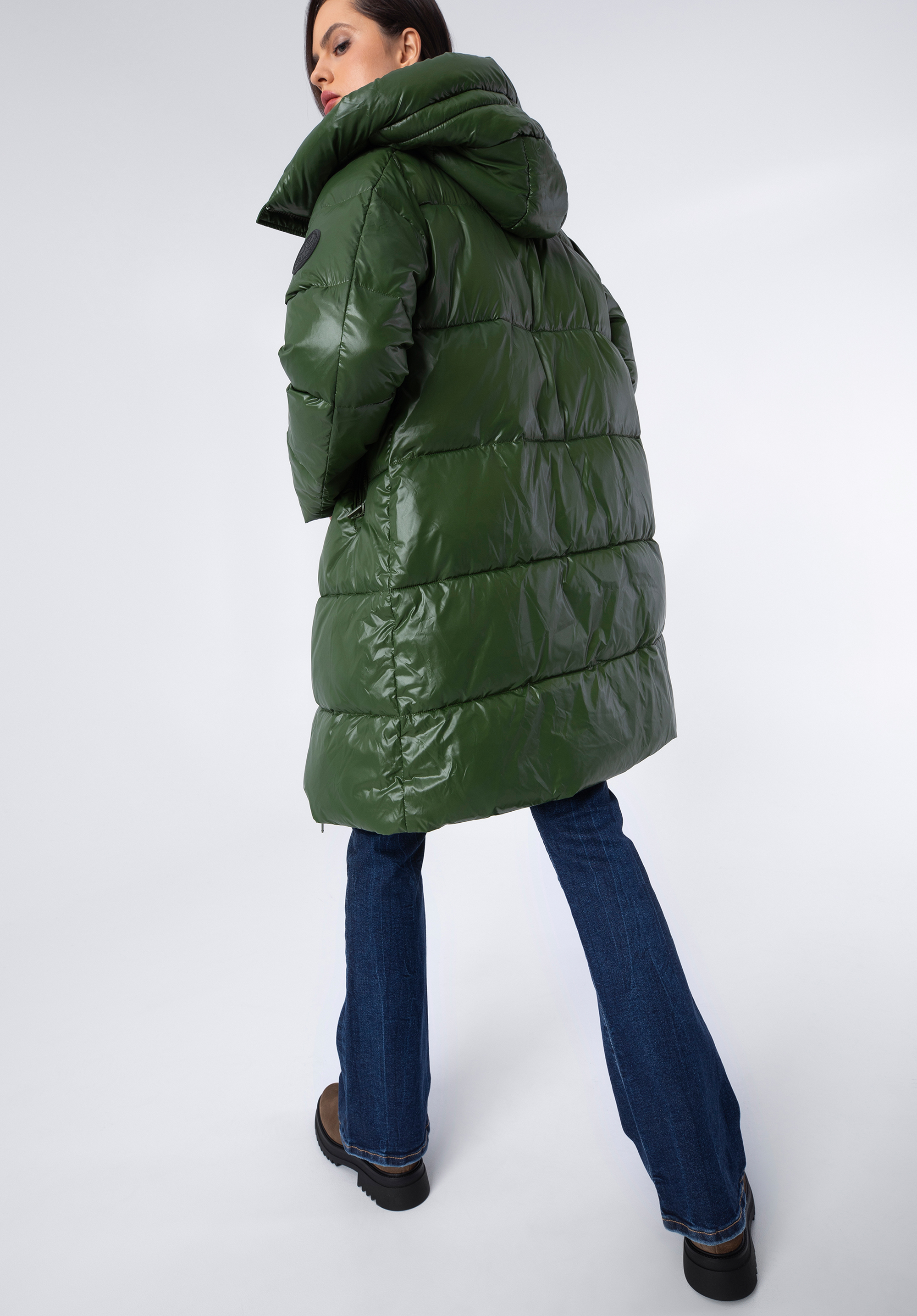 Tato dlouhá, prošívaná bunda je nutností pro chladnější měsíce. Má módní střih a zapíná se na dvojité zipy. Pohodlná velká kapuce se stahovacími šňůrkami ochrání vaši hlavu před chladem. Tento model je vyroben z lehce lesklého materiálu, který dodává celku jedinečný charakter. Noste ji se svými oblíbenými kozačkami – budete vypadat stylově za každé situace. Tato dámská prošívaná bunda je stylovým doplňkem, který stojí za to mít ve svém šatníku.
